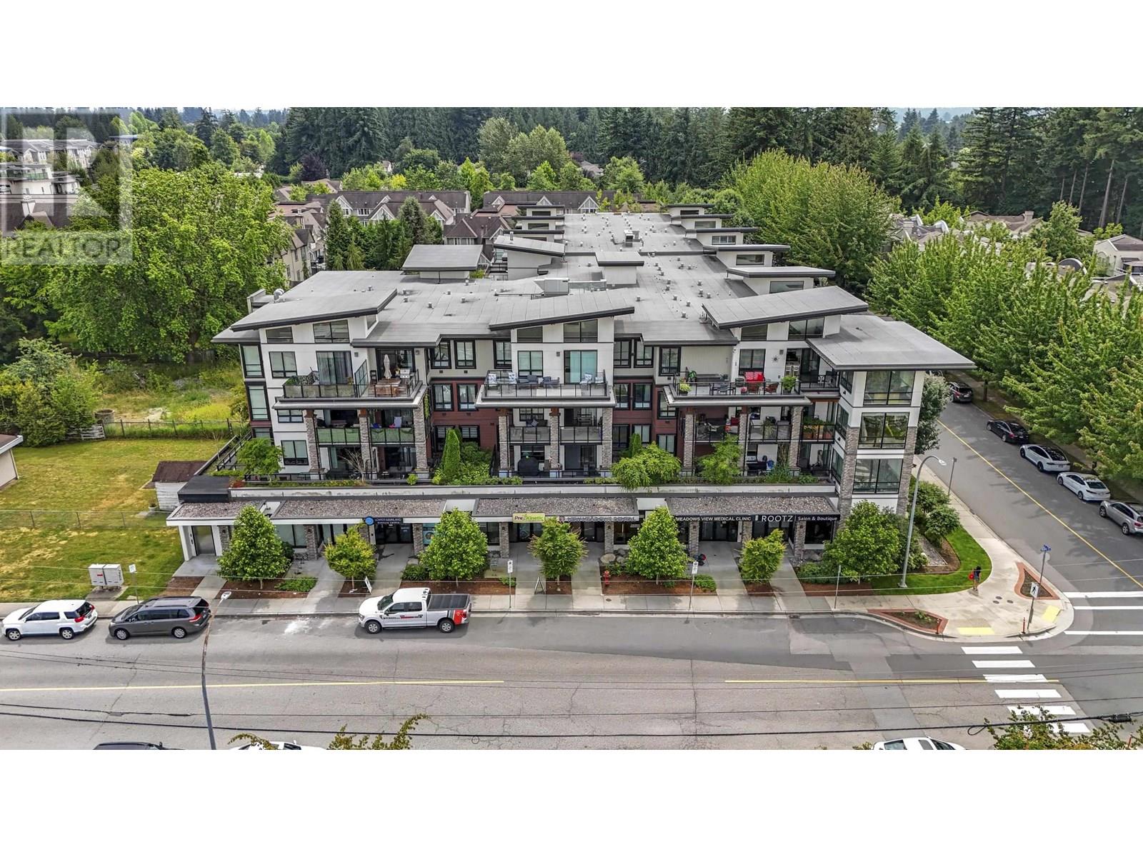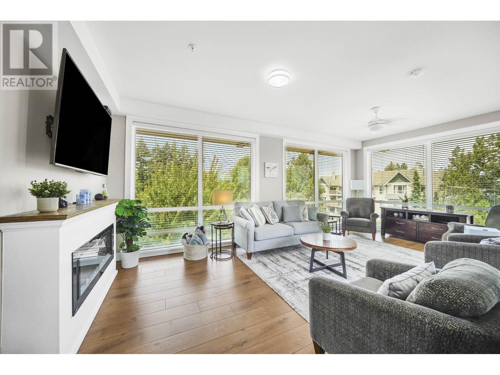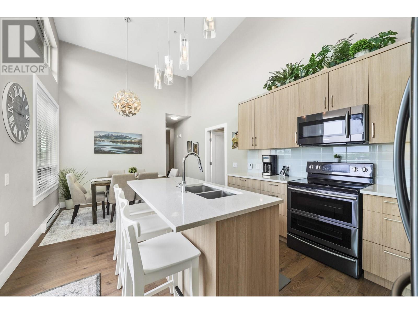 Impressive 1,200sqft 3 bed 2 bath private corner unit penthouse, a gem in the heart of Pitt Meadows! Bright, open-concept layout w soaring ceilings & oversized windows that frame mountain views. Thoughtful upgrades including Samsung stove w double oven, Bosch DW, quartz counters, designer lighting, ceiling fans & contemporary blinds. Seamless indoor-outdoor living continues as the kitchen opens to over 300sqft deck, additional space for entertaining & relaxing.The spacious living area w fireplace, offers an ideal spot to host guests or relax in privacy. 3 bedrooms, including a private primary bdrm with ensuite and WIC. Includes 2 park spots & bike room. Wchair access and pets are welcome! Walking distance to schools, shops, parks, the WCExpress, golf, rec and senior centre! OH SAT/SUN 2-4 (id:48970) Show More