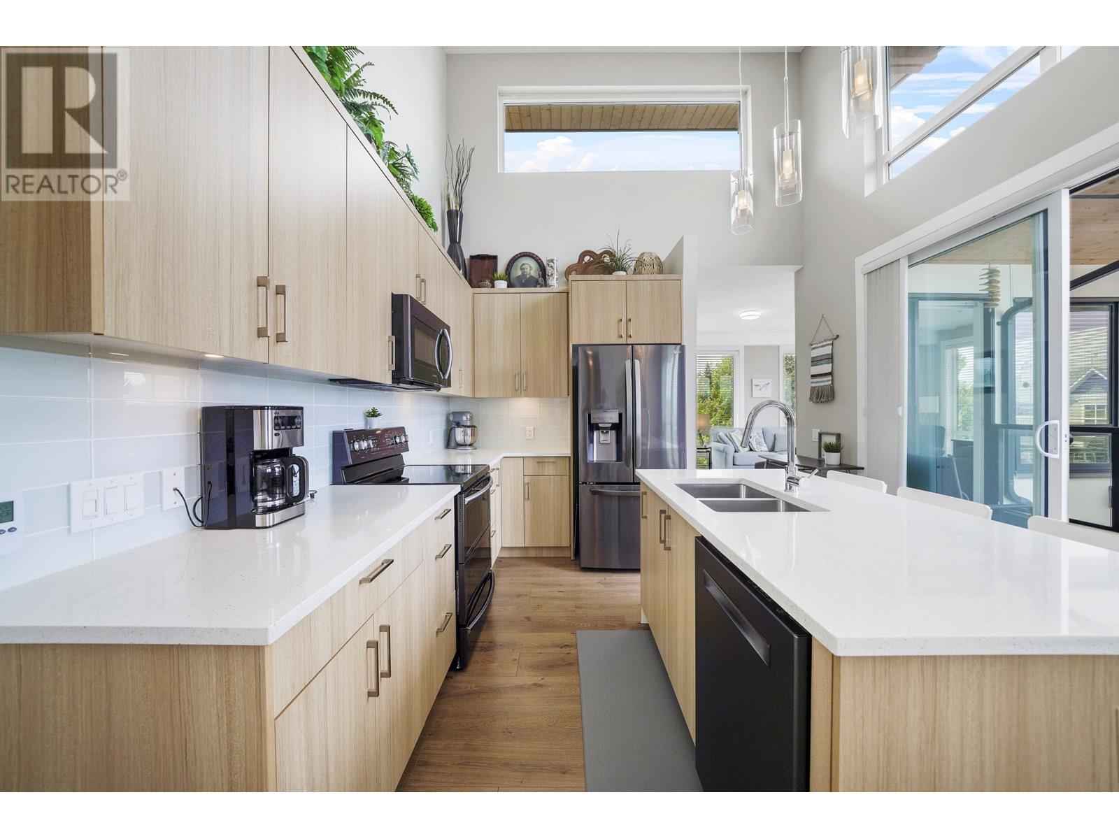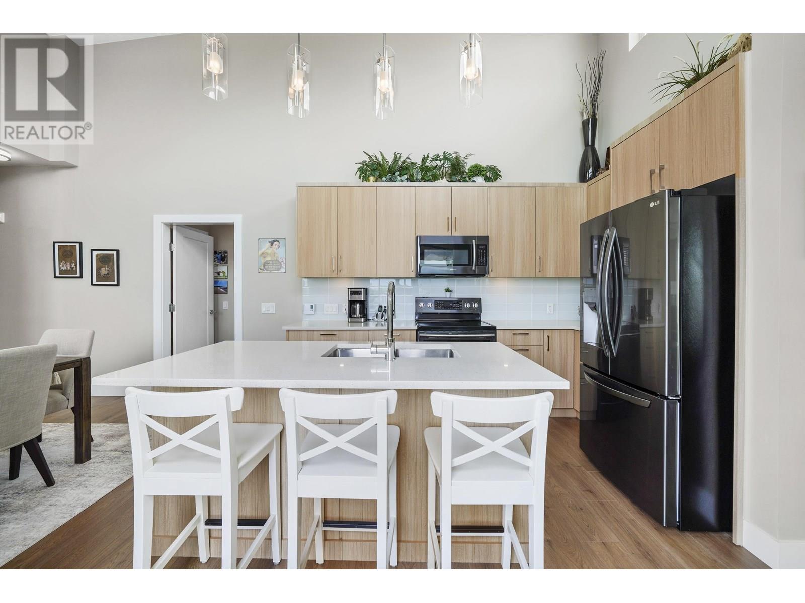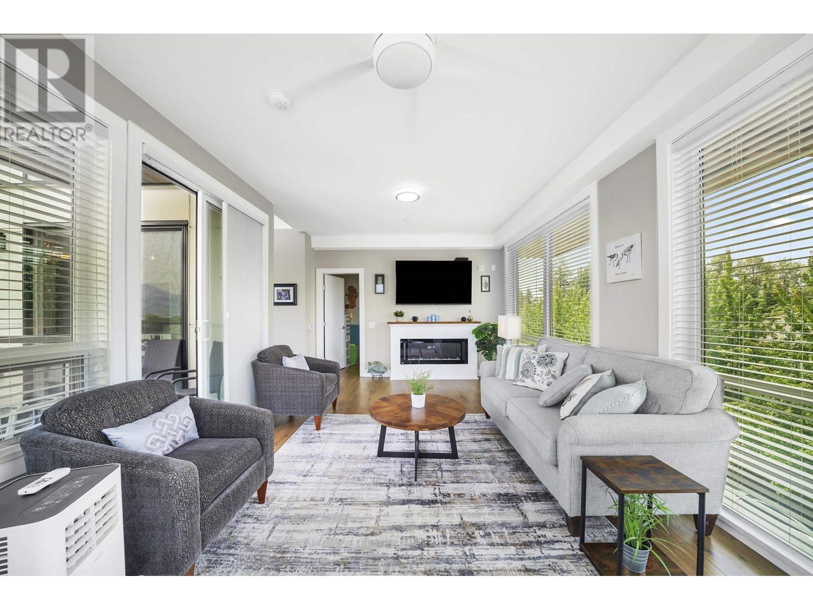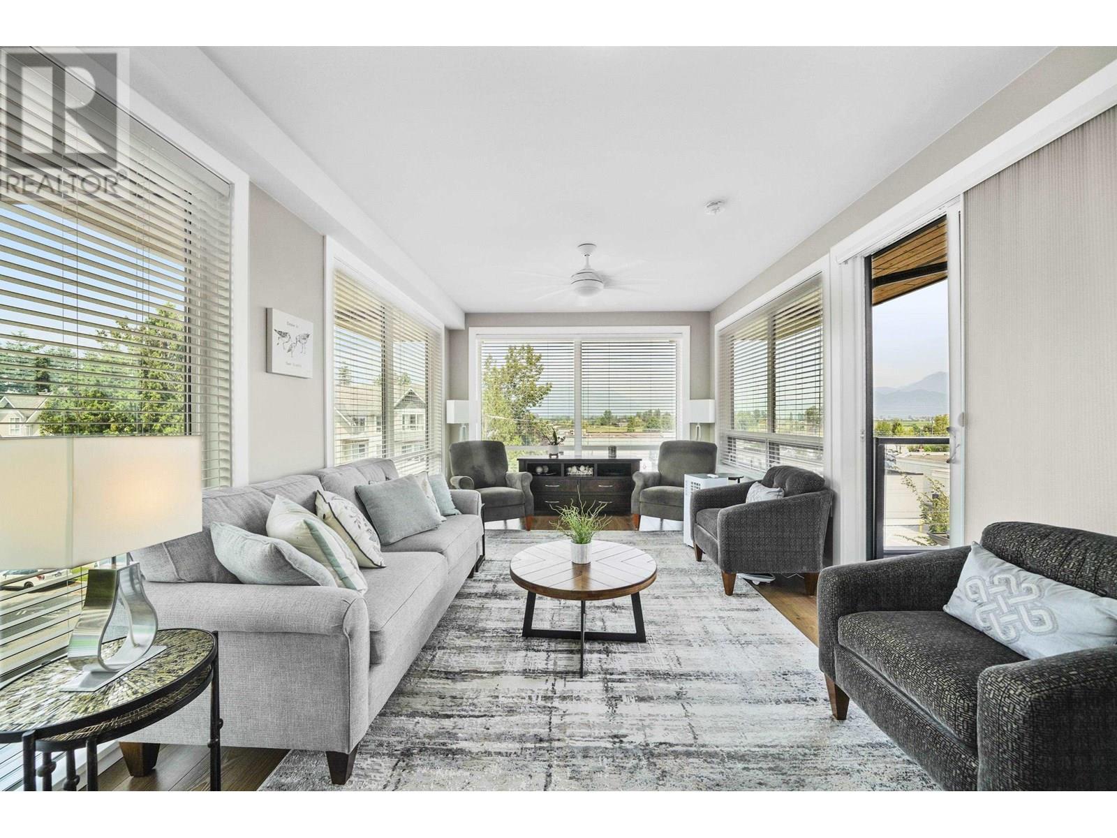 Impressive 1,200sqft 3 bed 2 bath private corner unit penthouse, a gem in the heart of Pitt Meadows! Bright, open-concept layout w soaring ceilings & oversized windows that frame mountain views. Thoughtful upgrades including Samsung stove w double oven, Bosch DW, quartz counters, designer lighting, ceiling fans & contemporary blinds. Seamless indoor-outdoor living continues as the kitchen opens to over 300sqft deck, additional space for entertaining & relaxing.The spacious living area w fireplace, offers an ideal spot to host guests or relax in privacy. 3 bedrooms, including a private primary bdrm with ensuite and WIC. Includes 2 park spots & bike room. Wchair access and pets are welcome! Walking distance to schools, shops, parks, the WCExpress, golf, rec and senior centre! OH SAT/SUN 2-4 (id:48970) Show More