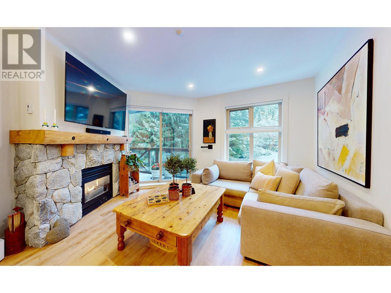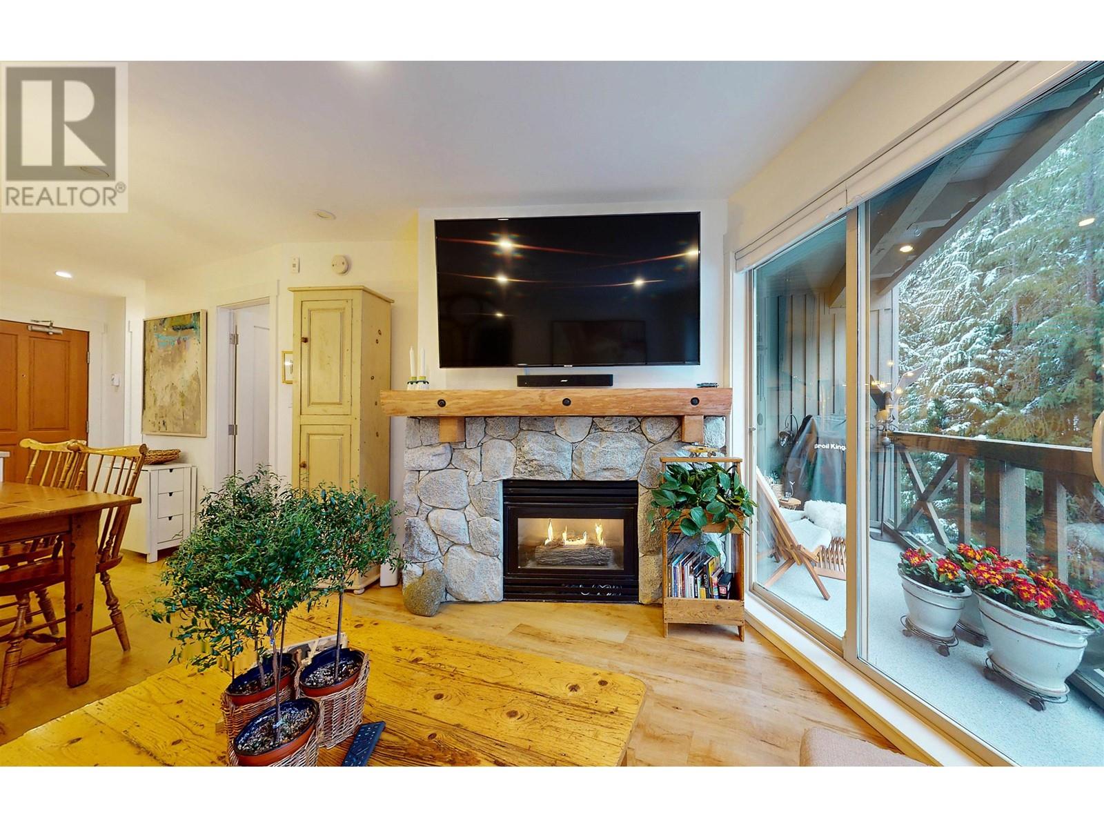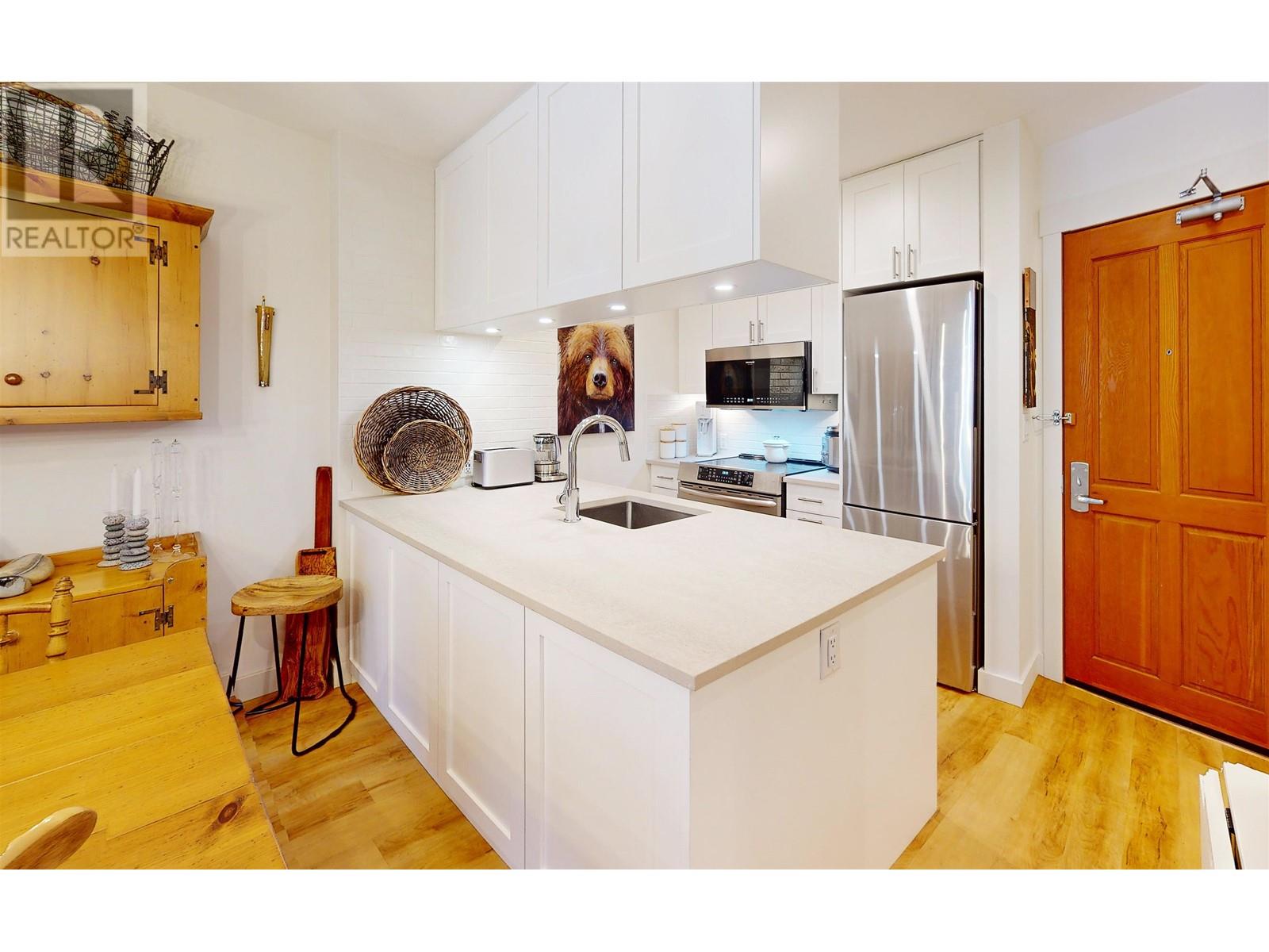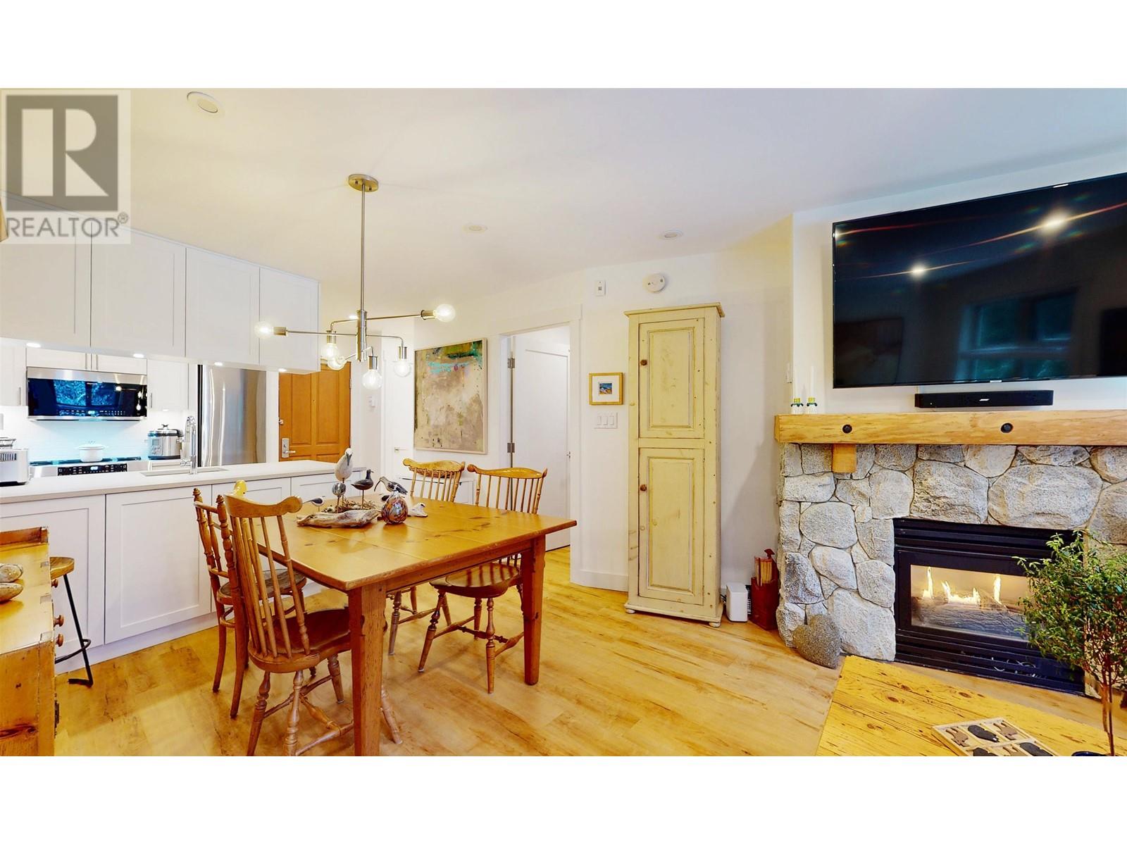 Welcome to this charming 1-bedroom condo in Lost Lake Lodge! Thoughtfully renovated, this cozy home offers an inviting atmosphere with high-end finishes. Wood flooring in living areas and bedroom, complemented by underfloor heated tiles in the bathroom. The kitchen boasts high end appliances, including Miele dishwasher, Frigidaire induction stove, convection oven, microwave and Miele washer and dryer. The bedroom has custom-built California Closets, maximizing space and organization. The bright living area features a gas fireplace and access to a private patio. Lost Lake Lodge has fantastic amenities, including a front desk, outdoor pool, hot tub, fitness room, ski lockers, secure underground parking and easy access to skiing, biking, and Lost Lake trails. (id:48970) Show More