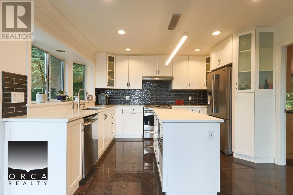 Experience luxury West Coast living in this breathtaking contemporary home perfectly situated next to a lush greenbelt, with forested hiking and biking trails right outside your door. This spacious 5-bedroom, 4-bath home offers panoramic ocean and city views, soaring vaulted ceilings, and an open-concept layout designed for seamless entertaining. The gourmet kitchen features high-end appliances, sleek finishes, and plenty of space for family gatherings. Step out onto expansive decks and enjoy the beautifully landscaped yard, perfect for relaxing or hosting guests. The luxurious primary suite includes a spa-inspired ensuite and a private balcony to soak in the views. (id:48970) Show More
