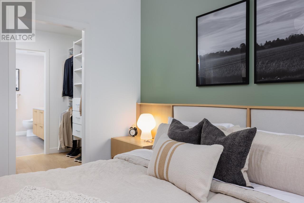 Welcome home to Bridge and Elliott, a 6-story building in the heart of Ladner Village. Our 131 homes make up a U shape that is oriented to maximize livability and includes over 10,000SF of amenities on Level 3. This two bedroom plan is furnished with a Scandinavian-influenced interior design, Premium appliances including a gas range, integrated refrigerator and dishwasher, full sized washer/dryer, and a large kitchen island with room for dining, meal prep and entertaining. 9' ceilings in most living areas, true air conditioning and high-performance flooring. The bathroom features a mirror medicine cabinet for convenient storage and large format marble inspired wall tiles. Visit our Sales Gallery at 5255 Ladner Trunk Rd open Sat/Sun 1-4PM or by appointment. (id:48970) Show More