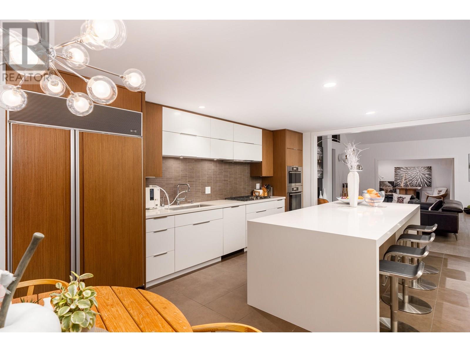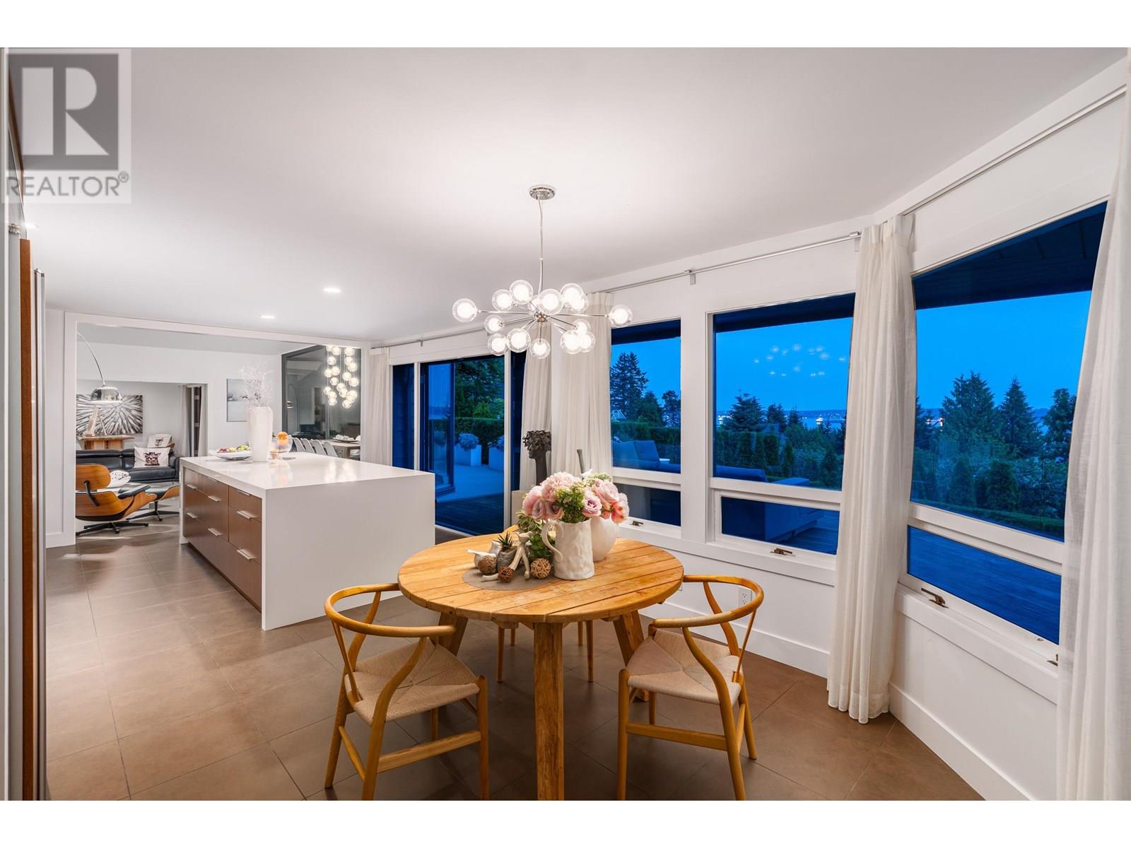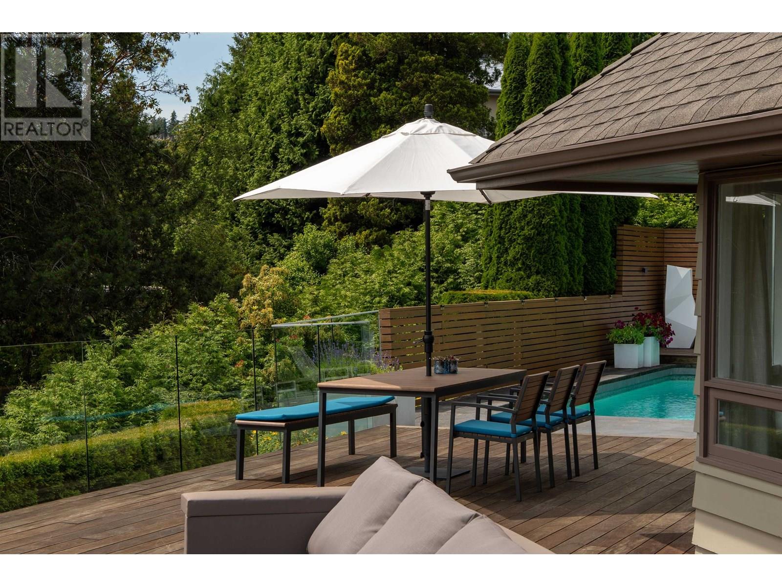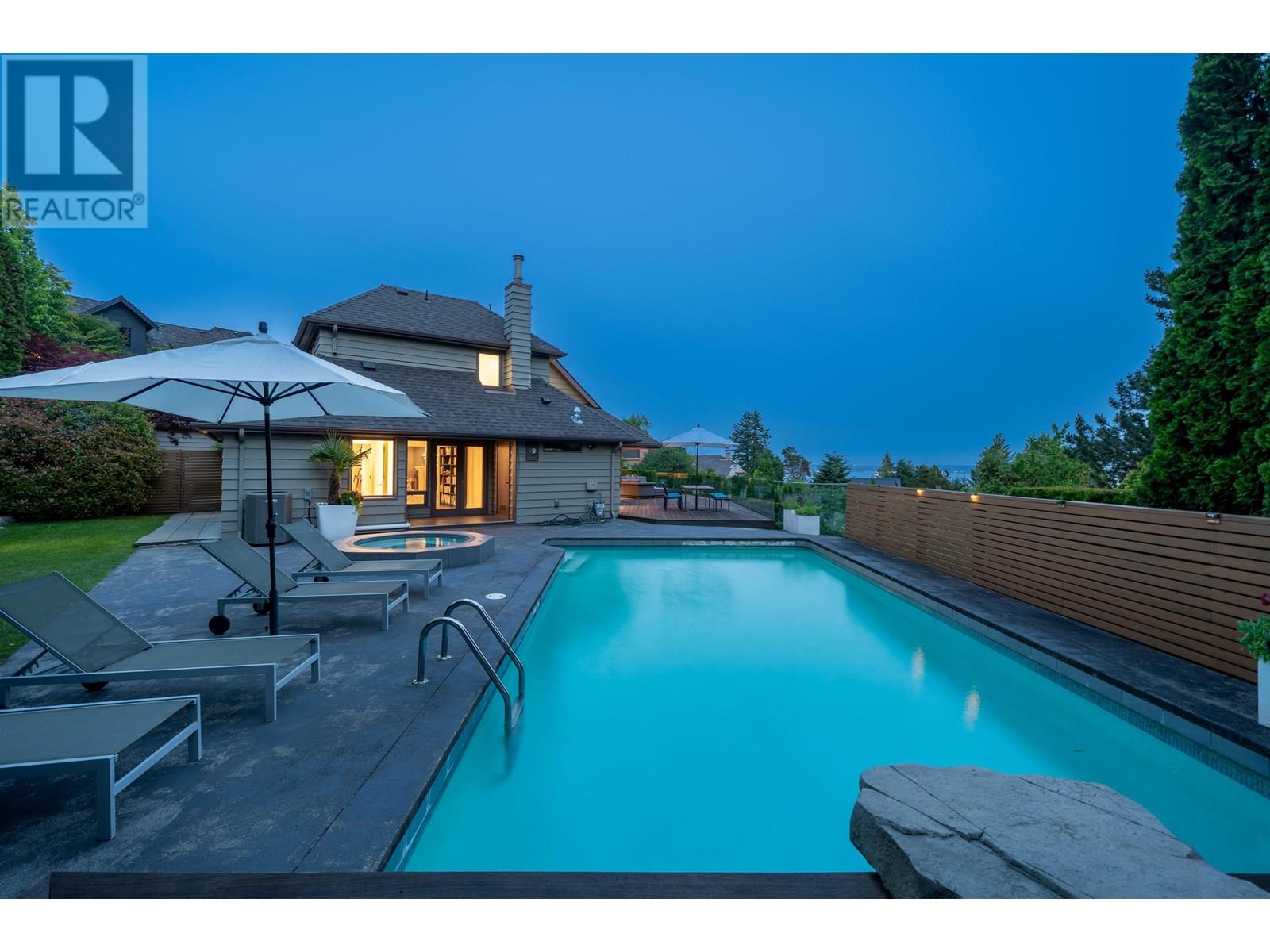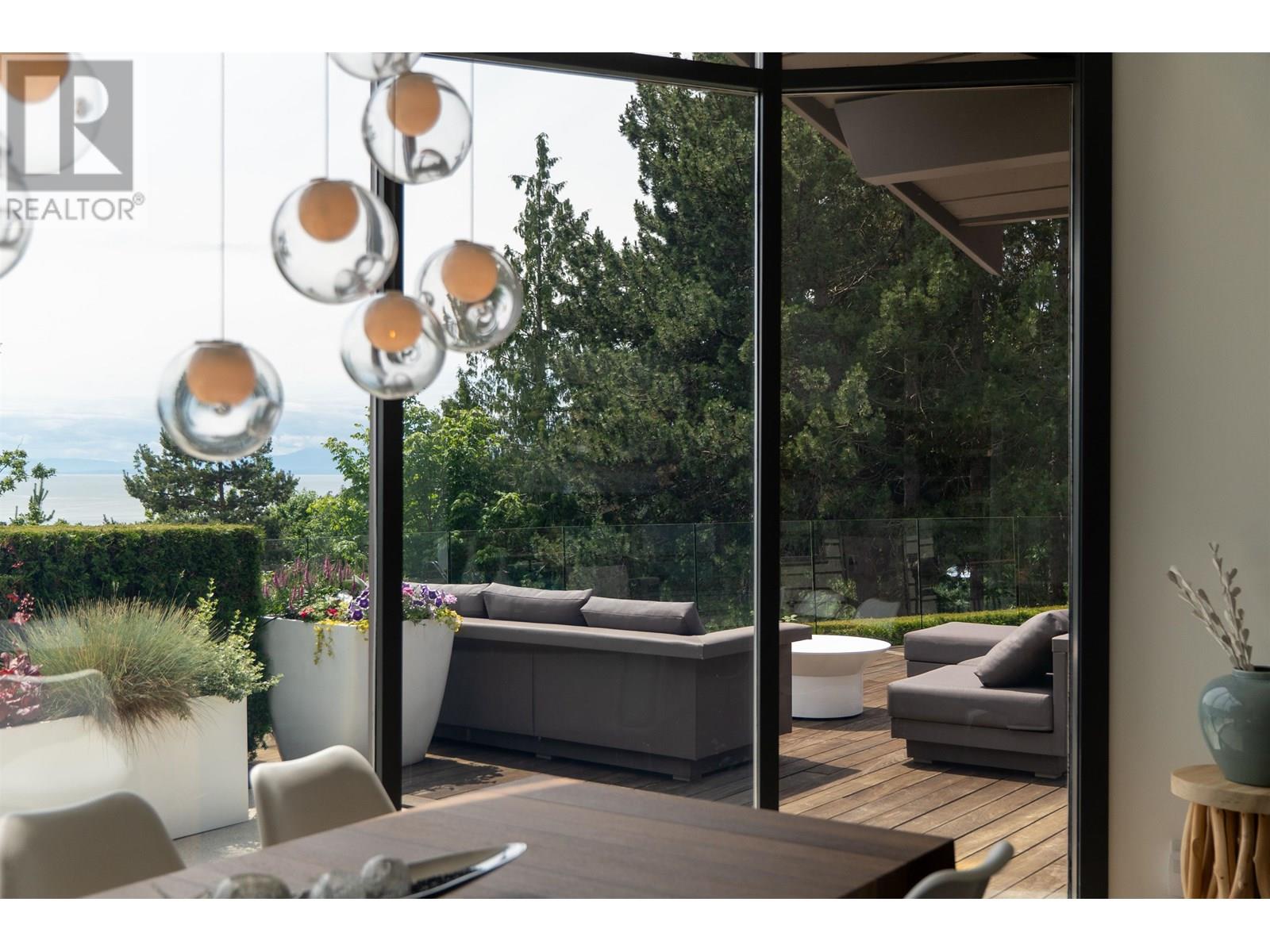 This stunning home offers breathtaking panoramic views and has been beautifully updated with a modern aesthetic. Stylish renovations to the bathrooms, kitchen, hardwood and tile flooring, and interior colors have transformed it into a true showpiece. With 5 bedrooms-one conveniently located on the main level with a full ensuite-and 4.5 luxurious bathrooms, the layout is both functional and elegant. The custom-designed kitchen boasts top-of-the-line appliances and a spacious central island, perfect for entertaining. The main living area features soaring cathedral ceilings and floor-to-ceiling windows that showcase the incredible view, along with a striking Bocci light fixture by Omer Arbel in the dining area. Expansive southwest-facing patios, decks, and a sunlit outdoor pool complete this exceptional home. (id:48970) Show More