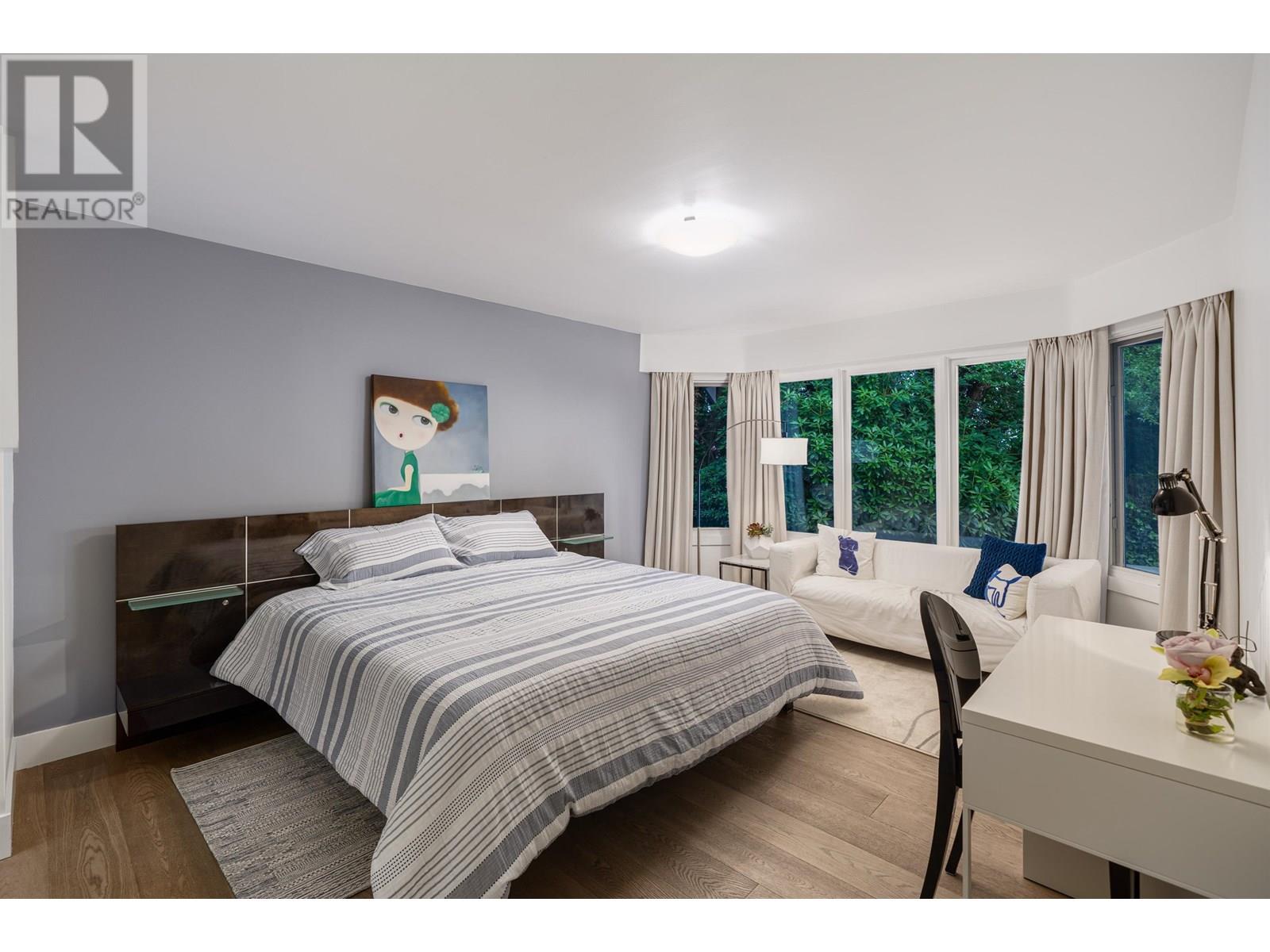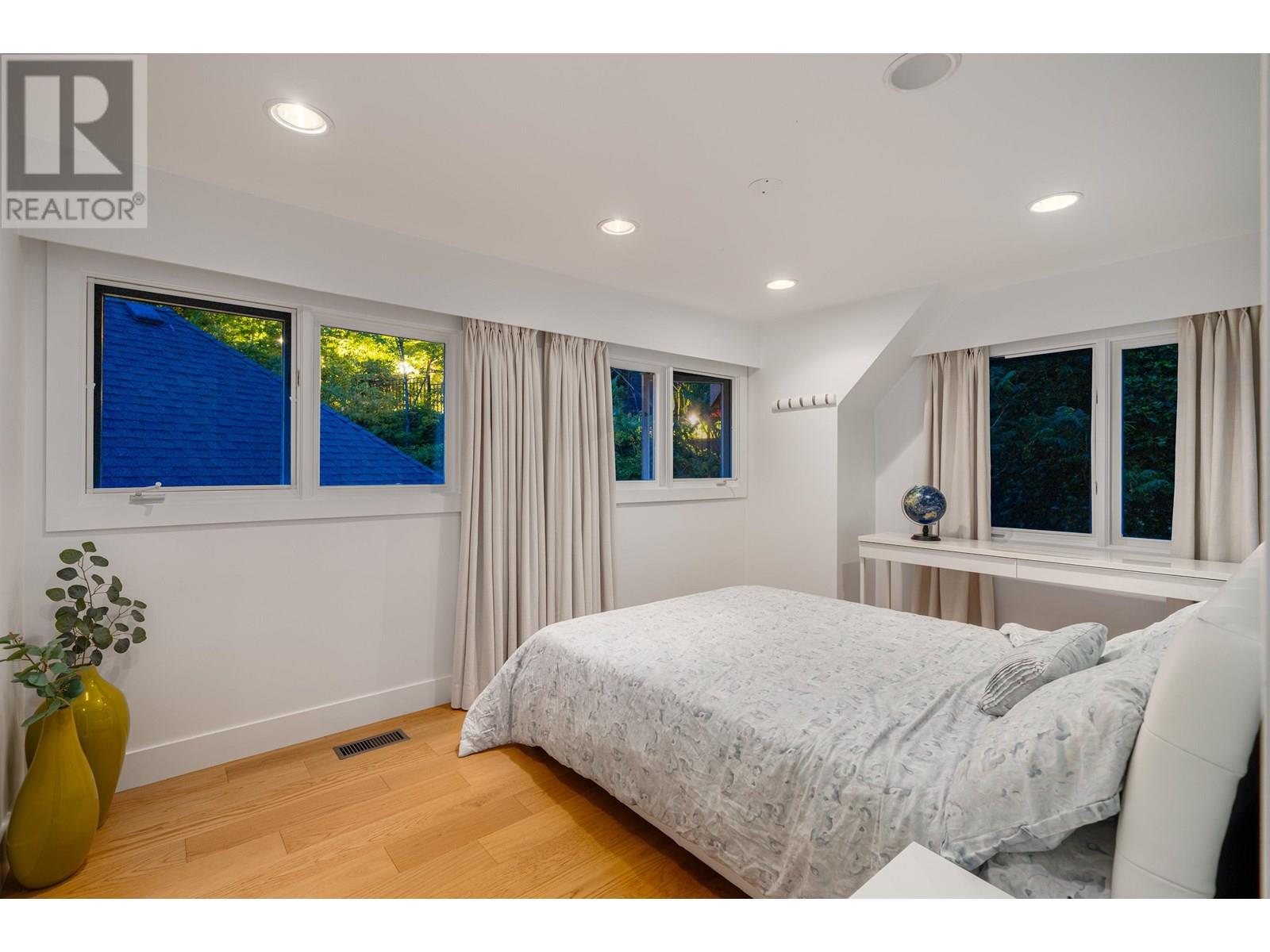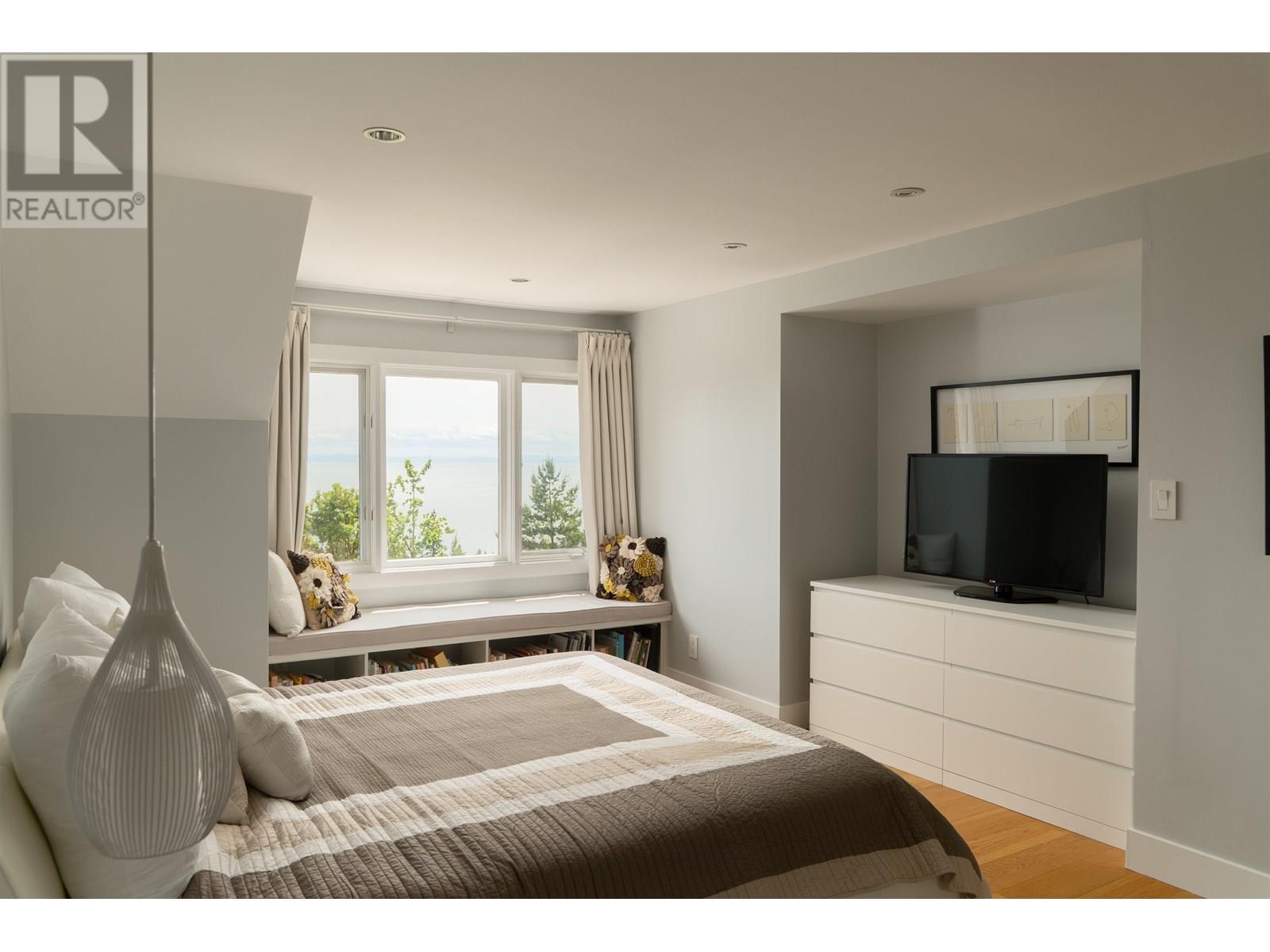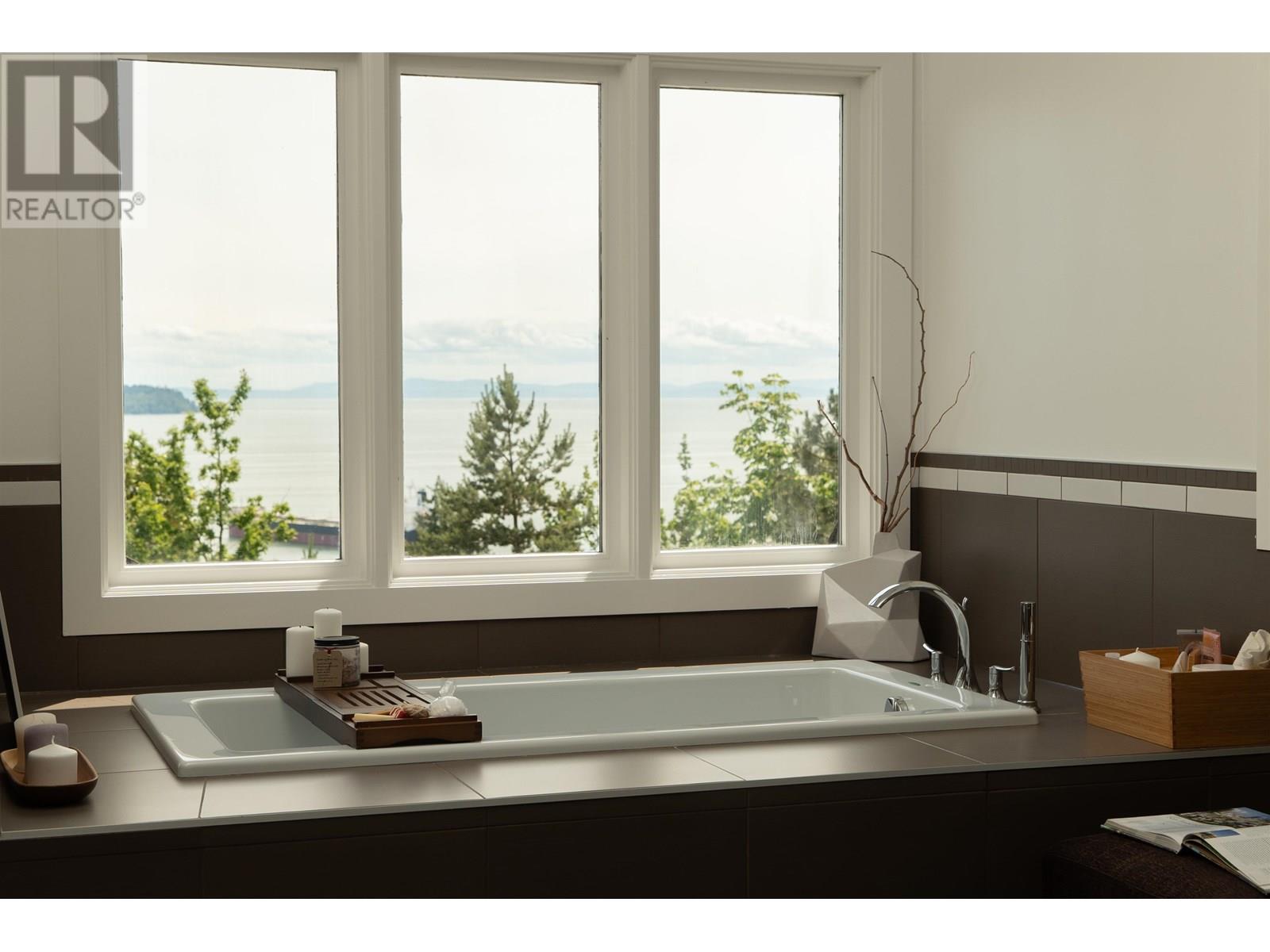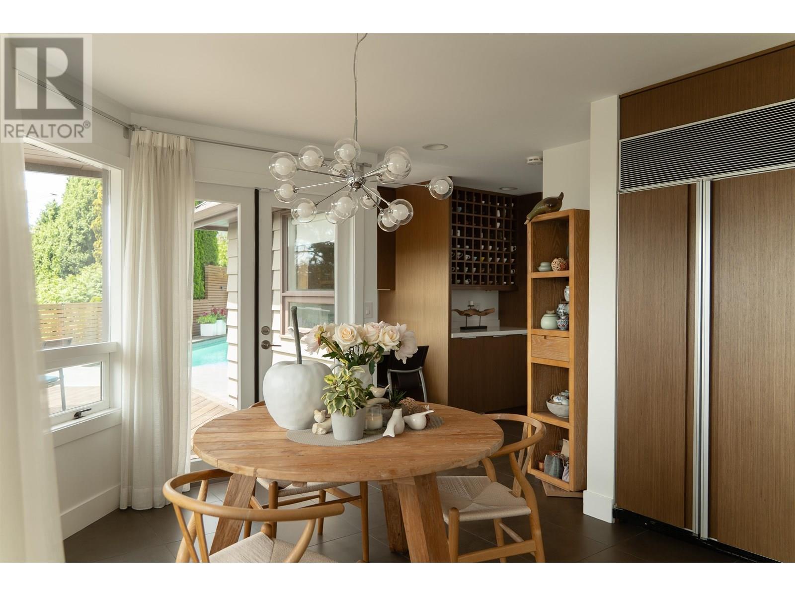 This stunning home offers breathtaking panoramic views and has been beautifully updated with a modern aesthetic. Stylish renovations to the bathrooms, kitchen, hardwood and tile flooring, and interior colors have transformed it into a true showpiece. With 5 bedrooms-one conveniently located on the main level with a full ensuite-and 4.5 luxurious bathrooms, the layout is both functional and elegant. The custom-designed kitchen boasts top-of-the-line appliances and a spacious central island, perfect for entertaining. The main living area features soaring cathedral ceilings and floor-to-ceiling windows that showcase the incredible view, along with a striking Bocci light fixture by Omer Arbel in the dining area. Expansive southwest-facing patios, decks, and a sunlit outdoor pool complete this exceptional home. (id:48970) Show More