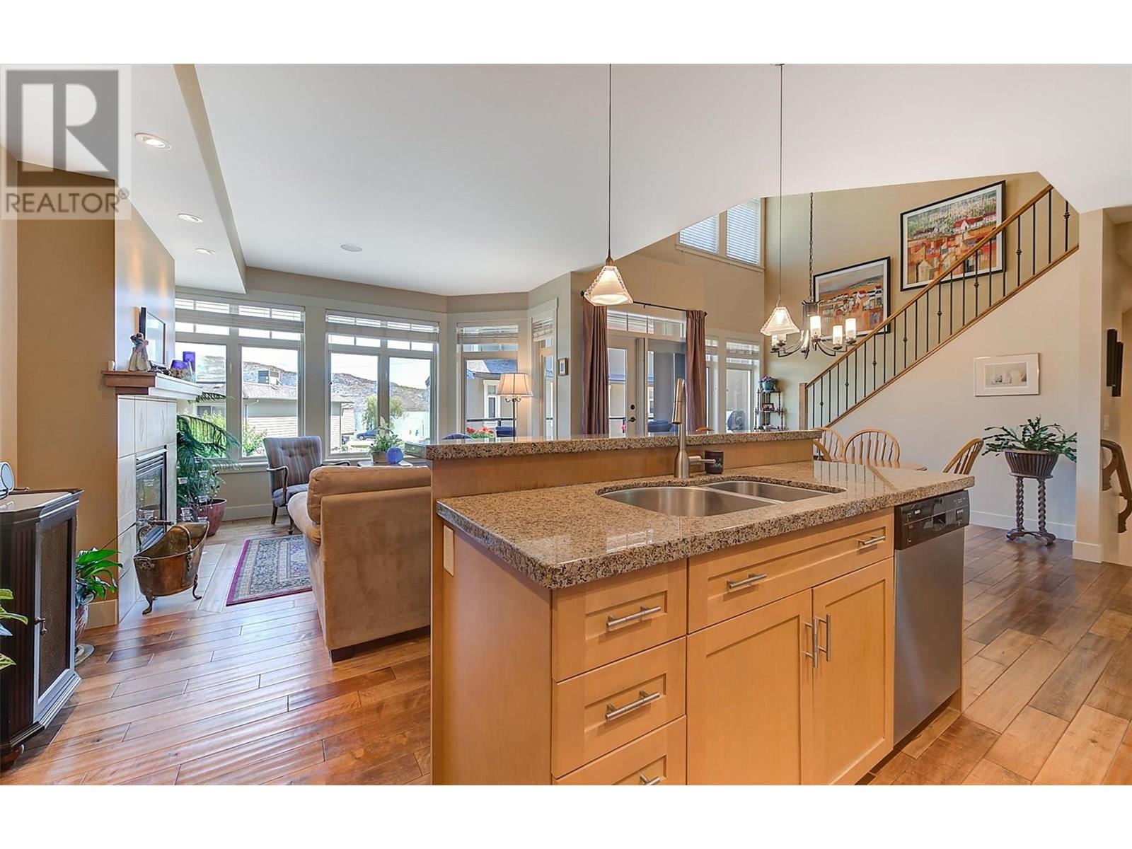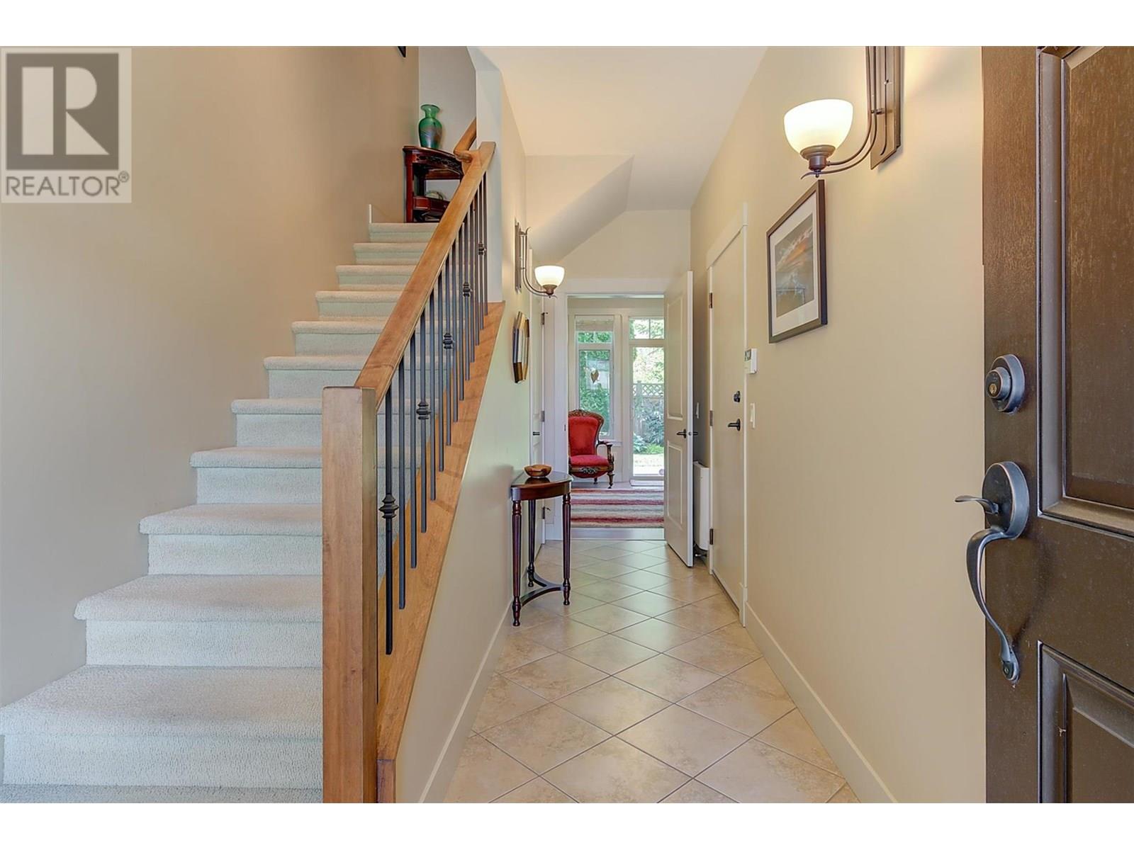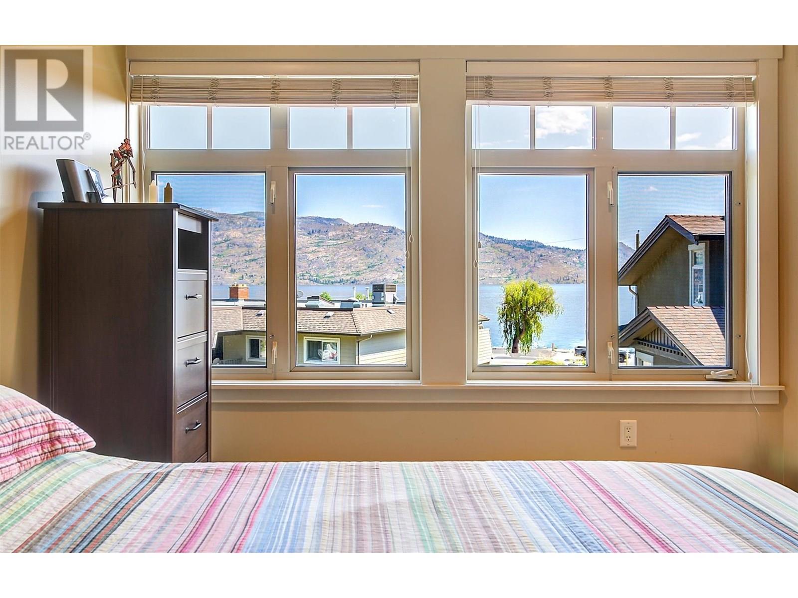 Welcome to this exclusive collection of just seven semi-lakeshore townhomes, ideally located along the highly desirable Beach Avenue in Peachland. This beautifully maintained, one-owner home is quietly positioned at the back of the development, offering privacy while still capturing scenic lake views. The main floor features a bright, open-concept layout with a spacious living room and cozy gas fireplace, a dining area, and a well-appointed kitchen with stainless steel appliances, a gas stove, granite countertops, and an eating bar. A sitting area, laundry room, and access to a generous lakeview deck—complete with an awning for added shade and comfort—make this level ideal for enjoying the Okanagan lifestyle. Expansive windows throughout fill the space with natural light, and built-in NUVO speakers provide high-quality audio in the home. Upstairs, the spacious primary suite showcases lovely lake views and direct access to the upper deck. The elegant ensuite offers dual vanities with granite counters, a tiled shower, a soaker tub, heated floors, and a walk-in closet. A second bedroom completes this level. The lower level offers a welcoming family room with a gas fireplace, a wet bar, and access to a private backyard patio. A third bedroom and a full bathroom with heated floors complete this versatile space. A double garage provides ample parking and storage. Additional highlights include a radon mitigation system, low strata fees, and pride of ownership. Enjoy the sought-after semi-lakeshore lifestyle—just steps to the beach, waterfront walking paths, and Peachland’s vibrant shops and restaurants. (id:48970) Show More