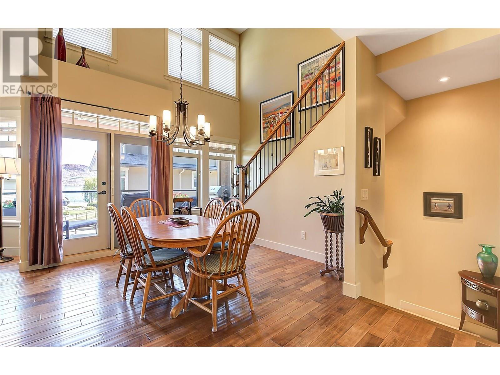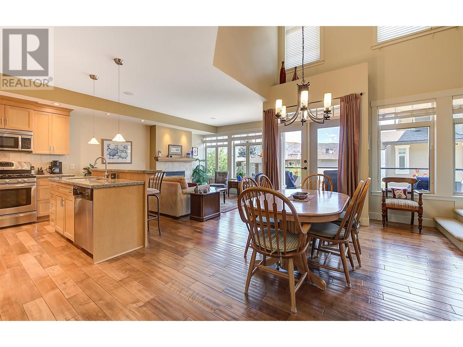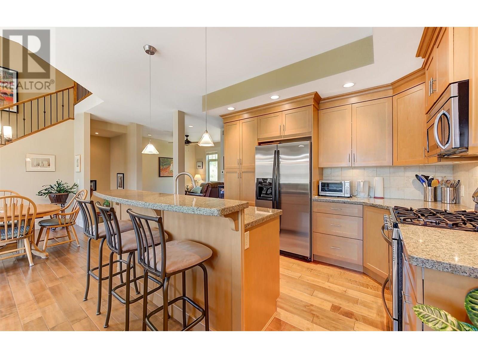 Welcome to this exclusive collection of just seven semi-lakeshore townhomes, ideally located along the highly desirable Beach Avenue in Peachland. This beautifully maintained, one-owner home is quietly positioned at the back of the development, offering privacy while still capturing scenic lake views. The main floor features a bright, open-concept layout with a spacious living room and cozy gas fireplace, a dining area, and a well-appointed kitchen with stainless steel appliances, a gas stove, granite countertops, and an eating bar. A sitting area, laundry room, and access to a generous lakeview deck—complete with an awning for added shade and comfort—make this level ideal for enjoying the Okanagan lifestyle. Expansive windows throughout fill the space with natural light, and built-in NUVO speakers provide high-quality audio in the home. Upstairs, the spacious primary suite showcases lovely lake views and direct access to the upper deck. The elegant ensuite offers dual vanities with granite counters, a tiled shower, a soaker tub, heated floors, and a walk-in closet. A second bedroom completes this level. The lower level offers a welcoming family room with a gas fireplace, a wet bar, and access to a private backyard patio. A third bedroom and a full bathroom with heated floors complete this versatile space. A double garage provides ample parking and storage. Additional highlights include a radon mitigation system, low strata fees, and pride of ownership. Enjoy the sought-after semi-lakeshore lifestyle—just steps to the beach, waterfront walking paths, and Peachland’s vibrant shops and restaurants. (id:48970) Show More