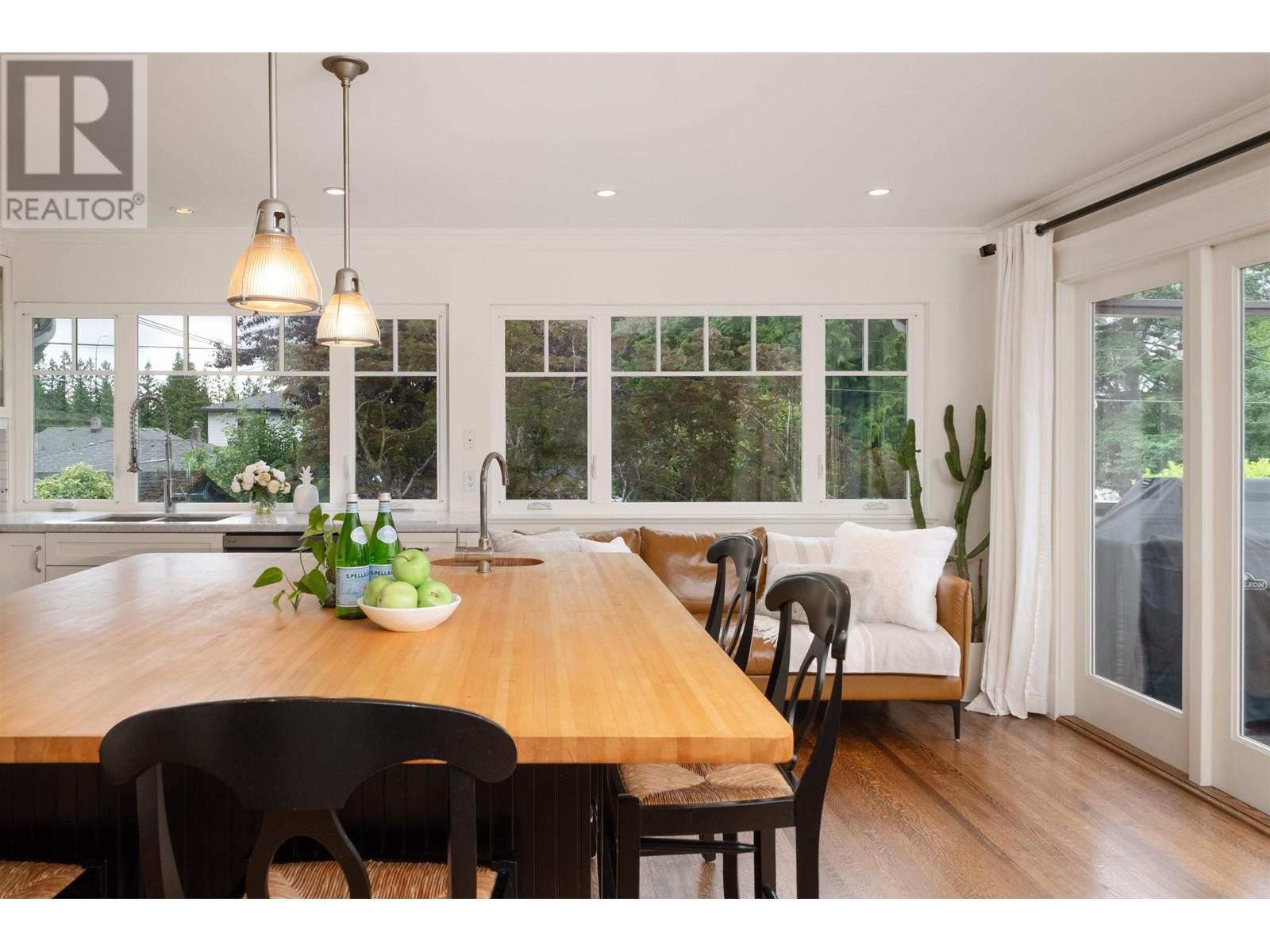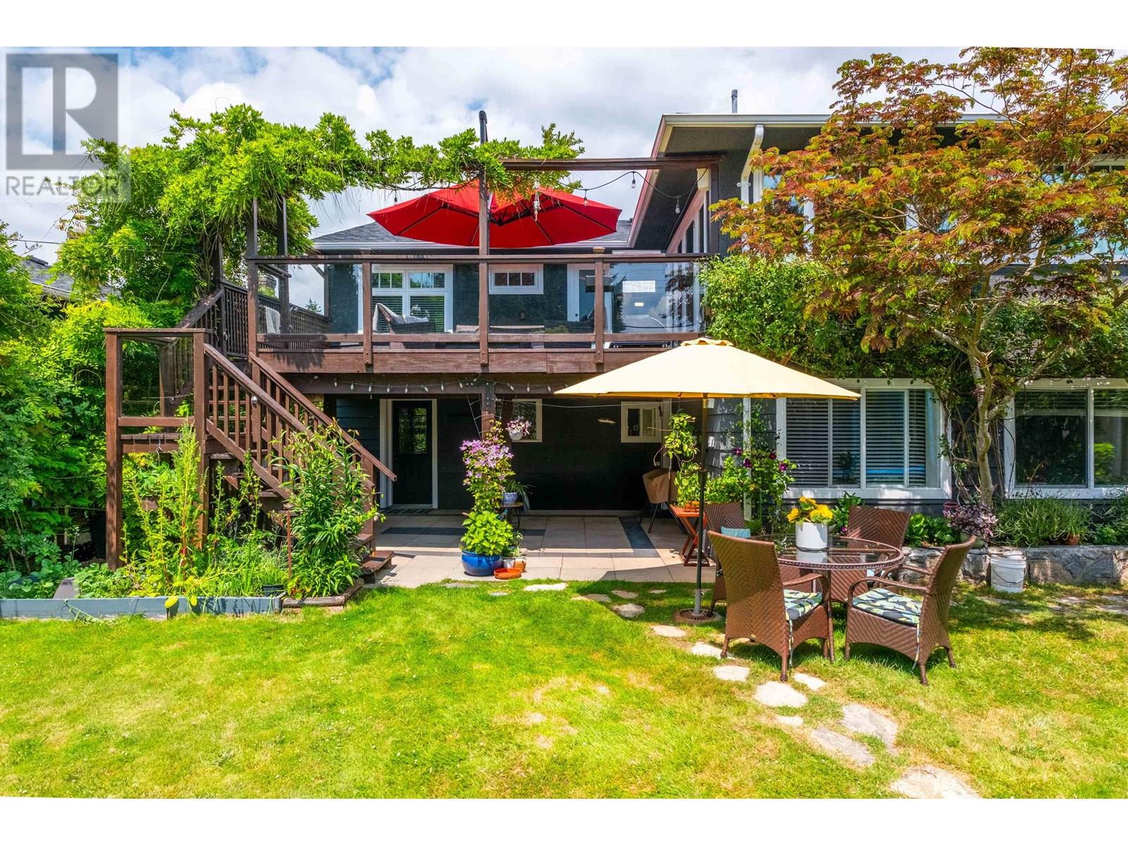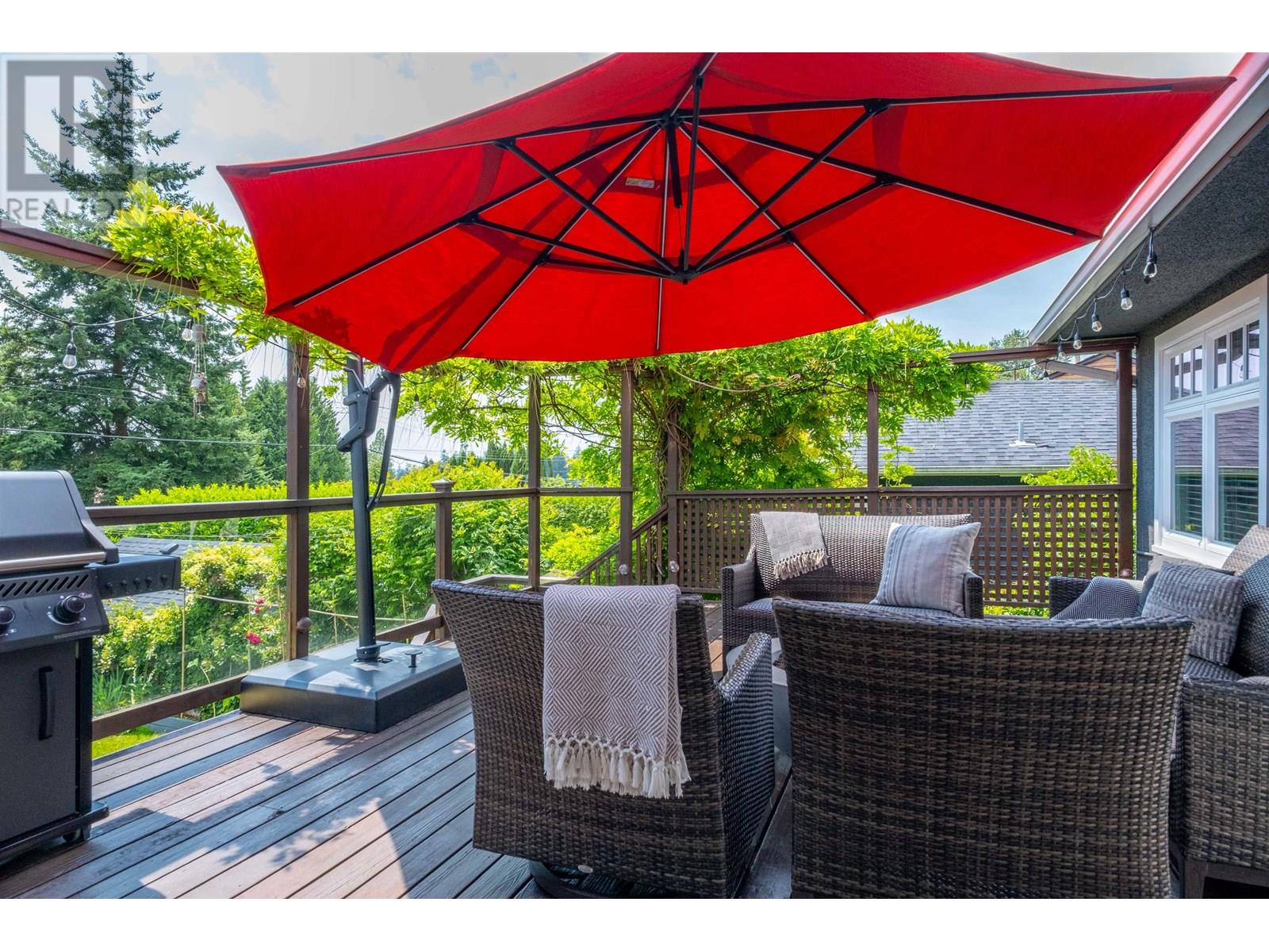 a rare blend of flexibility, comfort, and garden-rich charm in the heart of Upper Lonsdale. With over 2,750 sq.ft of living space across two well-planned levels, this 4-bedroom, 3-bathroom home is perfectly suited for families seeking multi-generational living or simply room to grow. Step inside to an inviting main floor with large picture windows that flood the home with natural light and overlook the beautifully landscaped front and back gardens. The living room features a traditional wood-burning fireplace and warm oak floors, while the dining area opens to a bright, updated kitchen with classic white cabinetry, butcher block island, and a charming greenhouse window for your herbs and houseplants. From the kitchen, Step out to a 323 sq.ft south-facing deck-perfect for outdoor dining and relaxing-overlooking a beautifully landscaped backyard with mature plantings and curated perennial beds. Includes built-in office space, covered parking, and a location just minutes to parks, trails, and the amenities of (id:48970) Show More