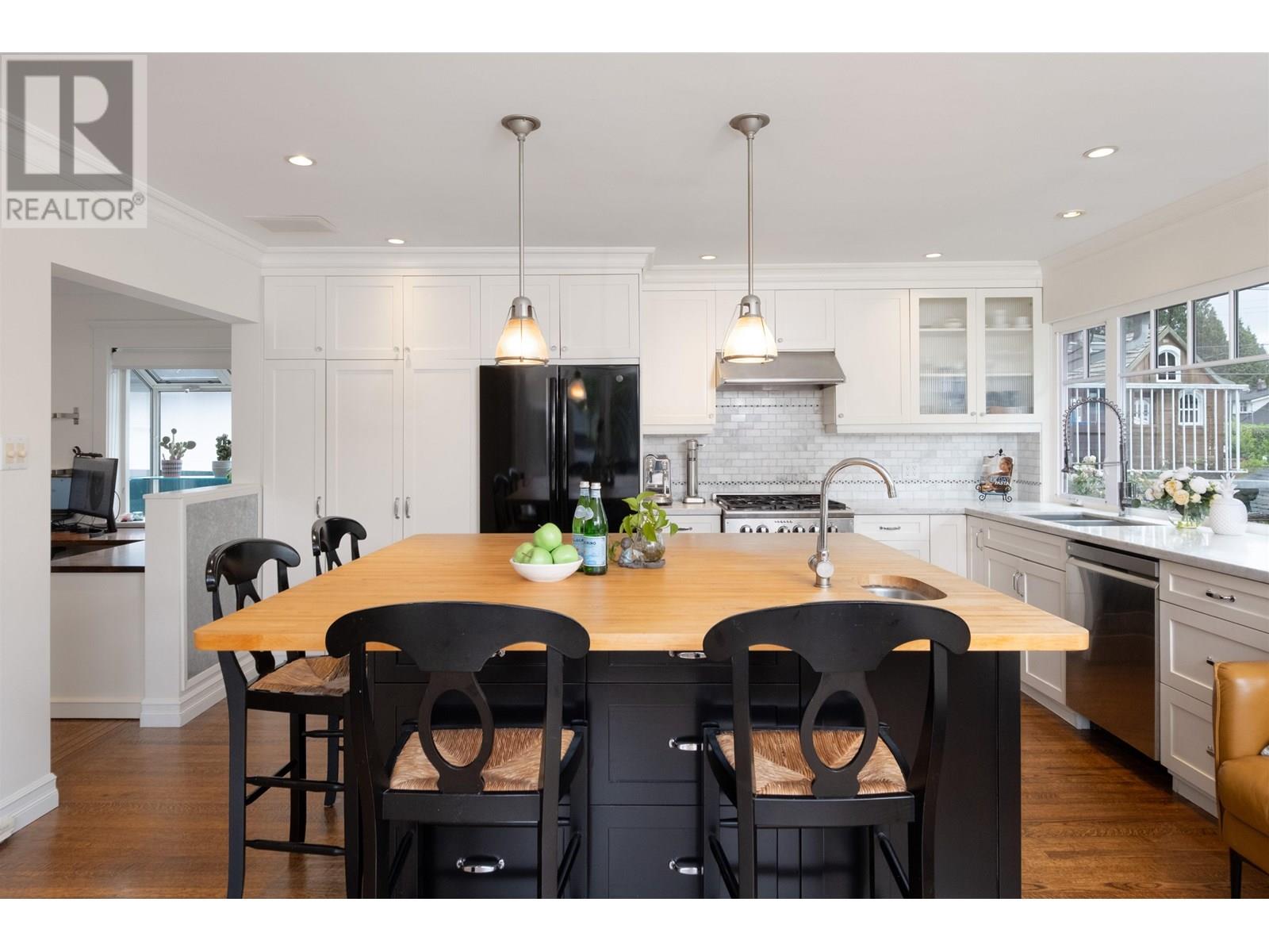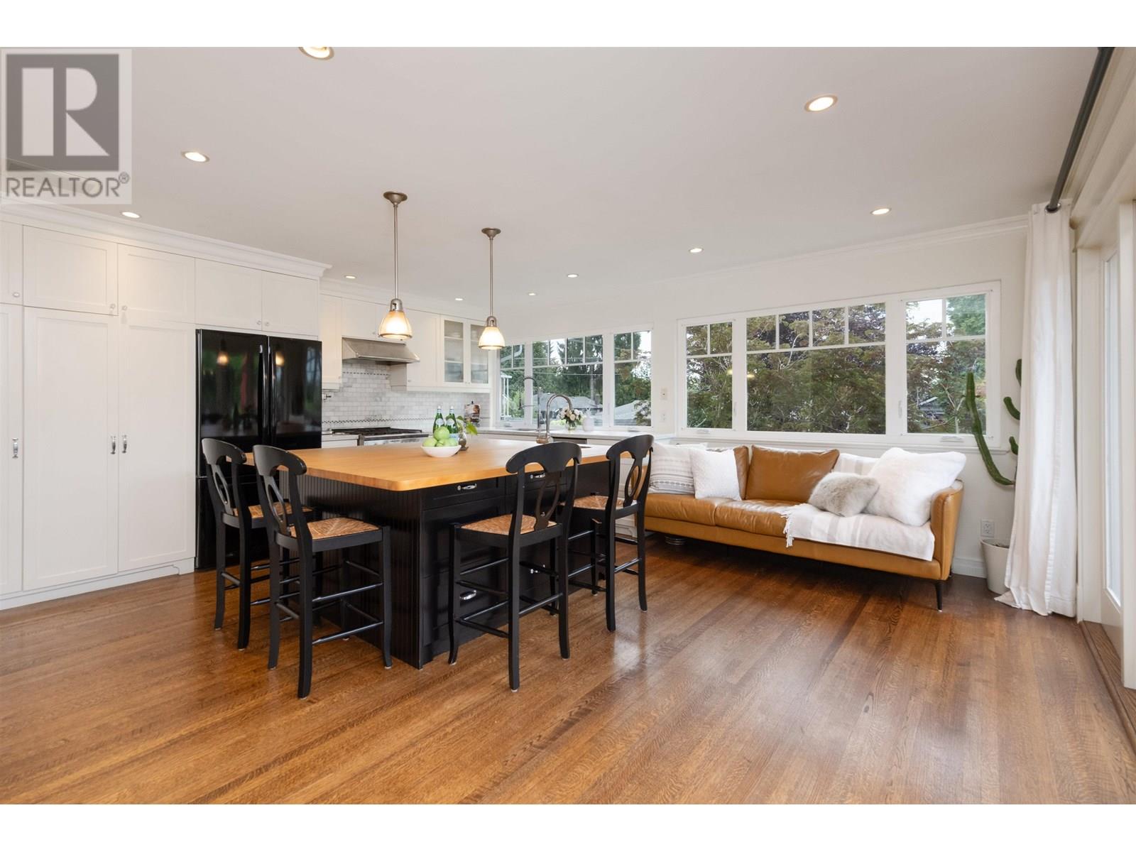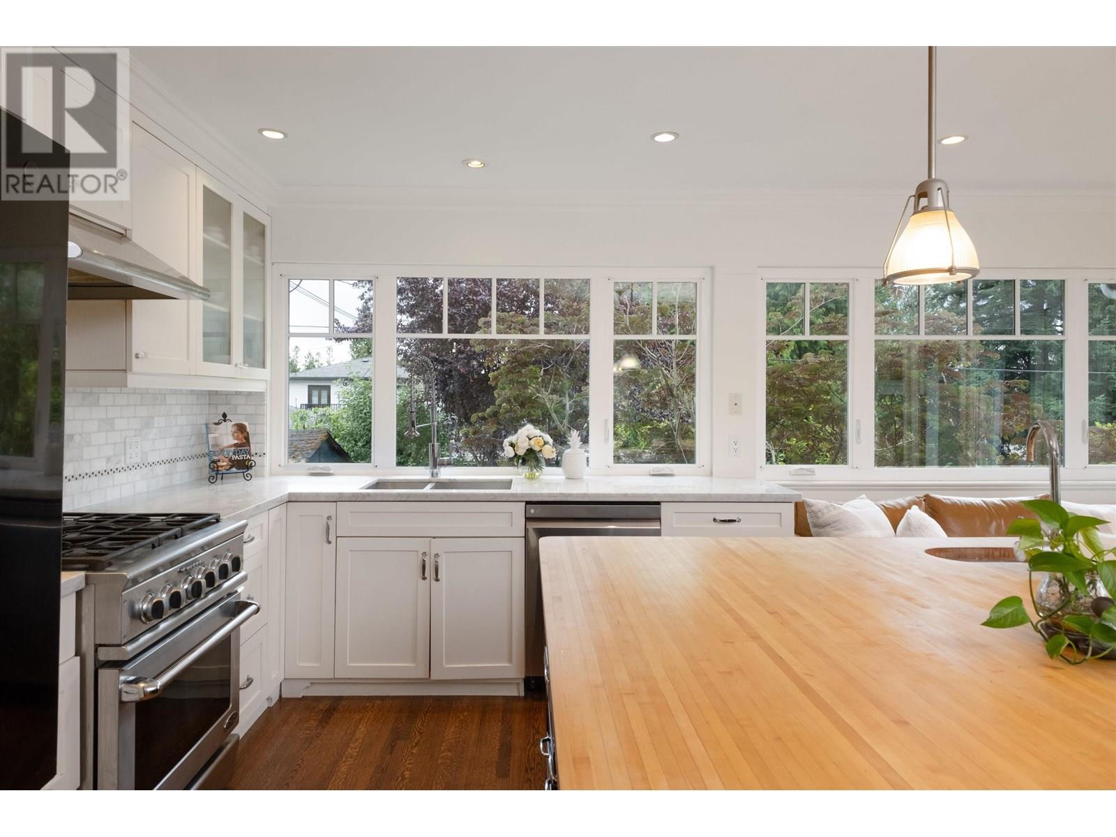 a rare blend of flexibility, comfort, and garden-rich charm in the heart of Upper Lonsdale. With over 2,750 sq.ft of living space across two well-planned levels, this 4-bedroom, 3-bathroom home is perfectly suited for families seeking multi-generational living or simply room to grow. Step inside to an inviting main floor with large picture windows that flood the home with natural light and overlook the beautifully landscaped front and back gardens. The living room features a traditional wood-burning fireplace and warm oak floors, while the dining area opens to a bright, updated kitchen with classic white cabinetry, butcher block island, and a charming greenhouse window for your herbs and houseplants. From the kitchen, Step out to a 323 sq.ft south-facing deck-perfect for outdoor dining and relaxing-overlooking a beautifully landscaped backyard with mature plantings and curated perennial beds. Includes built-in office space, covered parking, and a location just minutes to parks, trails, and the amenities of (id:48970) Show More
