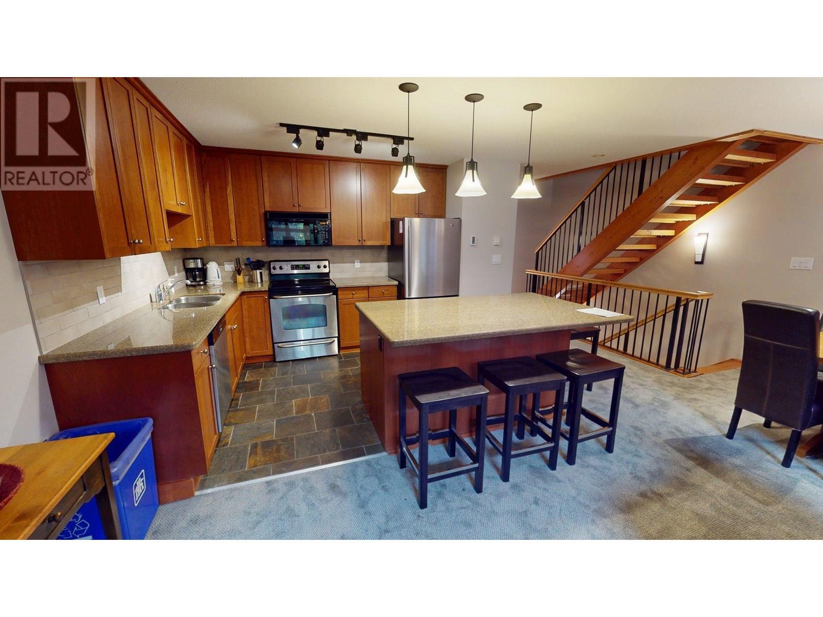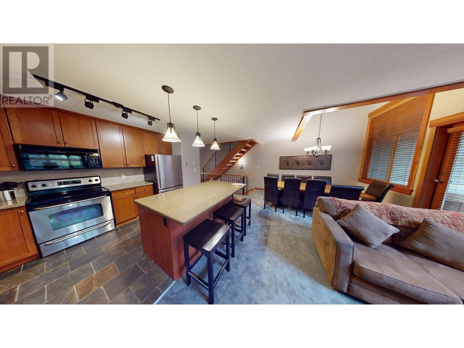 Enjoy luxury living in this spacious townhouse with a private garage, patio, hot tub, BBQ, and large lawn. Brand new carpets and kitchen backsplash just installed! This 1/4 ownership offers 12–13 weeks of use annually, with the option to rent weeks to offset costs. Steps from the Elk River’s world-class fly fishing, the home features vaulted ceilings, a bright living room, a gourmet kitchen with granite countertops, stainless steel appliances, and a bedroom with two queen beds. The lower level includes a bunk room, TV den with pull-out sofa, and ample space to relax. Upstairs, the master suite offers a window bench, oversized ensuite, soaker tub, and incredible views From the back patio, enjoy stunning mountain views of the ski resort, Lost Boys Cafe and Ghostrider Mountain from the private hot tub. Additional features include heated tile floors, in-unit laundry, snow removal, a heated garage, and room for 14 guests. Located in Fernie, close to biking and hiking trails, a scenic flat trail takes you into town. A turn-key investment blending comfort and adventure! 'Fernie- Where Your Next Adventure Begins!' (id:48970) Show More