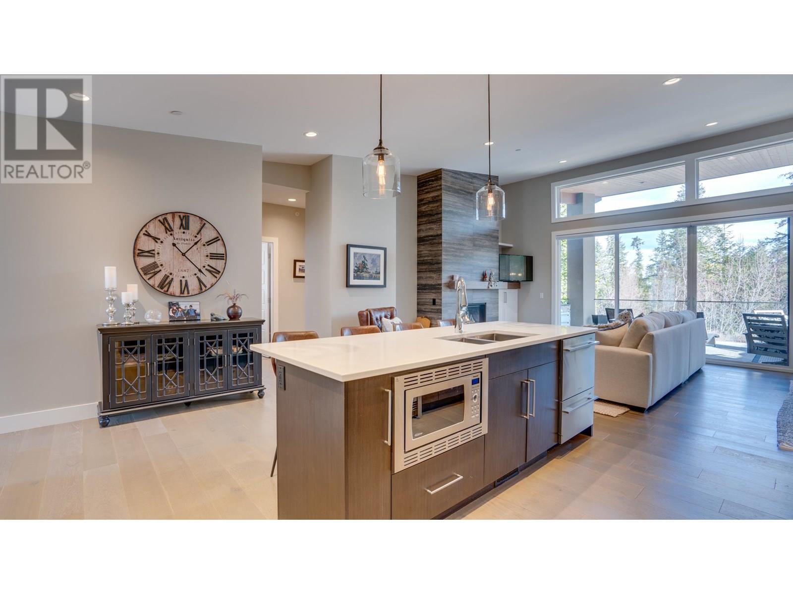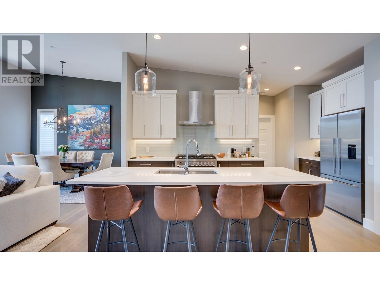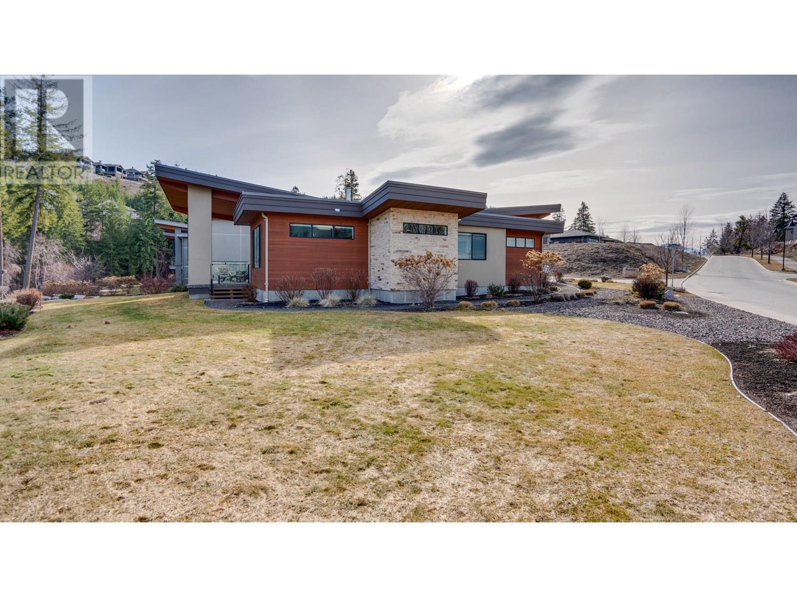 Nestled in the coveted Whitetail subdivision at Predator Ridge, this modern 1,784 sf rancher sits on a large corner lot with stunning views of the 3rd green. It offers 3 bdrms, 2 baths, and a dedicated laundry area, all flowing into an open-concept kitchen, living, and dining space that leads outdoors. The gourmet kitchen impresses with quartz countertops, stainless appliances (Fisher Paykel) , a spacious island, an impressive butler's pantry, and an add'l walk-in pantry, complemented by hardwood floors in neutral tones. The master suite features large windows overlooking the green and a spa-like ensuite with double sinks, a deep soaker tub, glass-enclosed shower, and heated tile floors. An expansive covered deck adds extra living space for entertaining or relaxing. Additional highlights include geothermal heating/cooling, an attached double garage with a cart bay, and a transferable golf membership. Designed for an easy “lock and leave” lifestyle, homeowners enjoy full landscaping services and extensive rec amenities included in the strata fee. With two world-class golf courses, a clubhouse, rec center, hiking/biking trails, yoga platforms, pickleball, and tennis, this community offers a true lifestyle retreat. Plus, with Kelowna Airport 23 minutes away, Silver Star Ski Resort 45 minutes away, and just nearby Sparkling Hill Wellness Hotel with its world-class spa, Predator Ridge is not just a home. Phase 2 Golf Membership available for $55,000 , Plus transfer fee, EXEMPT FROM SPEC/VACANCY TAX (id:48970) Show More