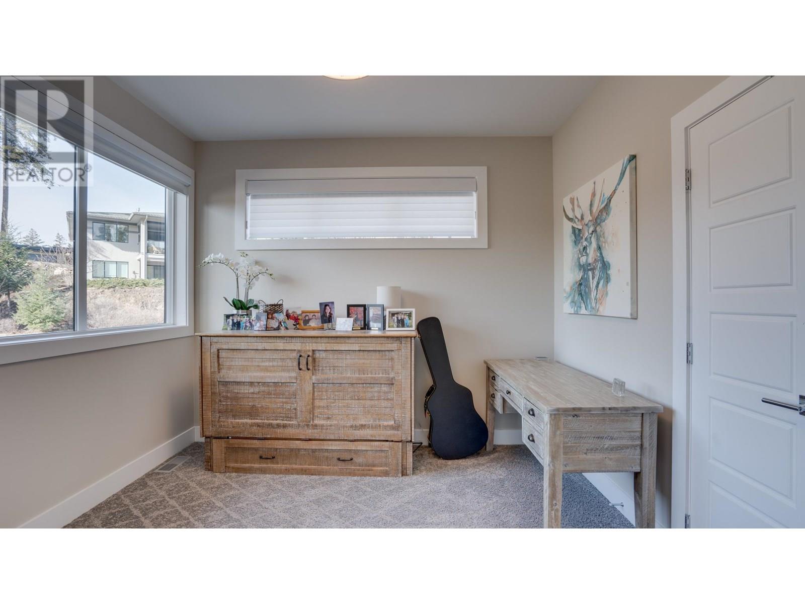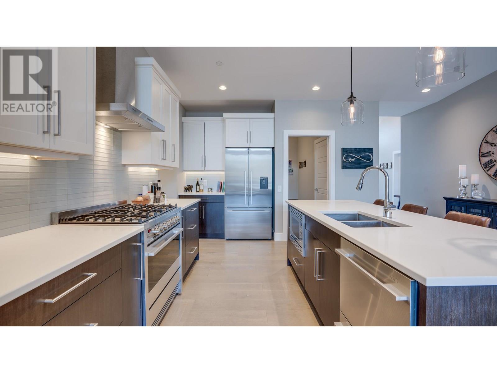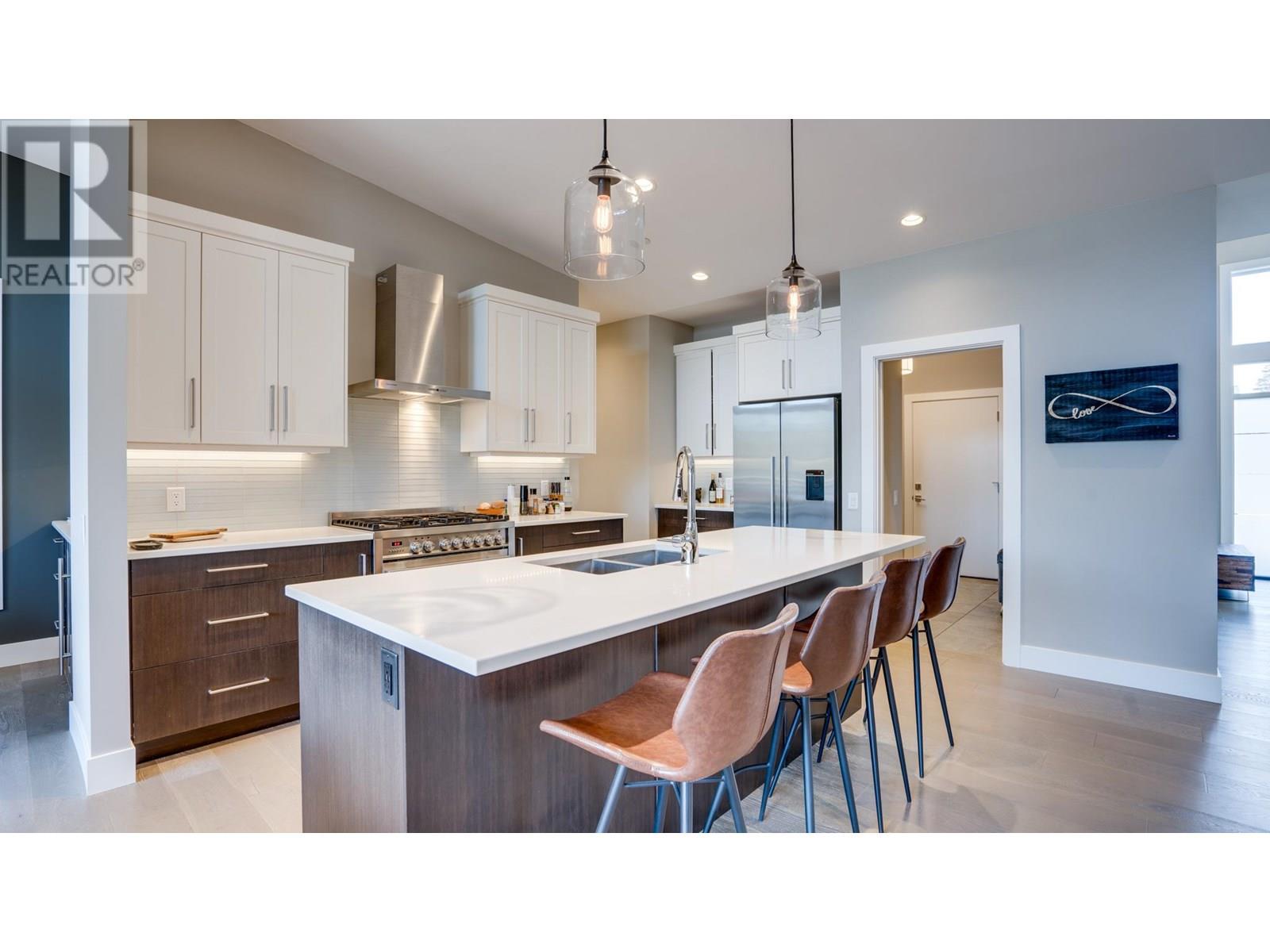 Nestled in the coveted Whitetail subdivision at Predator Ridge, this modern 1,784 sf rancher sits on a large corner lot with stunning views of the 3rd green. It offers 3 bdrms, 2 baths, and a dedicated laundry area, all flowing into an open-concept kitchen, living, and dining space that leads outdoors. The gourmet kitchen impresses with quartz countertops, stainless appliances (Fisher Paykel) , a spacious island, an impressive butler's pantry, and an add'l walk-in pantry, complemented by hardwood floors in neutral tones. The master suite features large windows overlooking the green and a spa-like ensuite with double sinks, a deep soaker tub, glass-enclosed shower, and heated tile floors. An expansive covered deck adds extra living space for entertaining or relaxing. Additional highlights include geothermal heating/cooling, an attached double garage with a cart bay, and a transferable golf membership. Designed for an easy “lock and leave” lifestyle, homeowners enjoy full landscaping services and extensive rec amenities included in the strata fee. With two world-class golf courses, a clubhouse, rec center, hiking/biking trails, yoga platforms, pickleball, and tennis, this community offers a true lifestyle retreat. Plus, with Kelowna Airport 23 minutes away, Silver Star Ski Resort 45 minutes away, and just nearby Sparkling Hill Wellness Hotel with its world-class spa, Predator Ridge is not just a home. Phase 2 Golf Membership available for $55,000 , Plus transfer fee, EXEMPT FROM SPEC/VACANCY TAX (id:48970) Show More