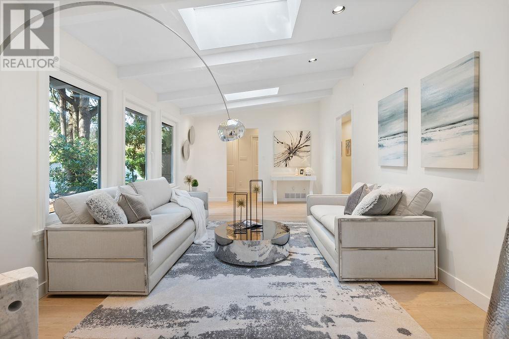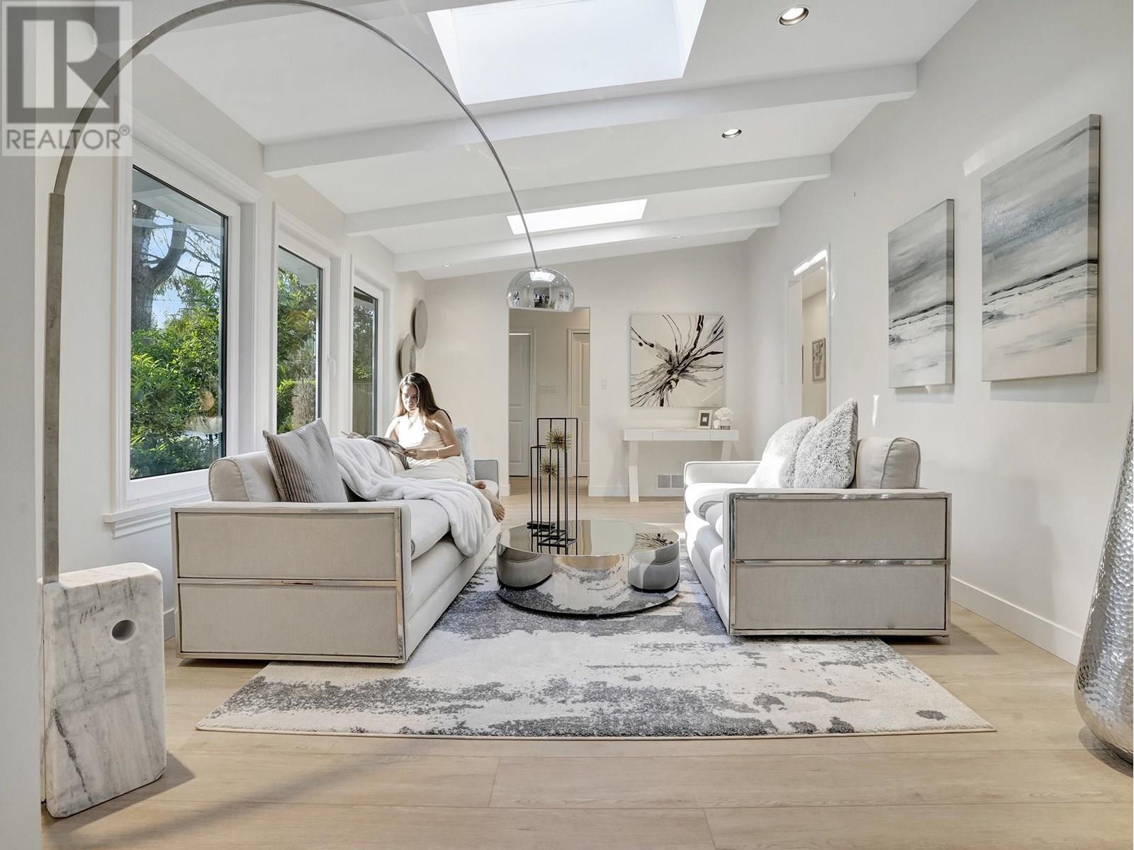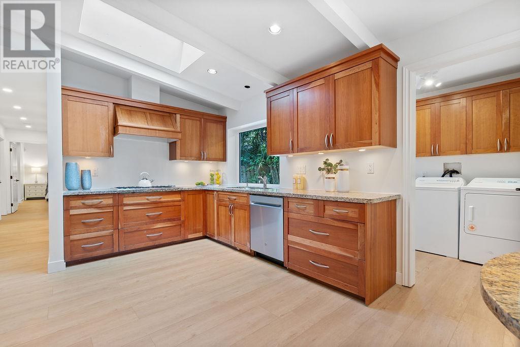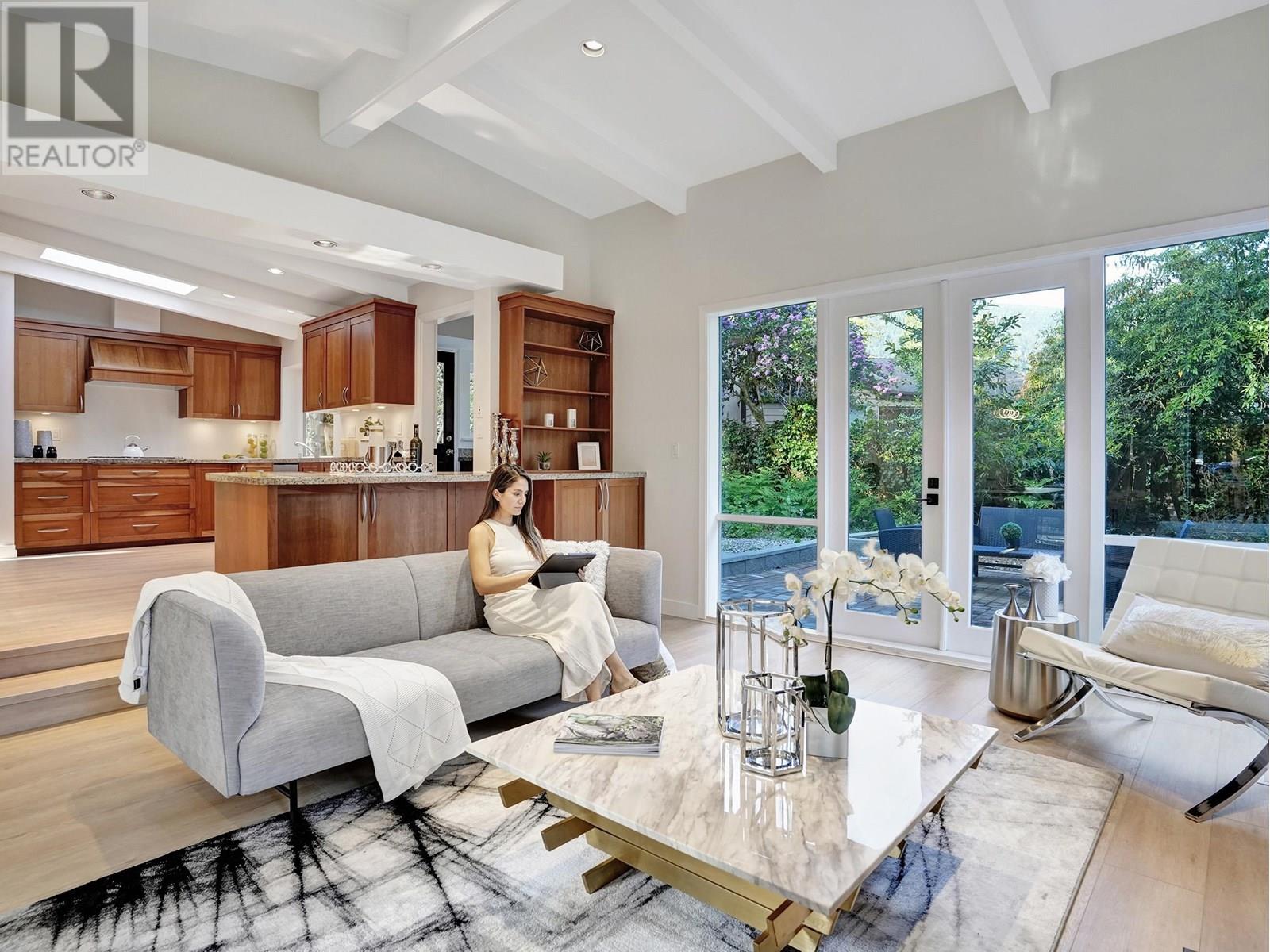 This beautifully RENOVATED home sits on a rare, leveled lot with a 90' frontage in the highly desirable Canyon Heights area of North Vancouver. Located on the serene and wide Glenwood Ave, this home is within walking distance to North Vancouver´s top schools: just a 5-minute walk to Handsworth Secondary and 10-minute walk to Canyon Heights Elementary. The SINGLE-LEVEL, open-concept layout features a huge open kitchen and vaulted ceilings that create a spacious and airy feel, abundant natural light that fills the home through updated windows and skylights, 3 spacious bedrooms, 2 fully renovated bathrooms, and other recent updates including flooring and landscaping. PERFECT for families looking for a blend of tranquility and convenience in a PRIME LOCATION! (id:48970) Show More