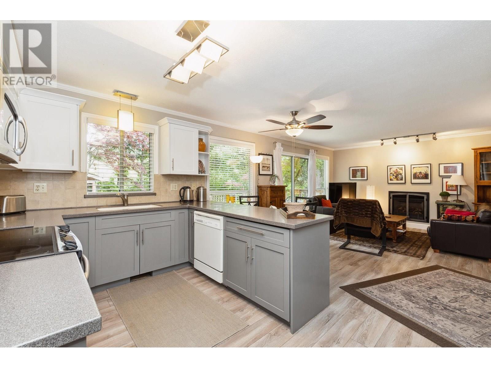 Welcome to Timber Ridge, an undiscovered, quiet enclave of beautiful family homes tucked away in Lynn Valley. This well cared for home is warm & inviting, beautifully updated and nestled in a private magical setting. You'll love the open concept modern home, the flow from the living room, to fabulous open kitchen with the family room that flows seamlessly outside to the privacy of a over 650sqft deck where you can enjoy a tranquil view of Mt. Seymour. Upstairs are 3 bedrooms, incl a lrg primary bedroom. Downstairs is a fabulous rec room and a ton of storage. Attached double garage provides tons of storage & easy access to all the bikes and gear. Some of the best bike and hiking trails just out your front door. North Vancouver living at its best! (id:48970) Show More