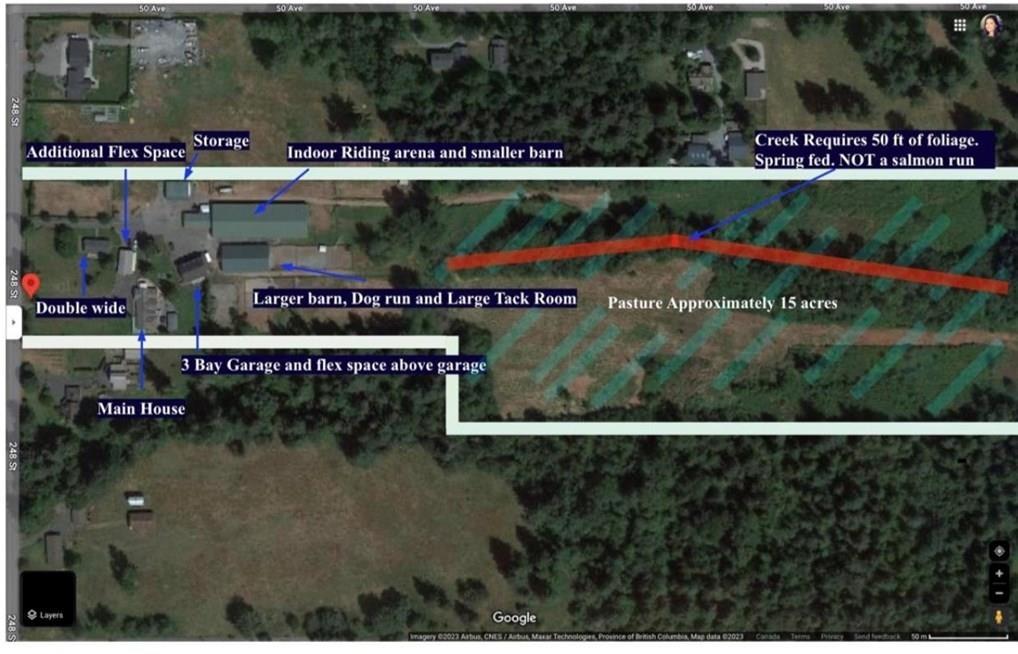 Discover the perfect blend of country living and income potential on this 20-acre farm in the ALR. Featuring approximately 15 acres of pasture, a spacious 3,000+ sq ft rancher, a permitted double-wide mobile home, two barns, and an indoor riding arena currently generating $5,000 a month-this is just the beginning of its revenue potential. Additional highlights include a four-bay garage and two more permitted buildings with office space or rental potential. Whether you're looking to expand an equestrian business or create a multi-use agricultural enterprise, this property offers endless opportunities and built-in equity. Lovingly maintained by the same family for years, it's a great opportunity for multigenerational living. Book a private tour today! (id:48970) Show More