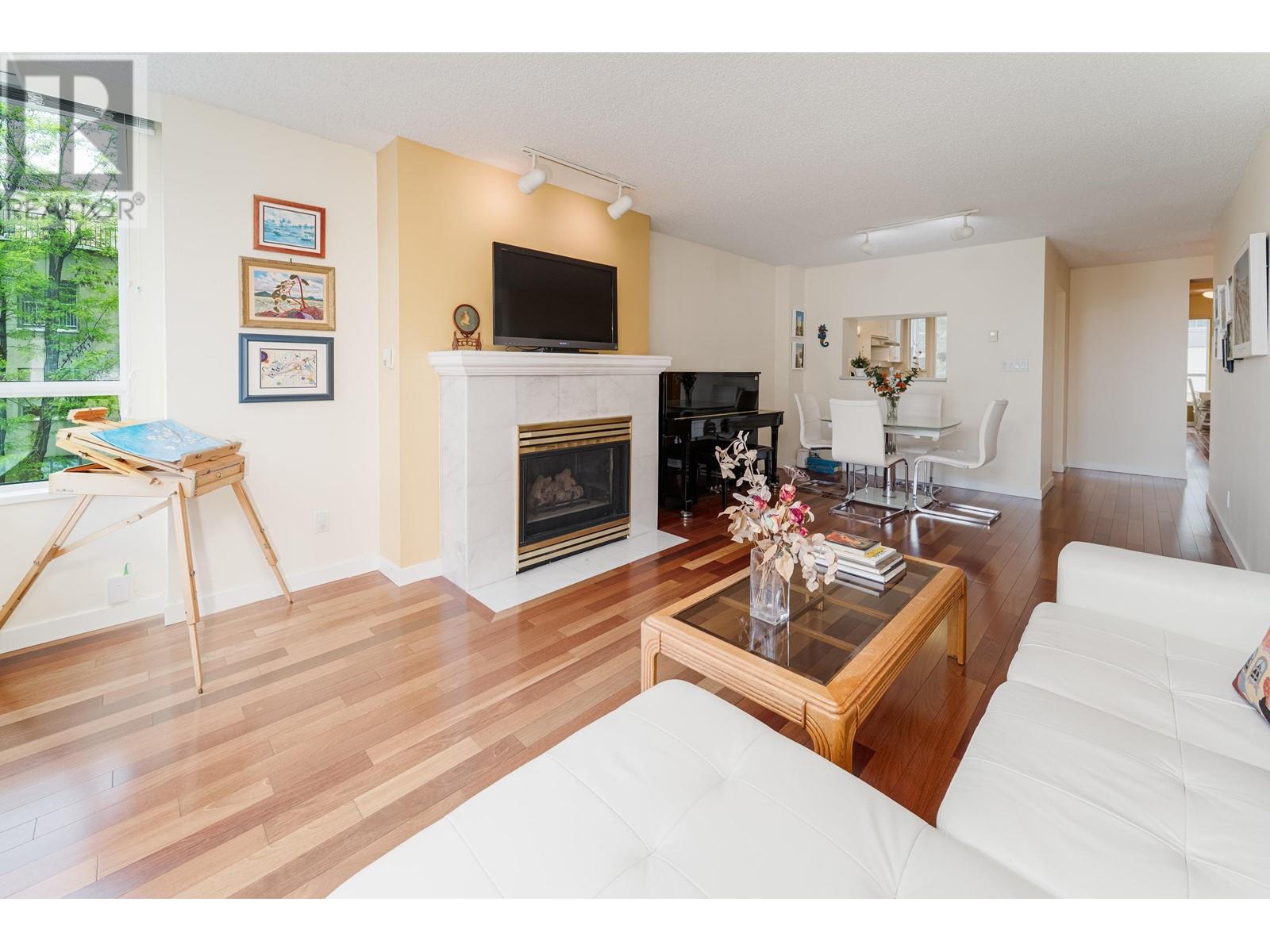 THE UNIT - This generously sized 2-bedroom, 2-bathroom + den home is bathed in natural light and meticulously designed with Brazilian cherry hardwood floors and Hunter Douglas blinds. The suite features an efficiently designed floor plan, abundant in-suite storage space, an inviting kitchen equipped with extensive cabinetry and brand-new 2024 stainless steel appliances, a gas fireplace, and a spacious primary bedroom. Enjoy views of the ocean and sunsets from your south-facing balcony. THE BUILDING - Recently underwent a full exterior retrofit with a new building envelope, upgraded high-insulation rainscreen system, and triple-glazed windows. The sleek metal exterior exudes modern sophistication and durability. Bonus - a proactive strata dedicated to maintaining the highest standards of upkeep. LOCATION - Enjoy the best of the West End. Walking distance to beaches, the seawall, restaurants, shopping, entertainment, and grocery stores! (id:48970) Show More