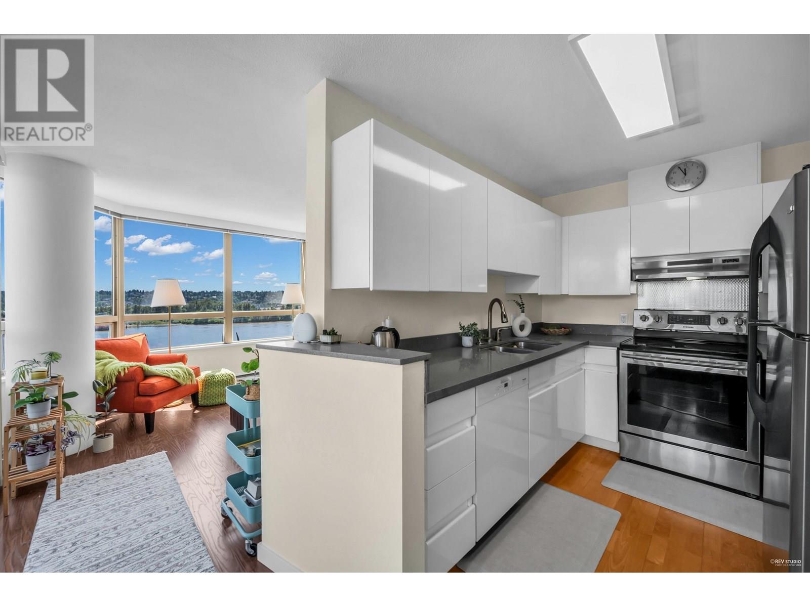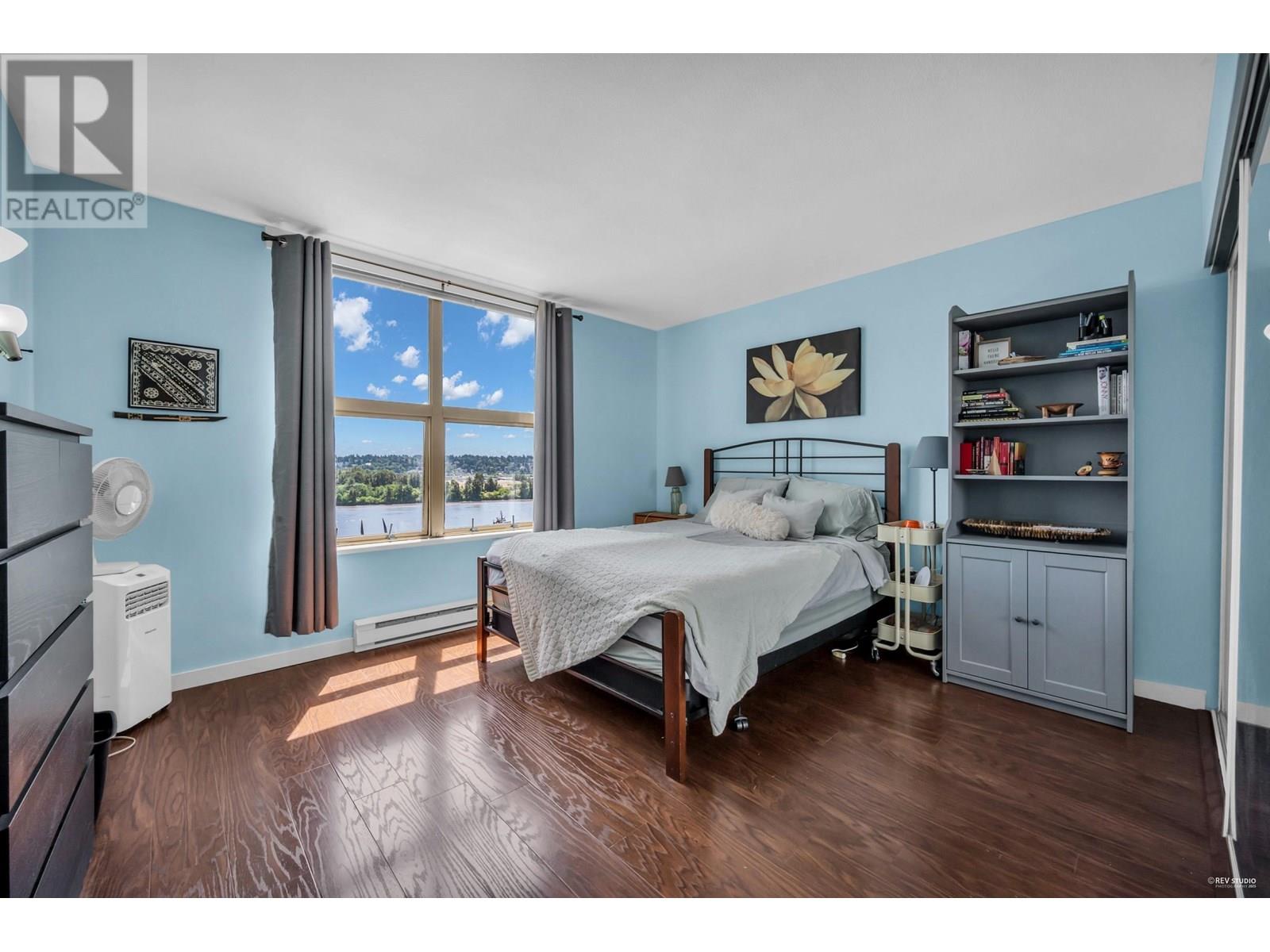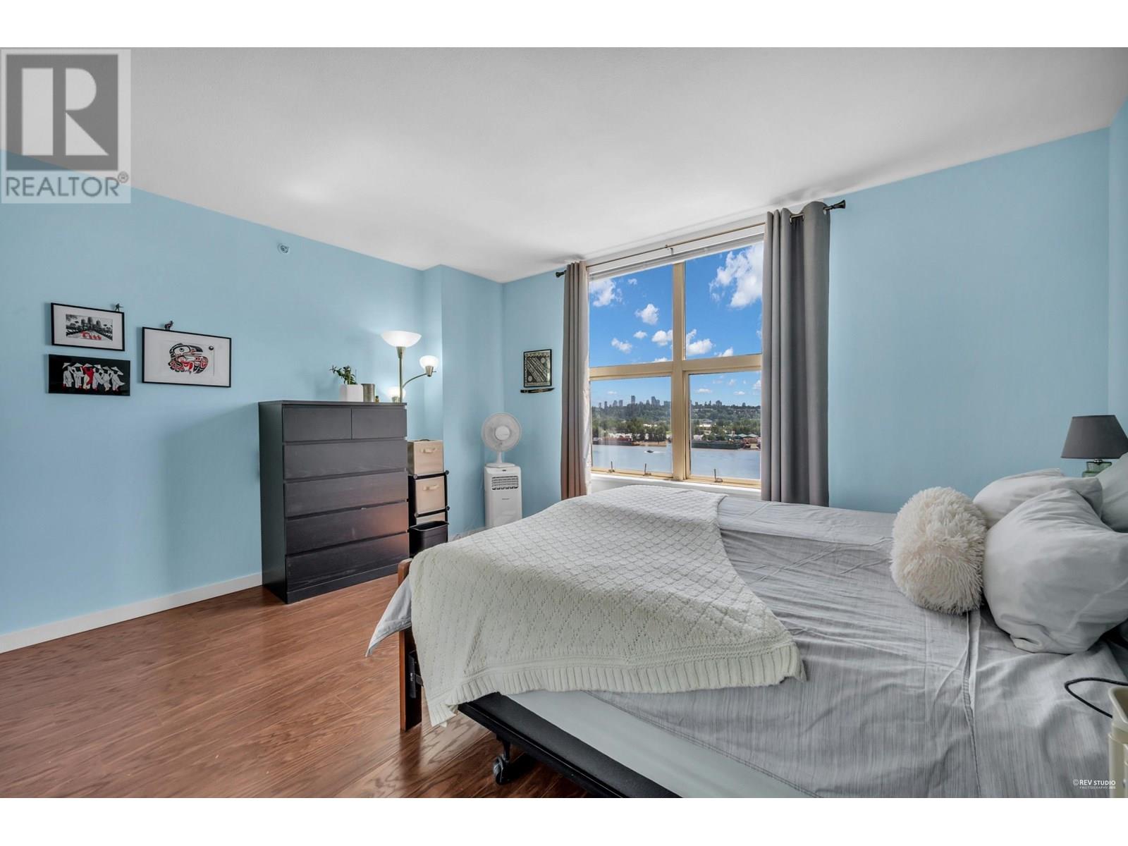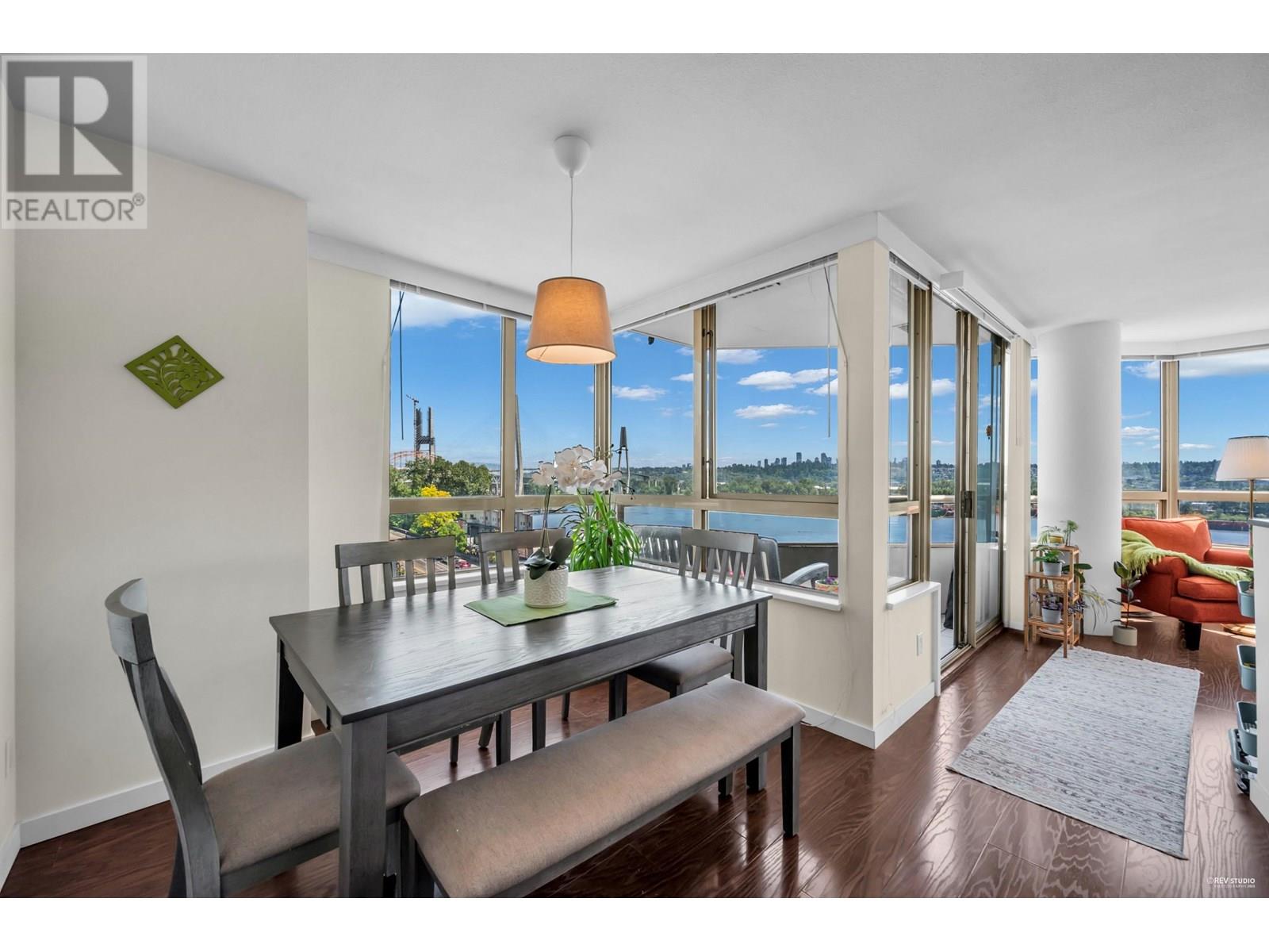 Enjoy breathtaking, unobstructed views of the Fraser River, city, and Pier Park from this spacious 955 square ft Southeast corner unit in the heart of Downtown New Westminster. This bright 2 bed and 2 bath home features an ideal layout with separated bedrooms, laminate floors, updated quartz counters, newer stainless steel appliances, and a full-size washer/dryer. Stunning views from every room! Just steps to Columbia SkyTrain, the Quay, shops, dining, parks, and more. 1 parking & 1 locker included. **Open House July 13th Sunday 2-3:30PM** (id:48970) Show More