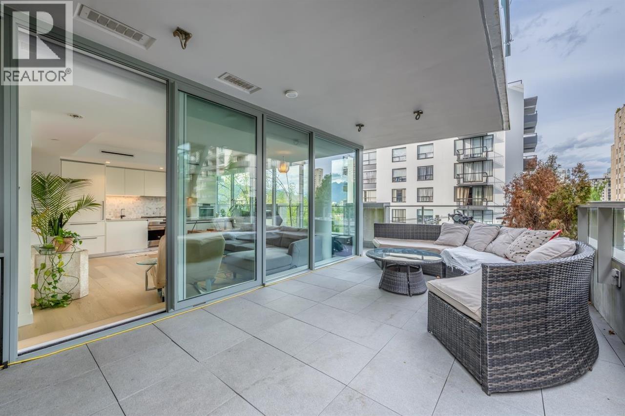 Welcome to Mirabel by Marcon, where exceptional craftsmanship meets the visionary design of Henriquez Partners Architects and the award-winning talent of designer Alda Pereira. This unit features spacious 816 sqft indoor living space and huge 326sqft wrap-up outdoor Private and Exclusive Patio. This highly coveted unit offer 2 bedrooms and 2 bathrooms, exemplifying West Coast modernism with its minimalist elegance. Modern style Kitchen featuring Stainless Steel BOSH appliances and soft-close cabinetry. This bright, sun-drenched living area is accentuated by floor-to-ceiling windows, automatic blind shades, seamlessly extending to the huge patio. Within walking distance to English Bay, Stanley Park, shopping & restaurants. A MUST SEE! Act fast, won´t miss the opportunity! (id:48970) Show More