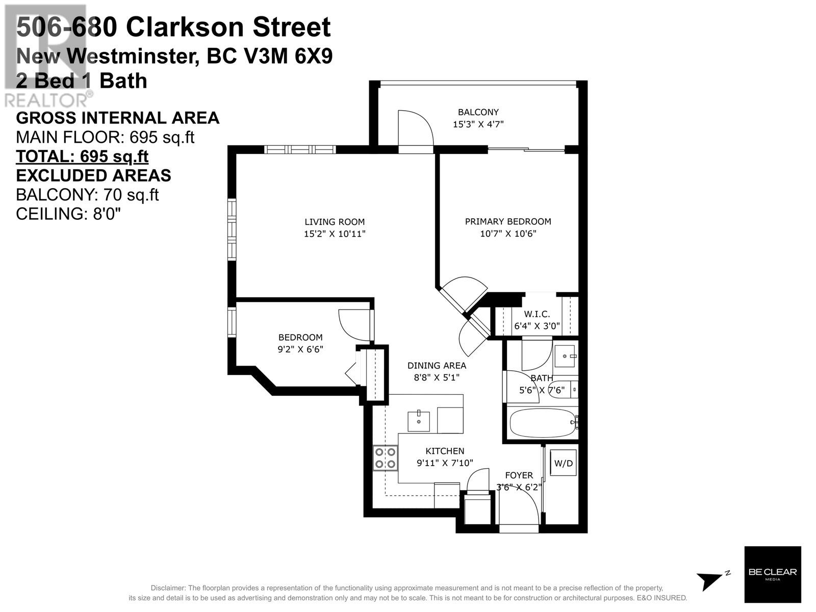 - Area 695 sq ft
