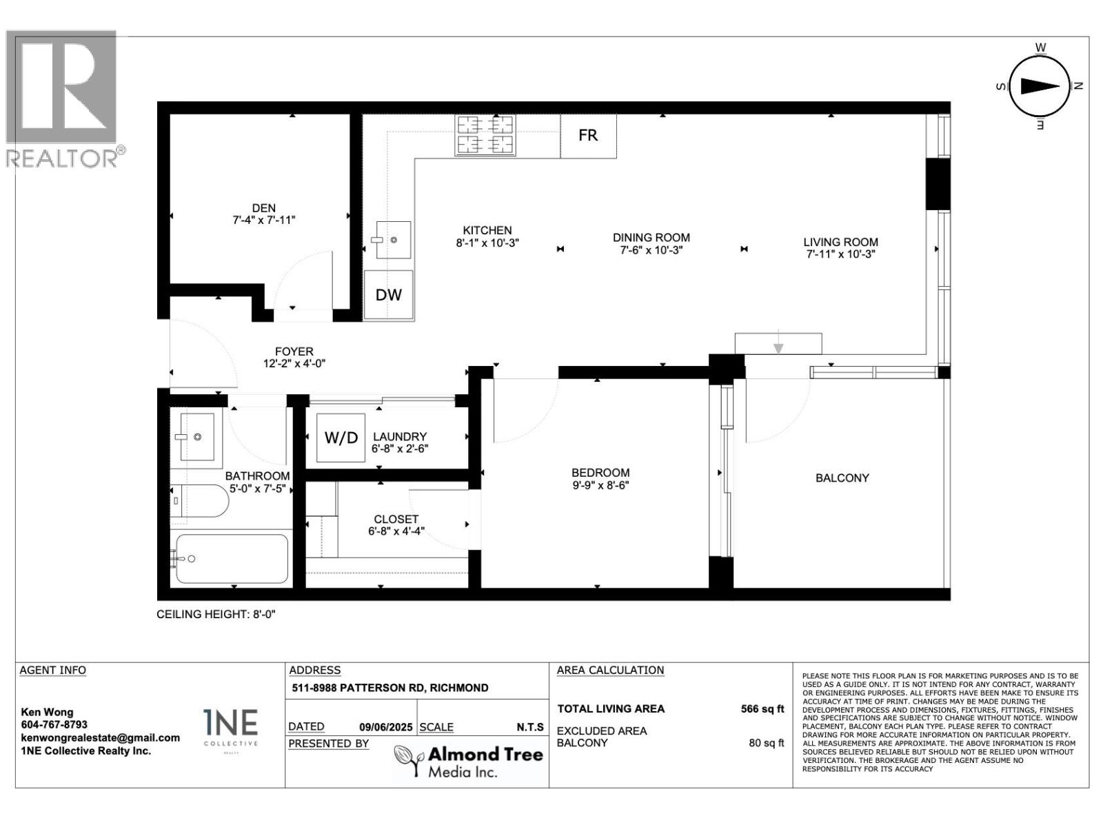 - Area 566 sq ft