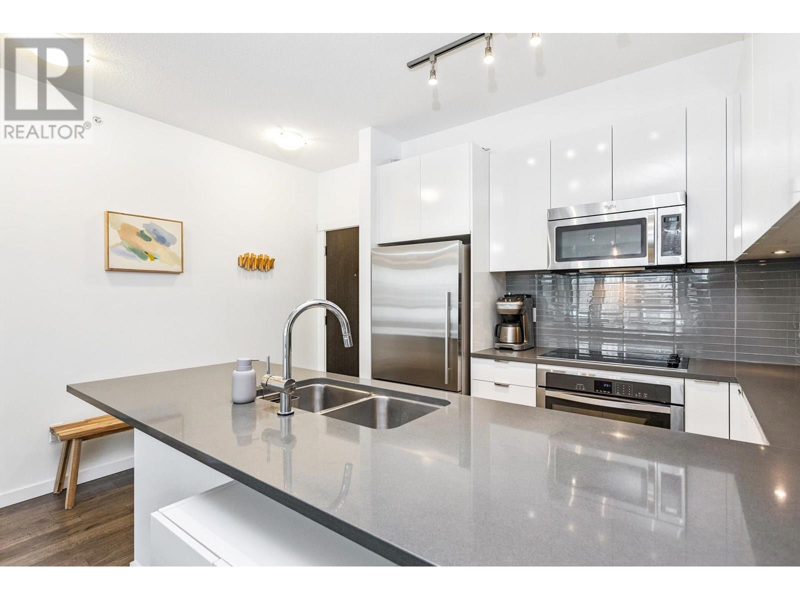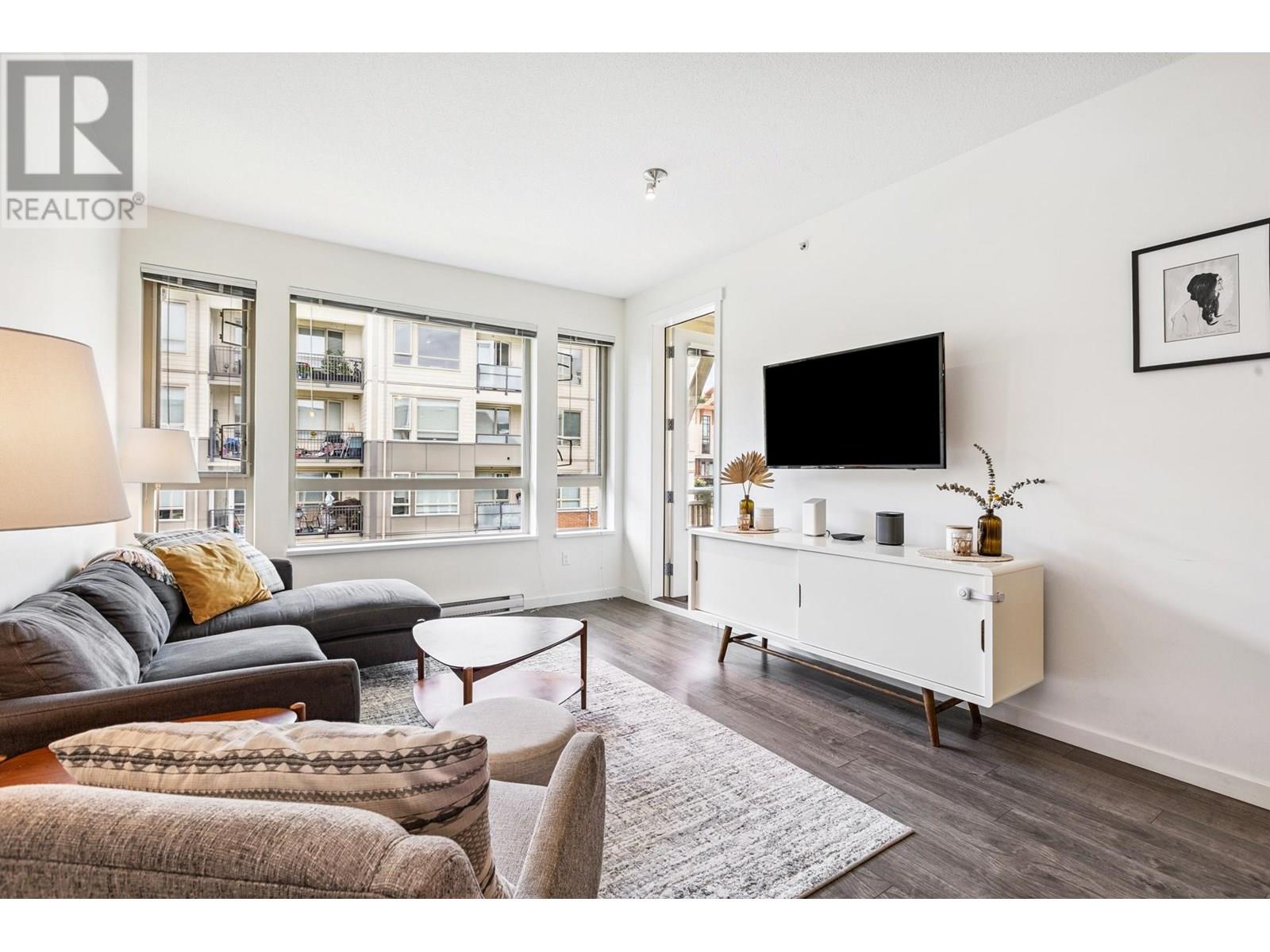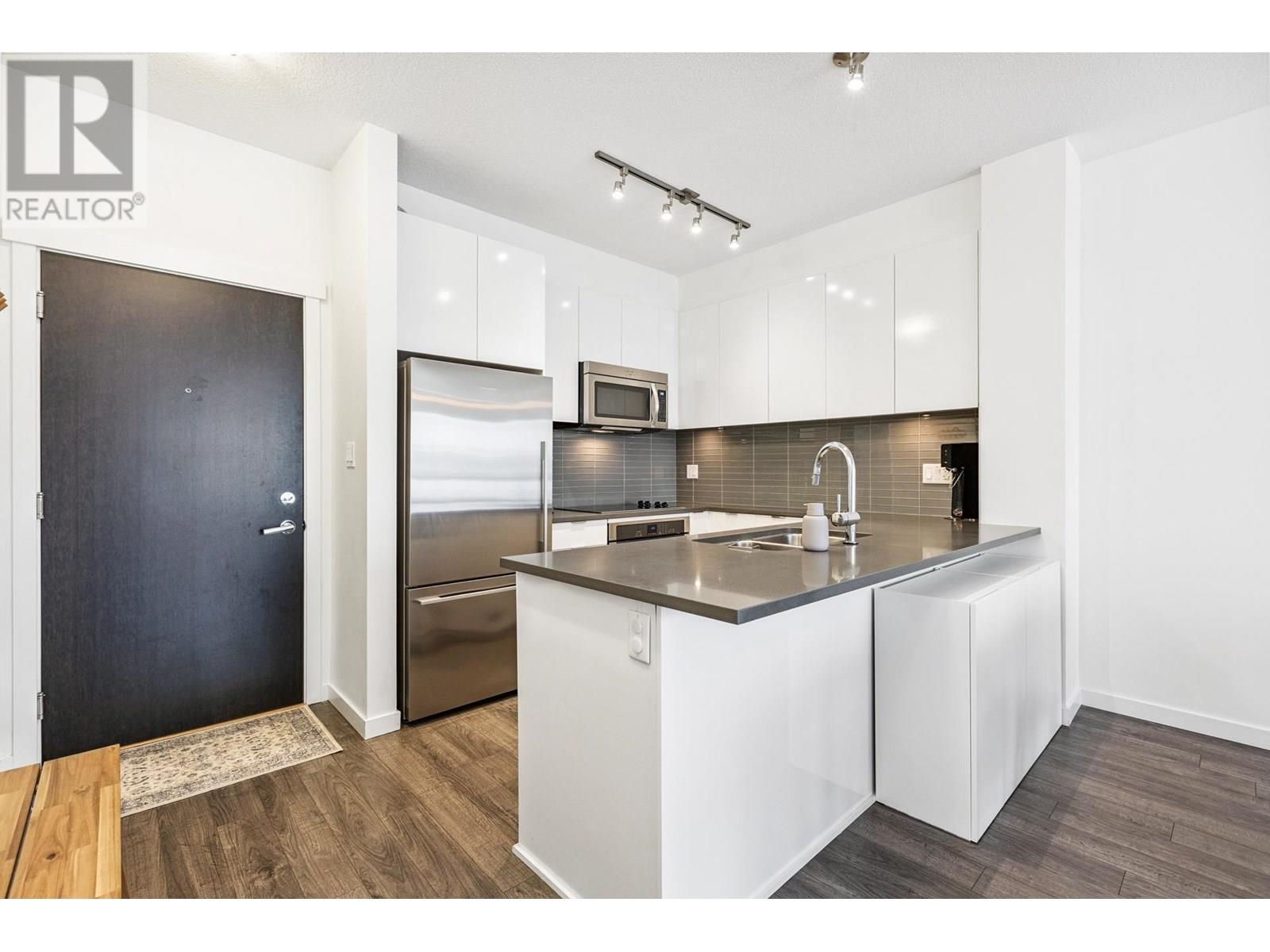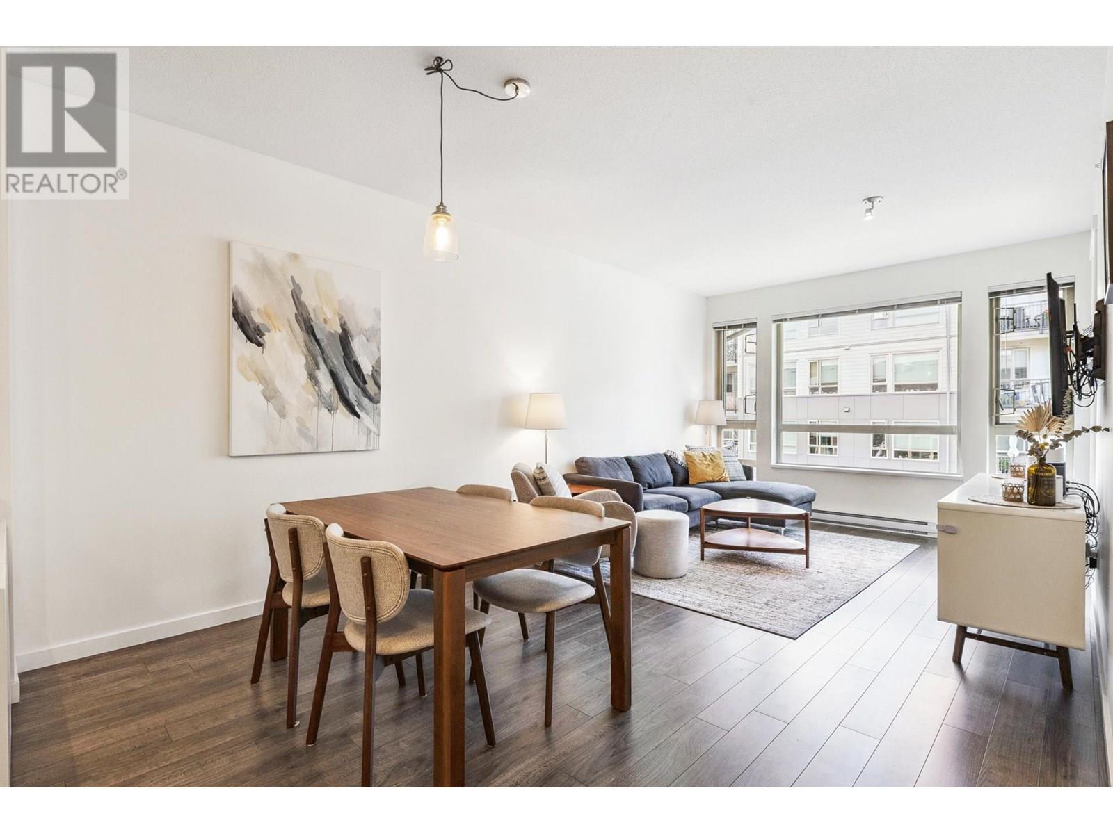 Top-floor 2-bed, 2-bath home in Canyon Springs, ideally located in the heart of Lynn Valley. This 838 sq/ft west-facing unit offers a bright, open layout with 9´ ceilings, spacious living/dining area, and large covered balcony-perfect for year-round BBQs. The modern kitchen features quartz counters, stainless appliances, ample storage, and peninsula with bar seating. The primary suite includes a walk-in closet and 4-piece ensuite with double sinks and glass shower. A second bedroom, 4-piece bath with tub, and in-suite laundry complete the space. Built by Polygon, the well-regarded building includes a gym, caretaker, secure parking, storage locker, and is pet-friendly. Steps to Lynn Valley Centre, Eastview Elem, Argyle Sec, parks, library, and transit; plus with quick access to Hwy 1. (id:48970) Show More