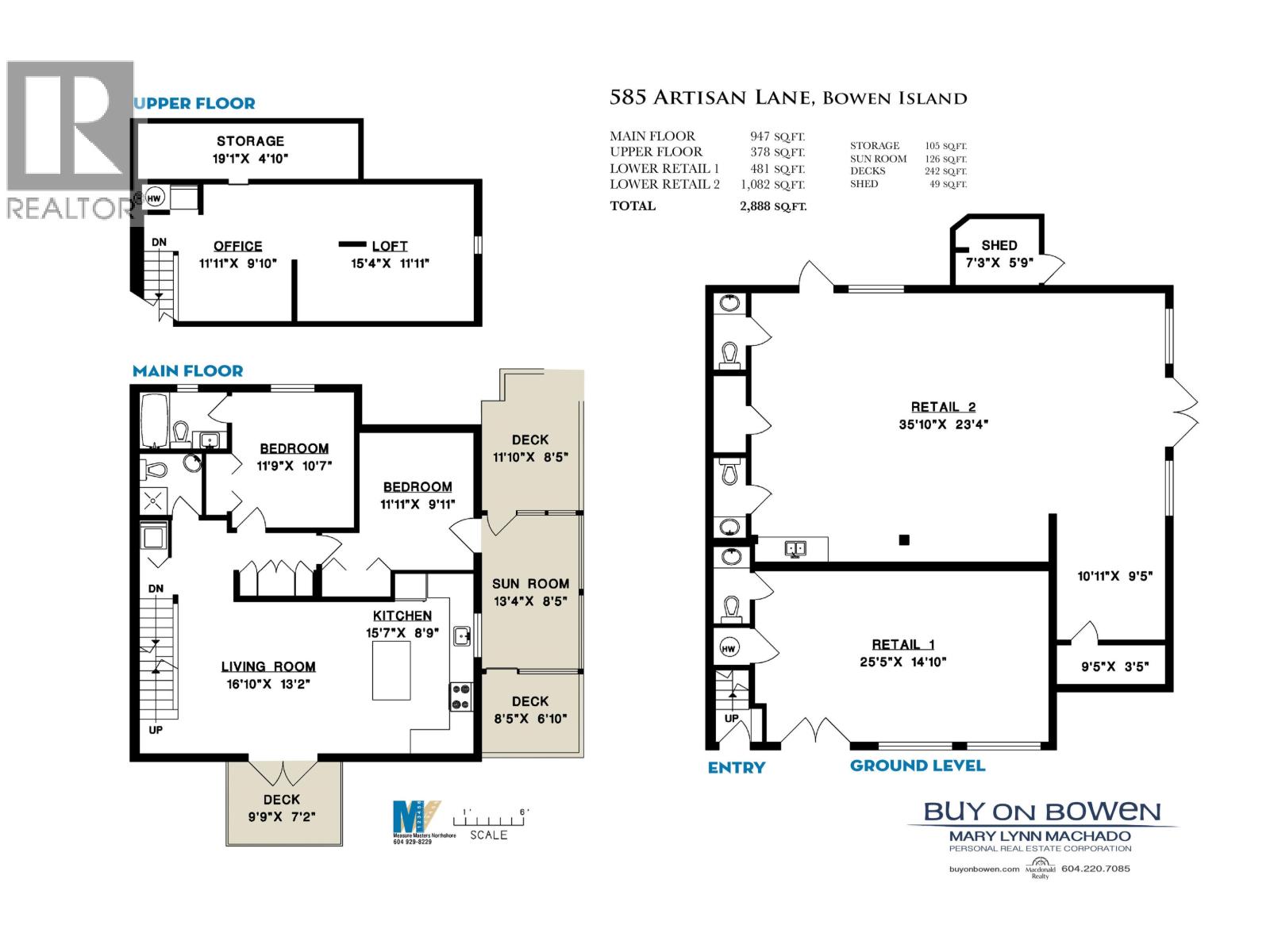 Artisan Square is a picturesque Bowen Island community of shops, galleries, wellness services, and small businesses. Several colourful low rise buildings combine commercial spaces with apartment-style homes. 585 Artisan Lane features a modern, renovated 2 BEDROOM, 2 BATHROOM TWO-LEVEL APARTMENT including a loft with skylights. There´s a small deck overlooking the square and a larger private deck on the west side with an enclosed sunroom. On the ground floor are 2 COMMERCIAL SPACES with long time tenants - Arts Pacific Gallery (481 sq.ft.), and Growing Space Montessori School (1082 sq.ft.). Updates to the apartment include new flooring, new kitchen, new bathrooms, new appliances, new gutters, and more. Flexible zoning regulations provide a variety of uses. Artisan Eats Café, Cocoa West Chocolatier, Sangre De Fruta Botanicals, and The Burrow Creativity Studio, are just some of the businesses that make their home in Artisan Square. (id:48970) Show More