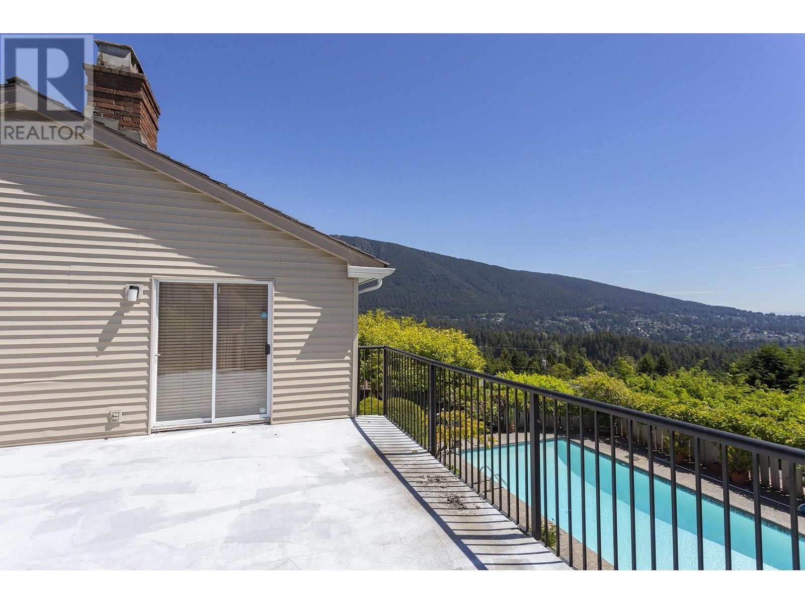 A RARE FIND! This traditional, over 3600 sf home set on a hedged .30 acre CORNER lot with a curved driveway is nestled in an exclusive enclave of Glenmore with VIEWS to the valley below, Mt. Baker & Grouse Mtn. It's South facing pool surrounded by wisteria, patios, & a mature garden provide a private, peaceful place to relax and entertain. This 5 bedroom family home with endless potential to renovate, features: a large deck off the Master, a huge Rec Room with fireplace, Sunken Living Room, Dining Room with views to a magnolia tree, Kitchen with centre island,Updated appliances solarium double garage. The bus stops in front with close access to Collingwood & Sentinel Capilano Golf Club, Hollyburn CC hiking and biking trails are nearby. Same owners for 49 years. Call your realtor to view! (id:48970) Show More