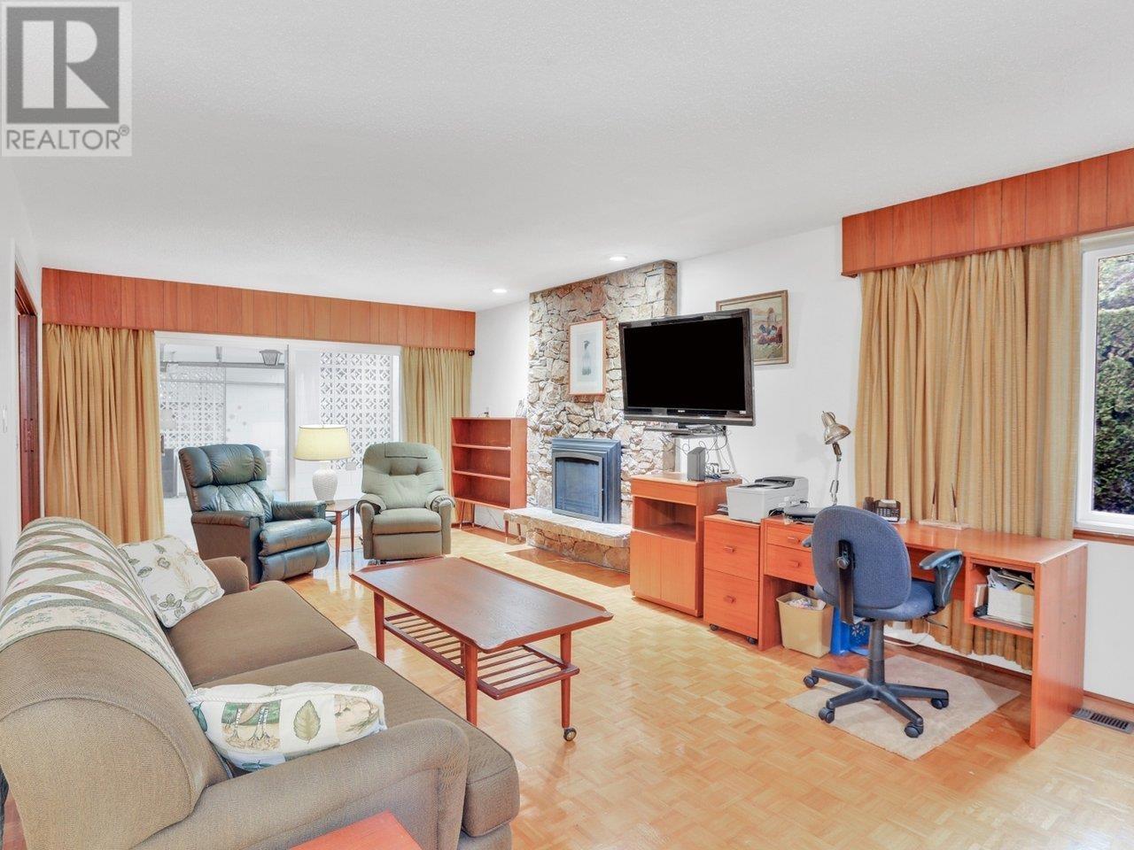 Located in the prestigious Dunbar/Southlands neighbourhood & situated on a 66W x 121.16D lot, this 4-bed/3-bath home offers a sleek, mid-century modern design. W/ 2-storeys + partial basement, this 3,685 sq.ft. residence has been meticulously maintained. Main level: family rm with gas FP & bar; powder rm; large living rm with FP; updated kitchen; & dining rm with large windows that welcome in natural light & overlook the patio & fully fenced yard with heated pool. Timeless original details throughout, including HW floors. Above: primary with double closets & ensuite; + 3 beds; secondary bath. Below: rec room with FP & flex room. Double carport. Close to excellent schools, amenities, parks, shops & services. (id:48970) Show More