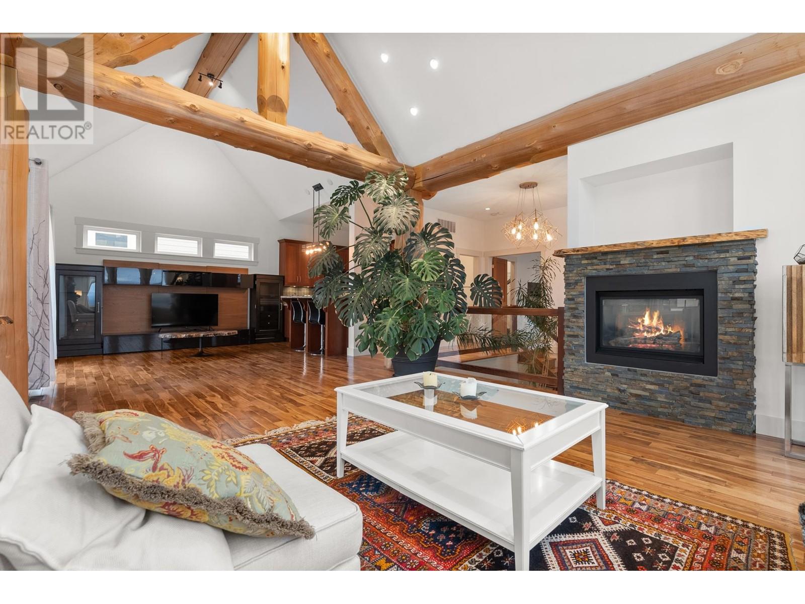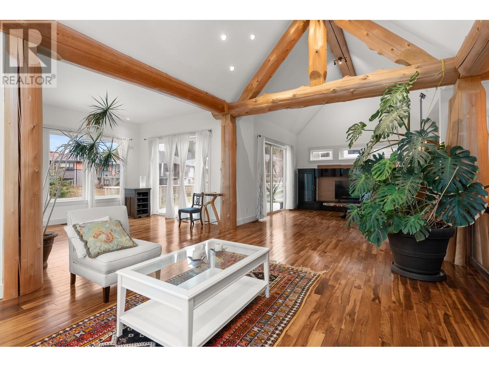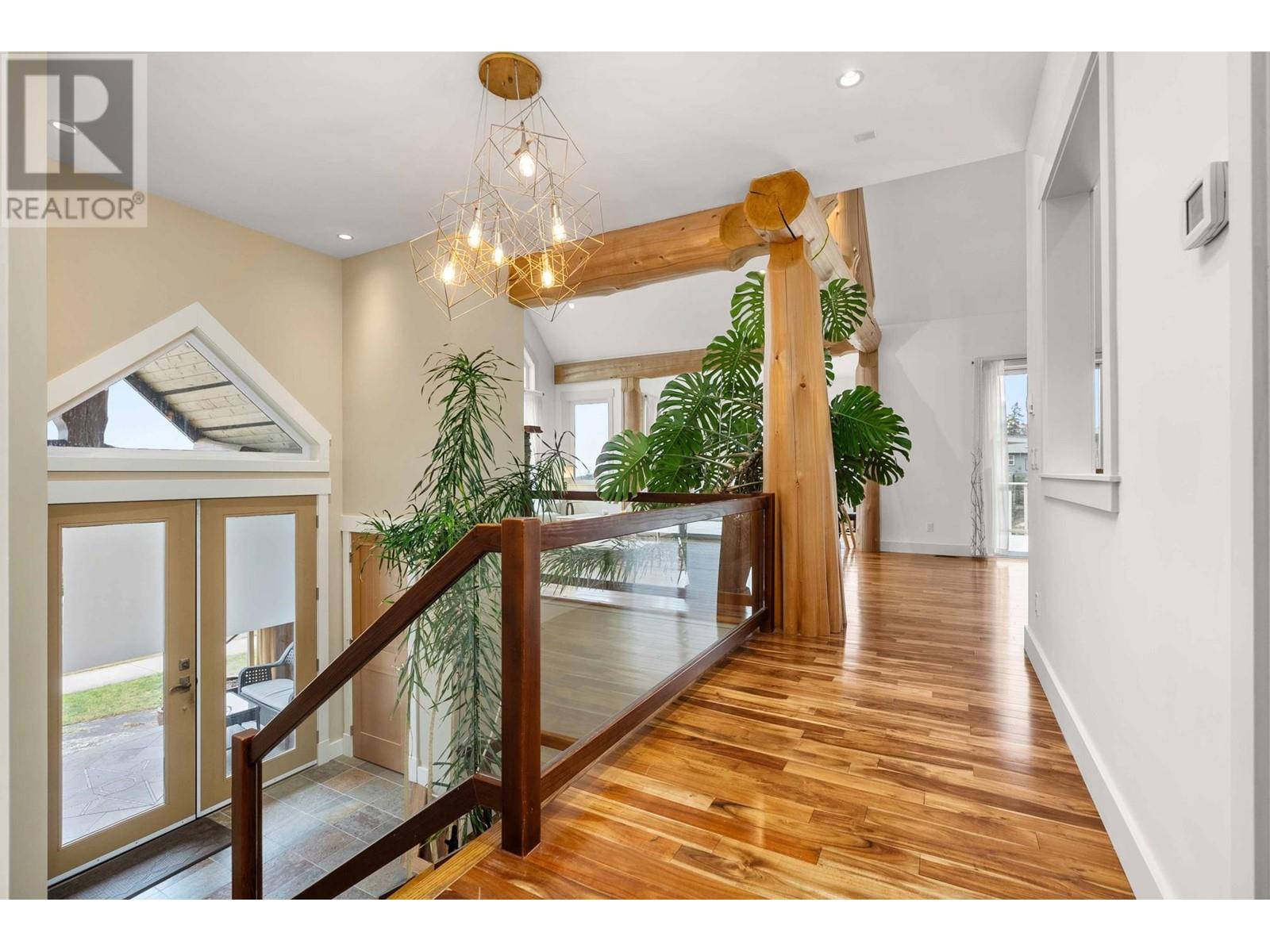 This West Coast timber-frame home in Trail Bay Estates offers breathtaking ocean and island views. Majestic log beams frame the exterior, while rich wood accents, granite counters, and slate tile create a warm, custom interior. The 3-bed, 4-bath layout includes a flex room ideal for teens and a legal suite with a Murphy bed. The kitchen features cherry cabinets, granite counters, and a pantry. The primary suite boasts a soaker tub, gas fireplace, huge walk-in closet, and ocean views. Soaring vaulted ceilings in the living and dining areas enhance the open-concept design. Relax on the 500+ sq. ft. deck with space for a hot tub. A laundry/mudroom is conveniently off the double garage. Mature landscaping adds curb appeal. Steps to downtown Sechelt! (id:48970) Show More
