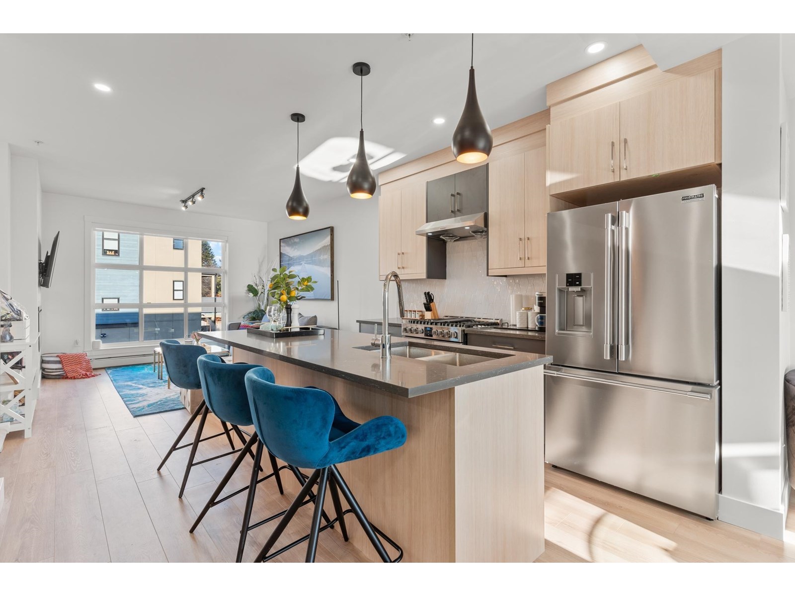Welcome to Magnolia Grove"”where modern design, comfort, and opportunity come together. This spacious 4-bedroom, 3.5-bathroom townhome offers a unique ground-level suite complete with a wet bar, full 3-piece bathroom, and a walkout patio that opens to a generous backyard"”perfect for in-laws, guests, a home office, or potential rental income. The open-concept main floor features soaring 9-foot ceilings that flood the space with natural light. The chef-inspired kitchen is outfitted with professional-grade stainless steel appliances, quartz countertops, and sleek undermount sinks, ideal for everyday living and entertaining. Enjoy comfort year-round with high-efficiency heating and hot water system, plus the option to add a split AC/heat pump. The garage is EV-ready and includes built-in storage closets. Located just steps to Chilliwack Middle & Secondary Schools, cafés, restaurants, shops, breweries, and public transit. A perfect blend of function and future potential! (id:48970) Show More