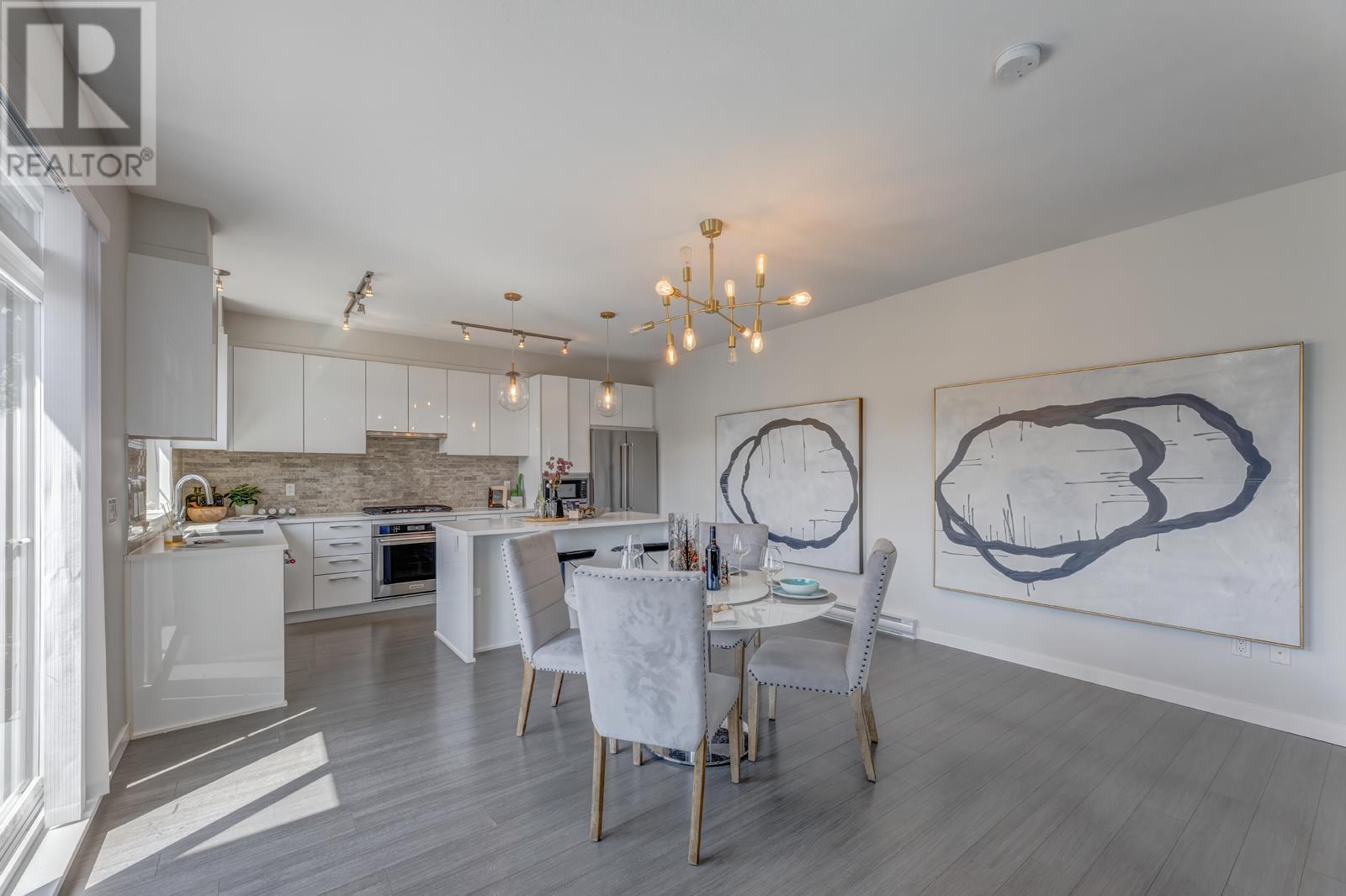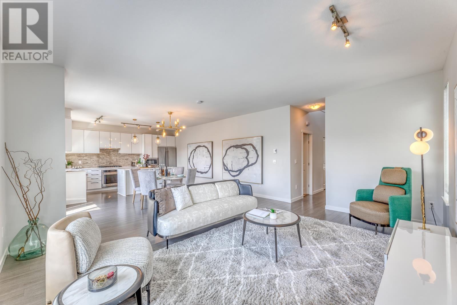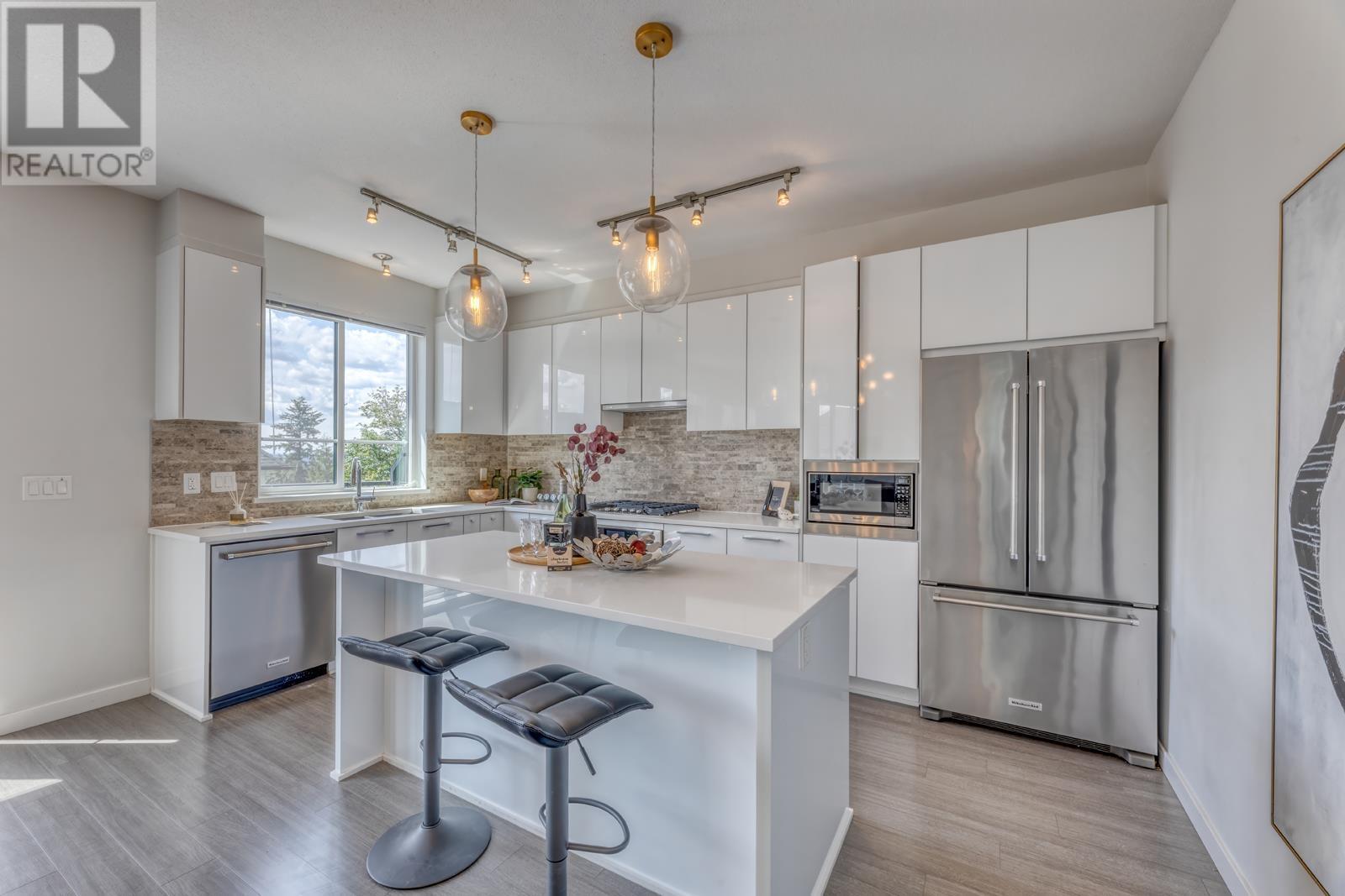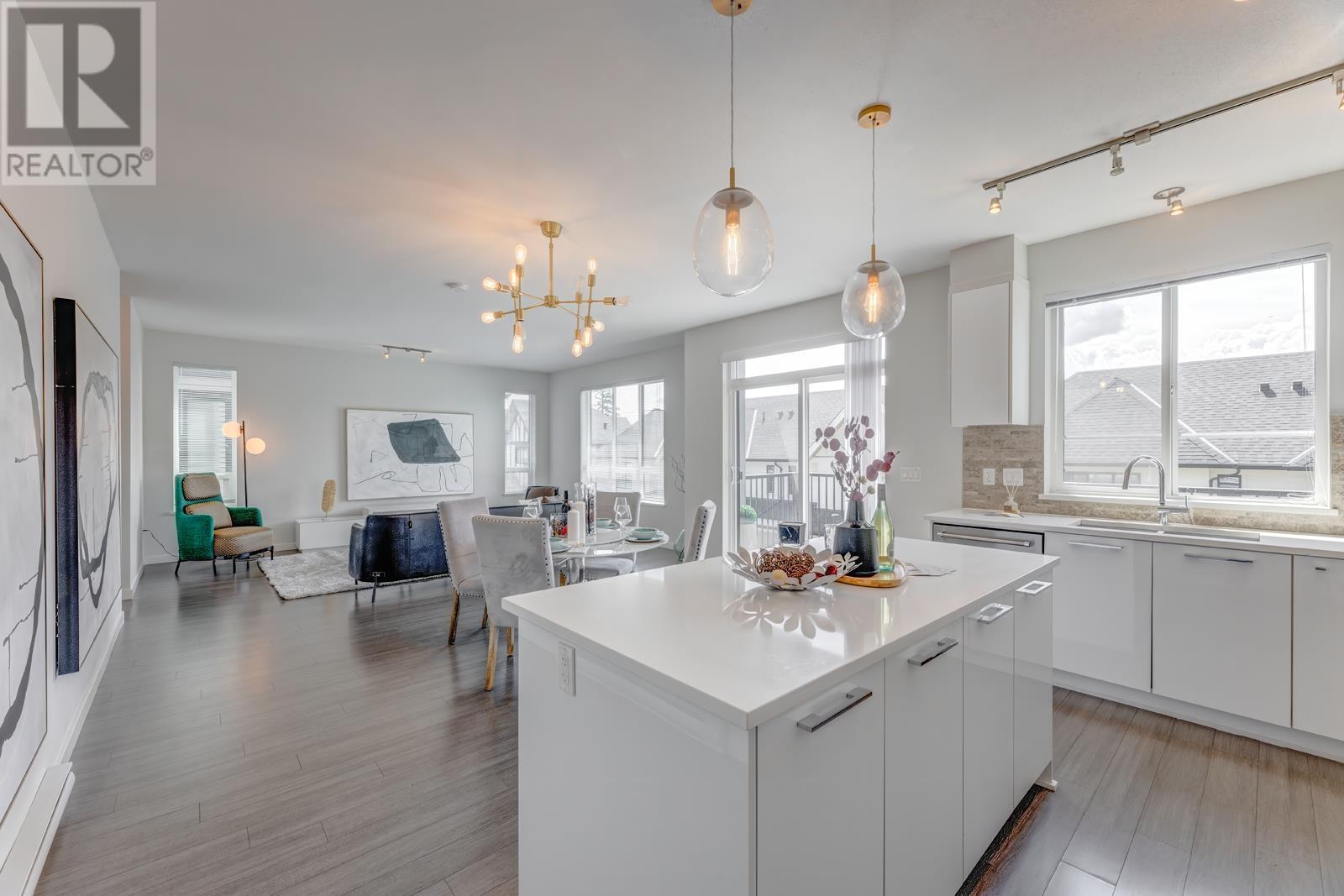 Kentwell by Polygon neighboring 3.5-acre Riley Park on Burke Mt! This duplex-style end unit offers airy open layout with generous living space and abundant sunlight. Main level offers gourmet kitchen with huge island, gas cooktop, quartz countertops and SS appliances. Seamless integration of dinning and living space with access to the South-facing balcony. Upstairs boasts a primary suite adorned with a spa-inspired 5pcs-ensuite featuring a frameless shower, double sink, and an indulgent soaker tub, plus gorgeous mountain view. Walk-out Basement presents a versatile rec room upgraded with brandnew laminate floor and full length yoga mirrors, the 4th bedroom with full bath and direct access to a fenced yard well maintaned by strata. (id:48970) Show More