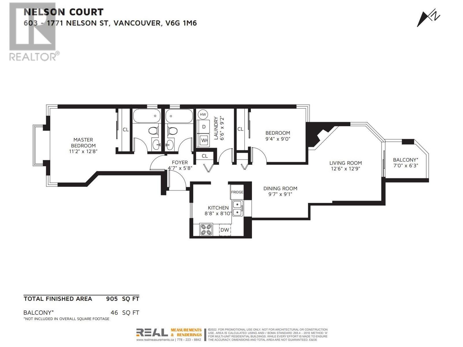 - Area 905 sq ft