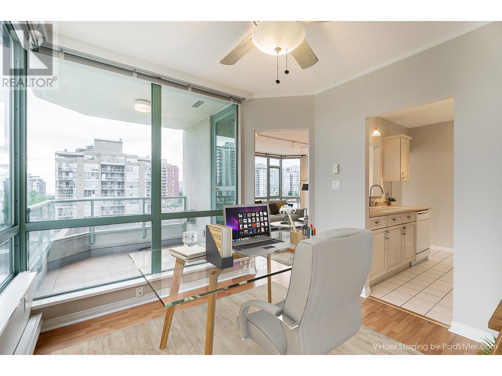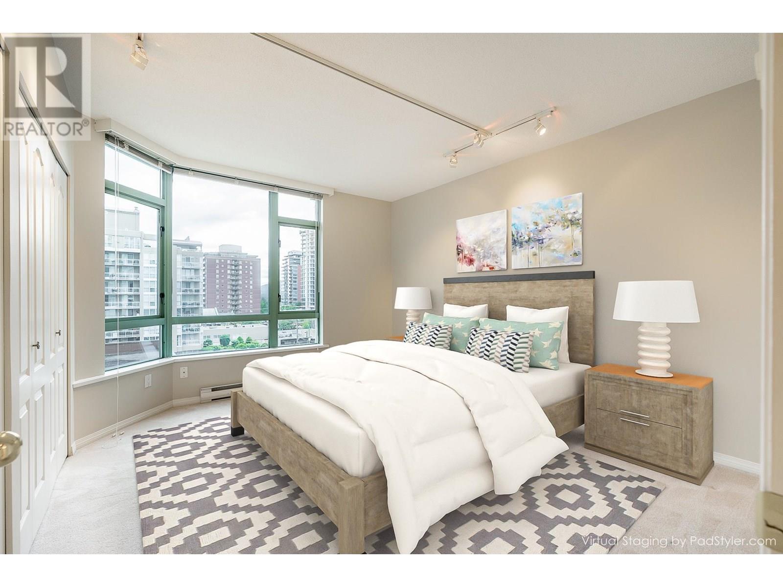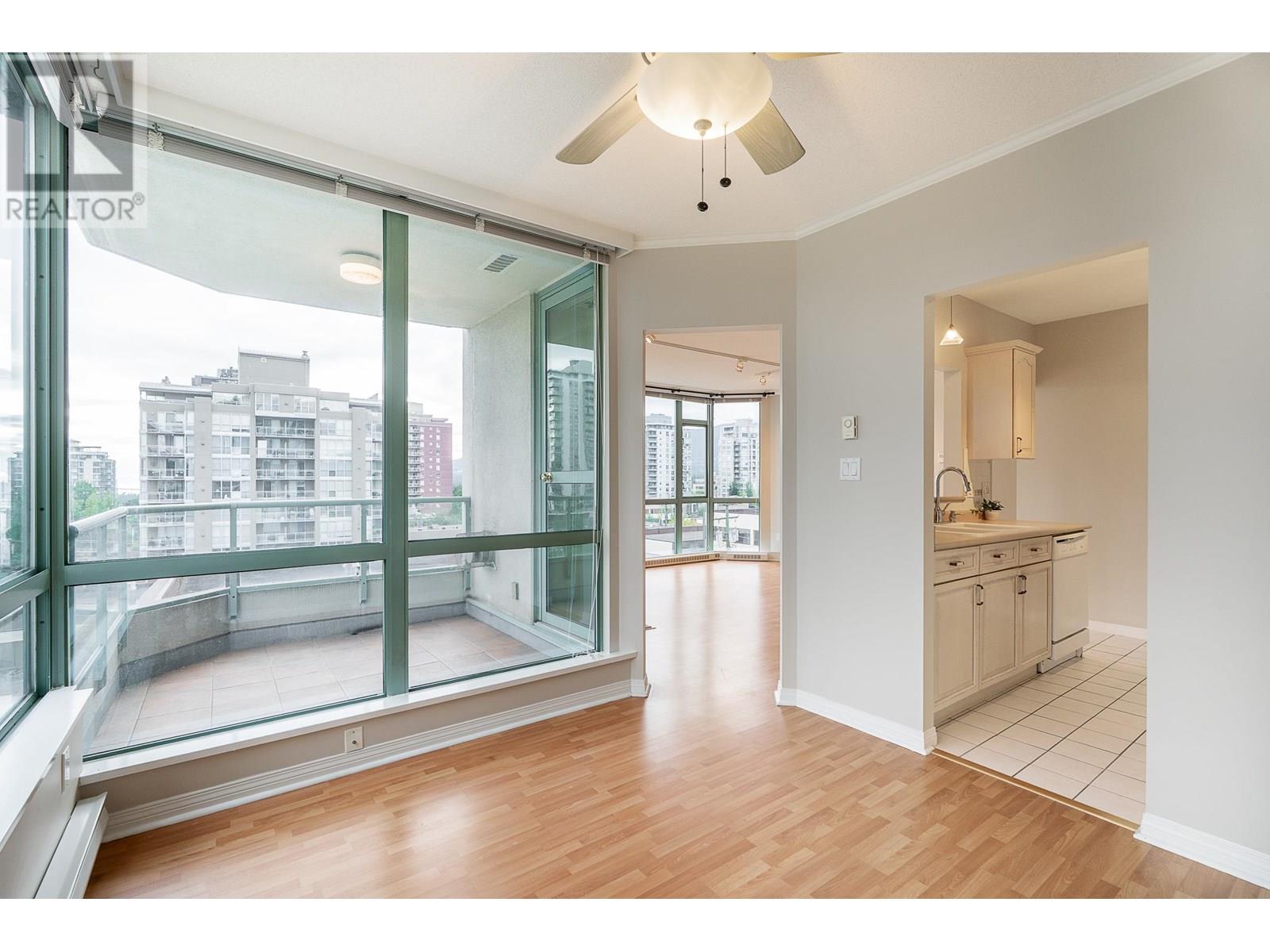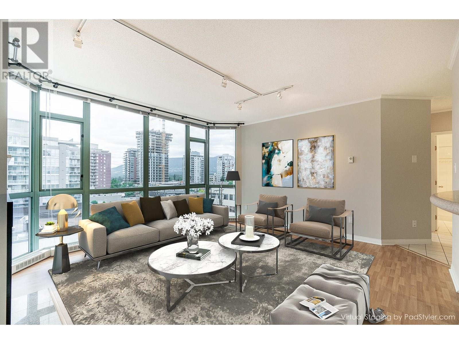 Spacious & bright corner suite at Springhill Place is in the heart of Central Lonsdale! This southwest generous sized 1-bed + den condo offers sweeping views of the city, mountain and some harbour. Situated close to all the amenities some just steps away like Whole Foods, shopping, restaurants, coffee shops, gyms and transit making it an ideal place to call home. It has a walking score of 94! Comes with parking, storage locker & in-suite laundry. The den is a fabulous room which can be used as a guest room, office or make it the dining room - if you'd like a more traditional separate dining space. Come take a look at this fabulous suite. *Some photos virtually staged. (id:48970) Show More
