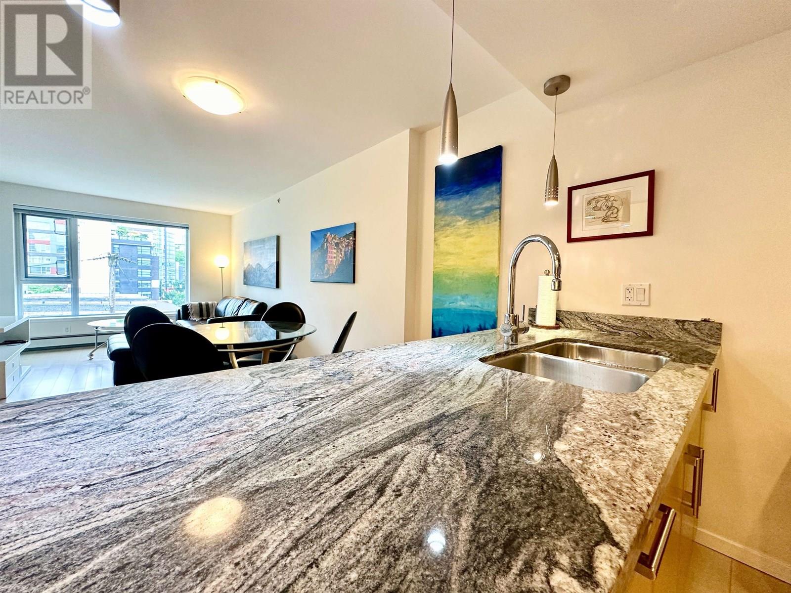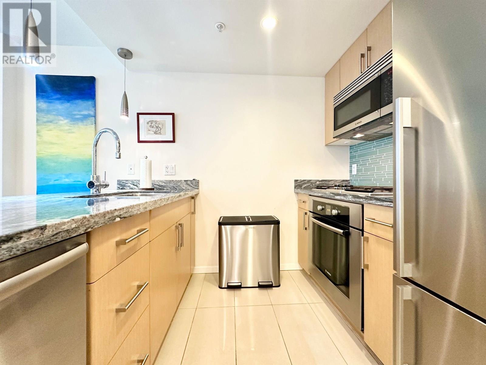 Discover the perfect urban retreat in this furnished condo located in the heart of Vancouver. Offering 605 square feet of well-designed living space, this one-bedroom, one-bathroom home is an ideal choice for those seeking both comfort and convenience. The condo's east-facing orientation ensures plenty of natural light throughout the day, illuminating the elegant tile flooring that runs throughout the space. The kitchen is equipped with stainless steel appliances and features a combination of marble and granite, stone, or quartz countertops, providing a stylish and functional area for cooking and entertaining. (id:48970) Show More