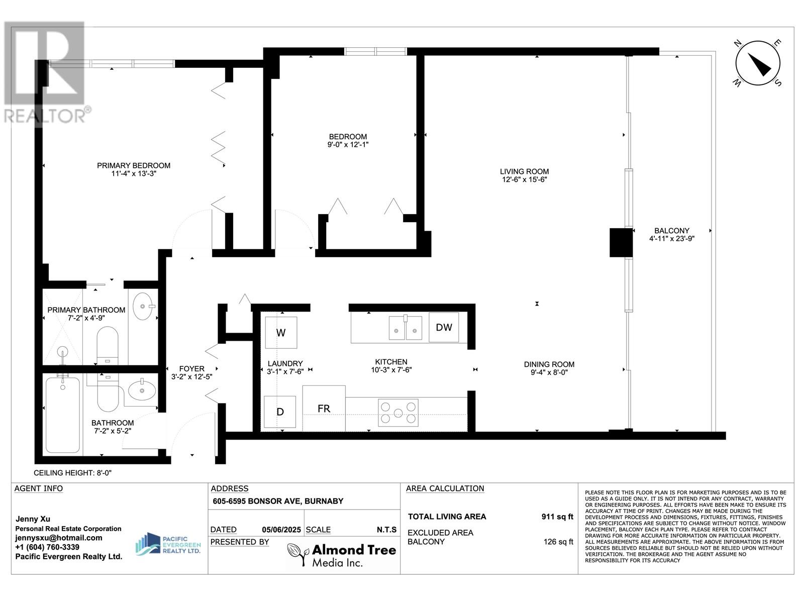 - Area 911 sq ft