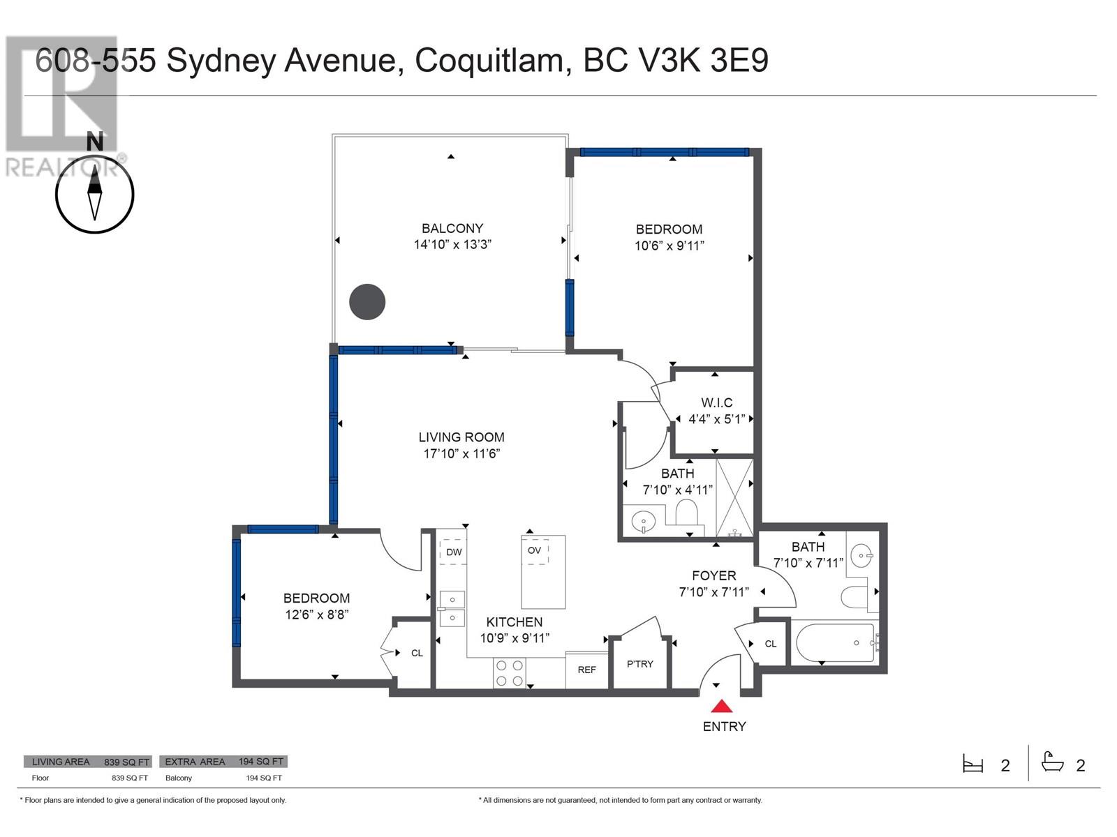 - Area 839 sq ft