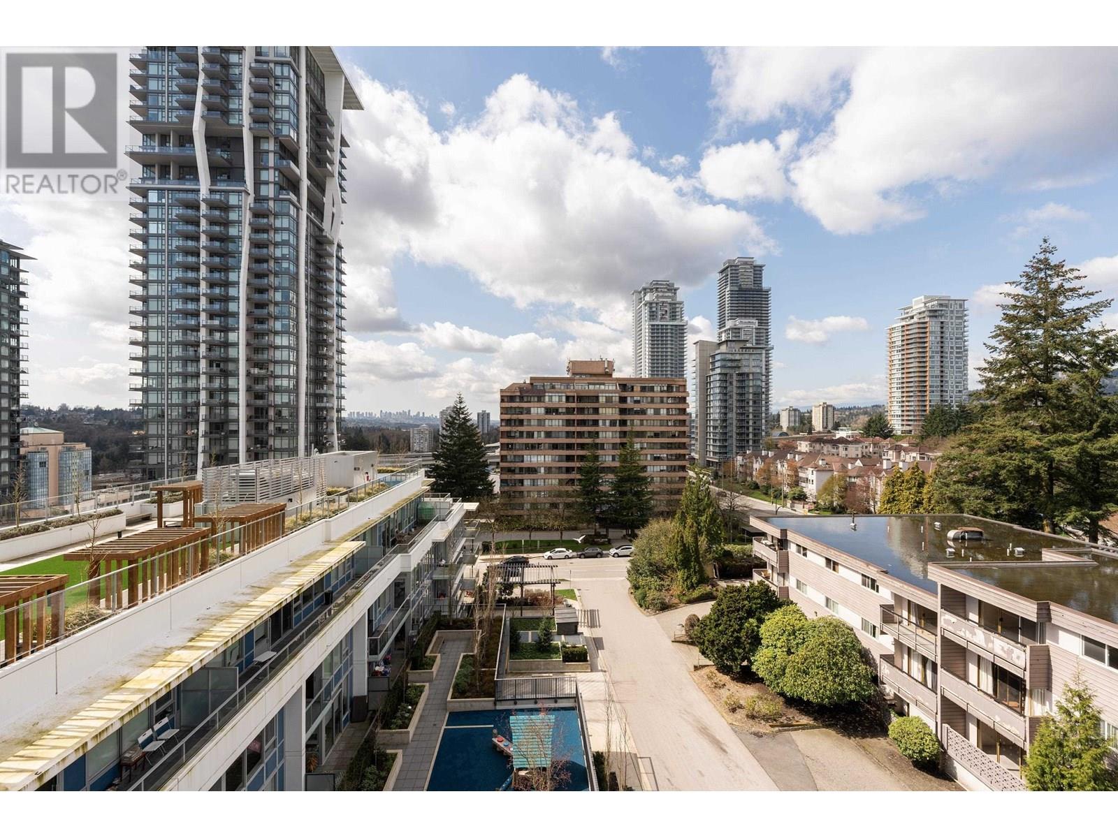 Welcome to SYDNEY! This Corner Unit by Ledingham McAllister in a concrete high-rise features an open-concept kitchen and living area with 9ft ceilings, floor-to-ceiling windows, and a balcony with a 270° panoramic view of the city and amenities open area. The unit offers two elegant bathrooms, a stainless appliance package with gas cooktop and front-loading W/D (2-5-10 Warranty), plus a wheelchair-accessible floor plan with generous halls and doorways. Enjoy amenities like a fitness centre, yoga room, fireside lounge, meeting room, games room, guest suites, and a landscaped terrace with cabanas. Located in a quiet neighbourhood, just blocks from SkyTrain and Lougheed Mall. ASSUME MORTGAGE @ 2.64% TILL JAN 2028 (id:48970) Show More