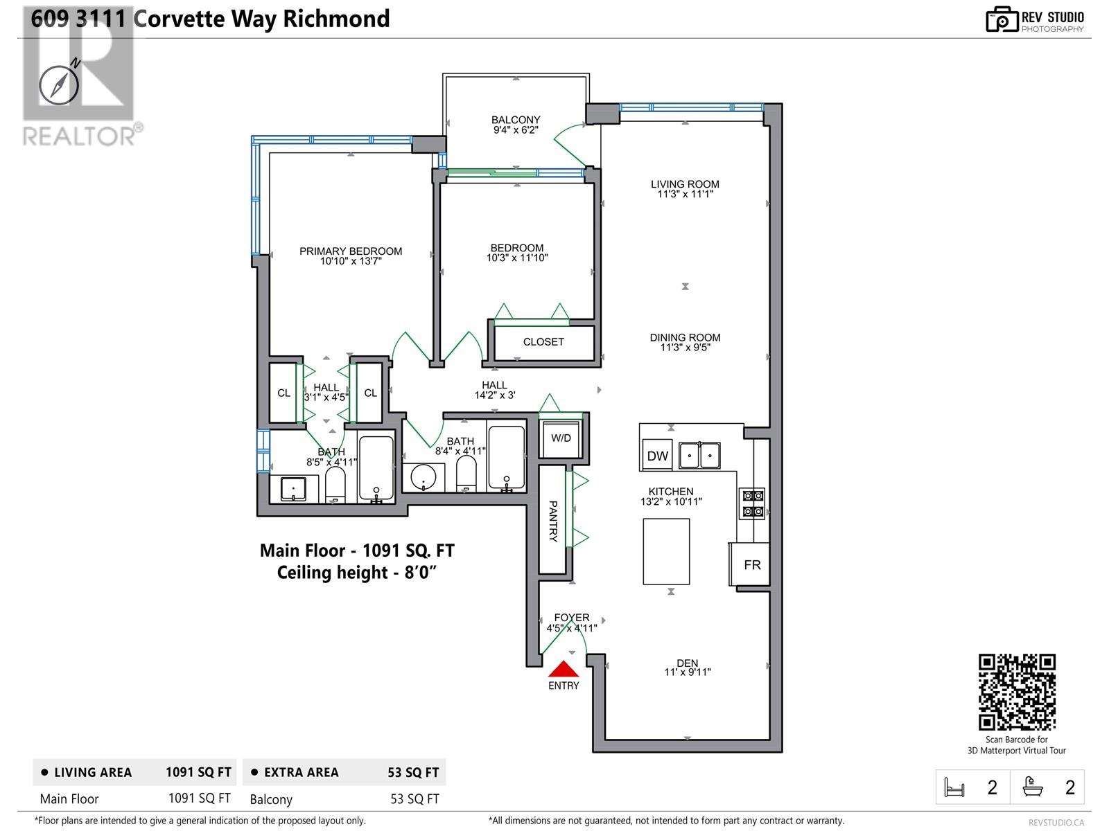 - Area 1091 sq ft