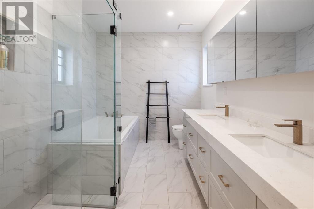 Meticulously renovated w no expenses spared, this stunning hm feat a beautifully updated Heritage exterior paired w a contemporary interior, showcasing cutting-edge technology & premium finishes. The main flr boasts rare 10ft ceilings, providing generous space for family gatherings, entertaining, & a dedicated work-frm-hm setup. Exceptional details incld matte black triple-paned windows, engineered hardwood flrs, energy-efficient features, gorgeous chef inspired kitchen w Italian-imported kitch hardware, & chic modern lighting, along w top-of-the-line Gaggenau & Forno appliances. The spa-like Master bath is a true retreat, w floor-to-ceiling tiles, heated flrs, a extra large soaker tub, & a separate frameless glass shower. Exterior upgrades include a new roof, siding, & drain tiles. Step outside to a beautifully covered all-cedar deck, perfect for year-round enjoyment, & a landscaped backyard. The hm also offers a fully renovated, legal 2-bedroom basement. (id:48970) Show More