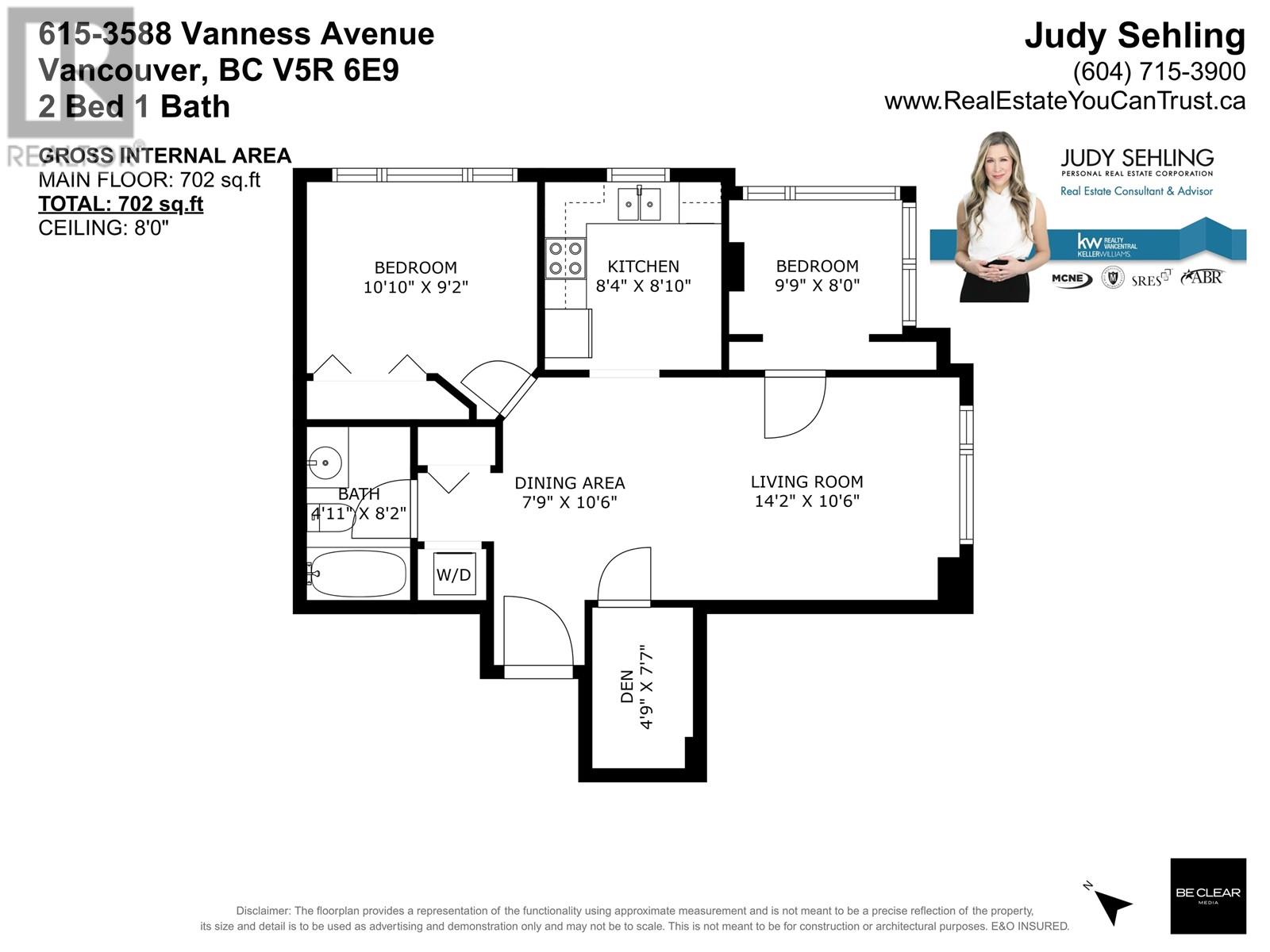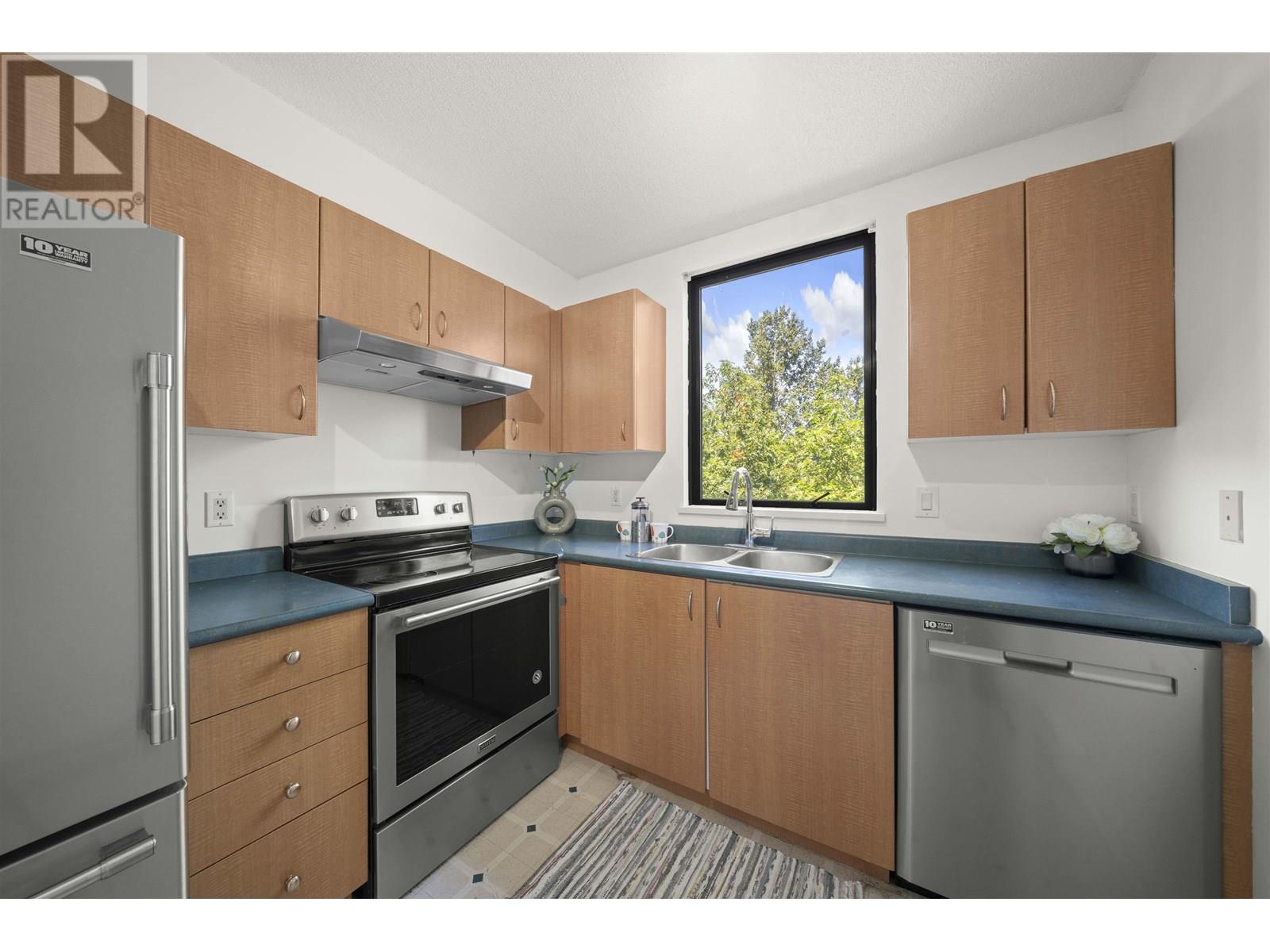 Bright and spacious TOP-FLOOR CORNER unit in the heart of Collingwood! This 2-bedroom + den home features large windows with lovely views, fresh paint, and updated laminate flooring. The versatile den is perfect for a home office, nursery, or extra storage. Enjoy the convenience of in-suite laundry, secure underground parking, and fantastic building amenities-including one of the largest, best-equipped gyms you´ll find in any strata, multiple bike rooms, and a welcoming community. Just a 3-minute walk to Joyce SkyTrain Station, nearby parks, tennis and basketball courts, local restaurants, cafes, and only minutes to Metrotown for shopping and entertainment. One pet allowed-an ideal home for first-time buyers, downsizers, or investors alike! (id:48970) Show More
