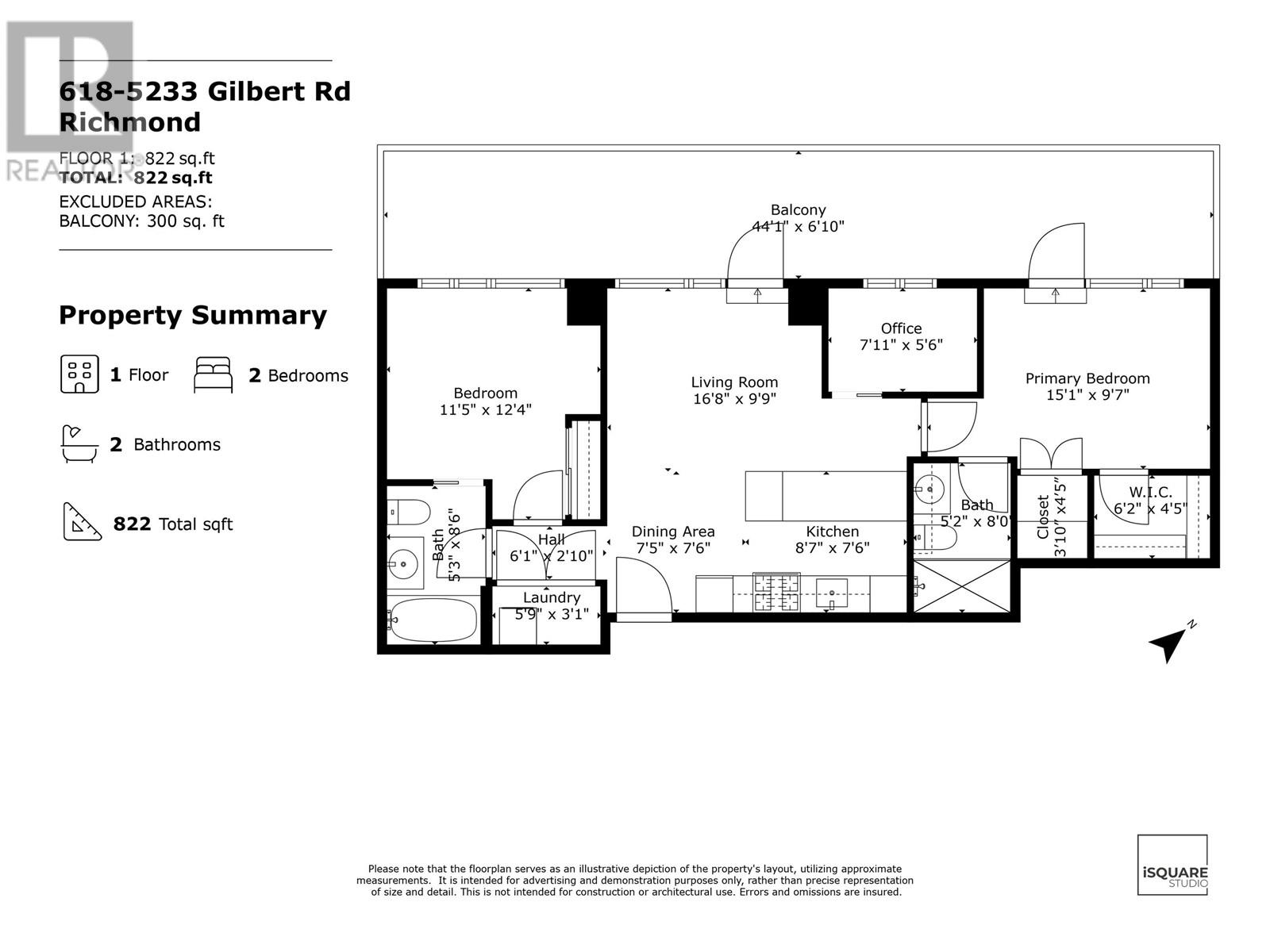 - Area 822 sq ft