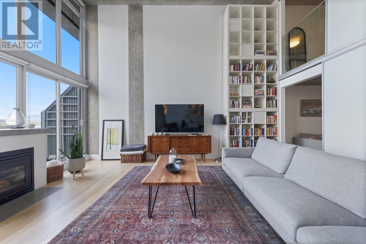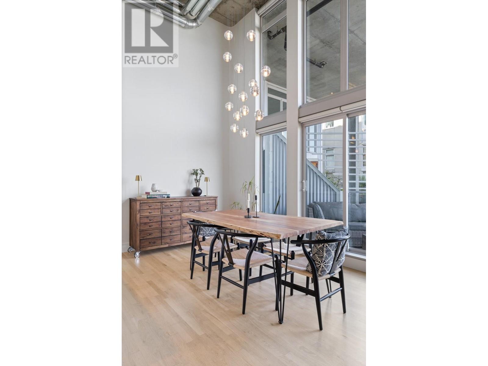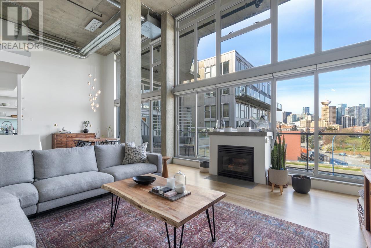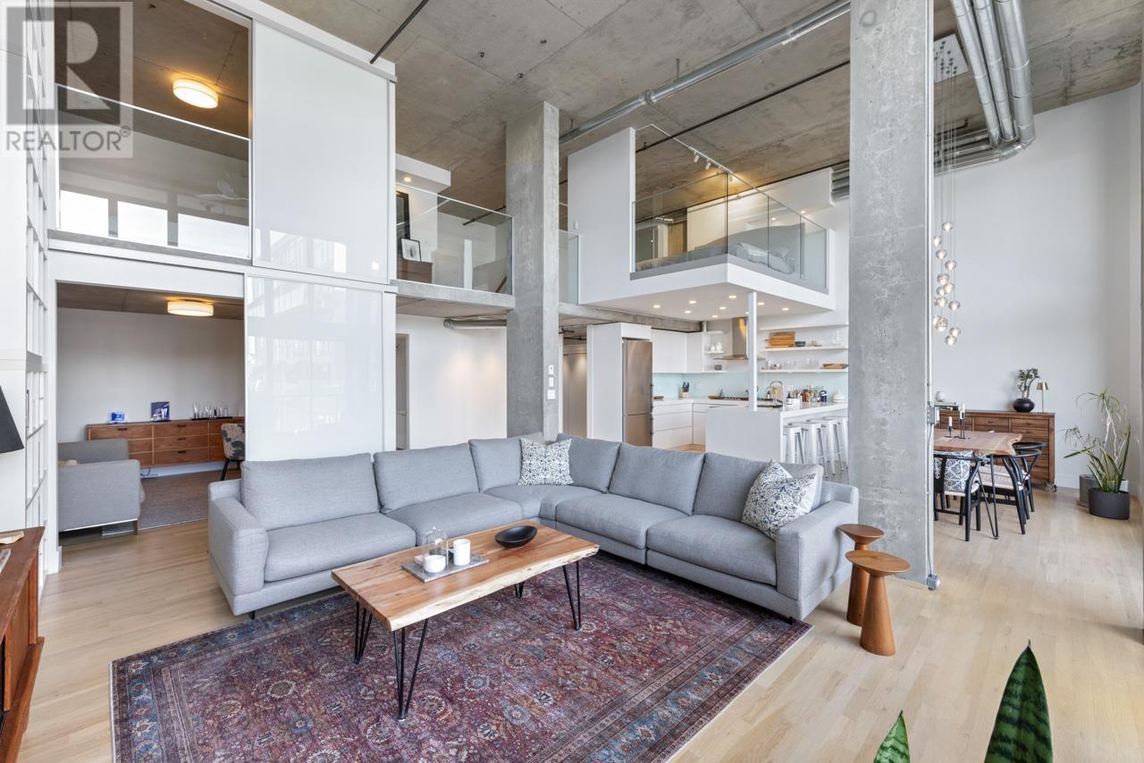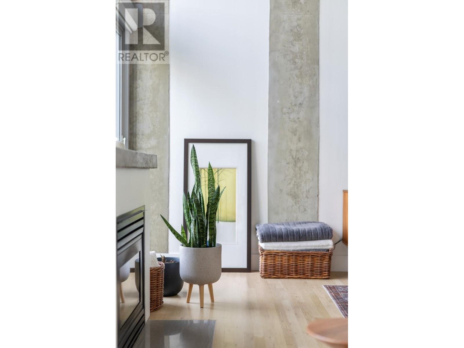 This expansive loft features nearly 16´ ceilings, floor-to-ceiling windows, stunning west-facing views of the city, harbour, Canada Place, and mountains. Renovated kitchen features Corian countertops, and high-end appliances: Liebherr fridge, Fisher & Paykel oven, Bosch stovetop & DW. Polished concrete upstairs and hardwood down, add modern contrast and warmth. Two level living with 2 bed + a flex space up and a den/bedroom on the main. Both baths are tastefully updated. Extras include: gas fireplace, automated blinds, glass panel railings. Serenity while living on the edge of Railtown, one of the most culturally diverse neighbourhoods in Vancouver. Wander through Gastown's furniture/design shops, and enjoy easy access to restaurants, and historical landmarks. Common area includes a gym, multi-purpose room, metal shop, woodworking shop, pottery studio with kiln, photography lab & music room. EV parking in personal parking spot. Call to view. (id:48970) Show More