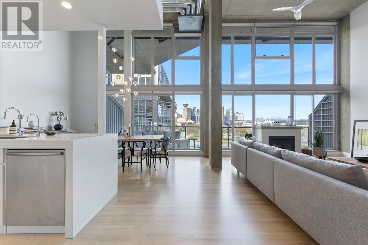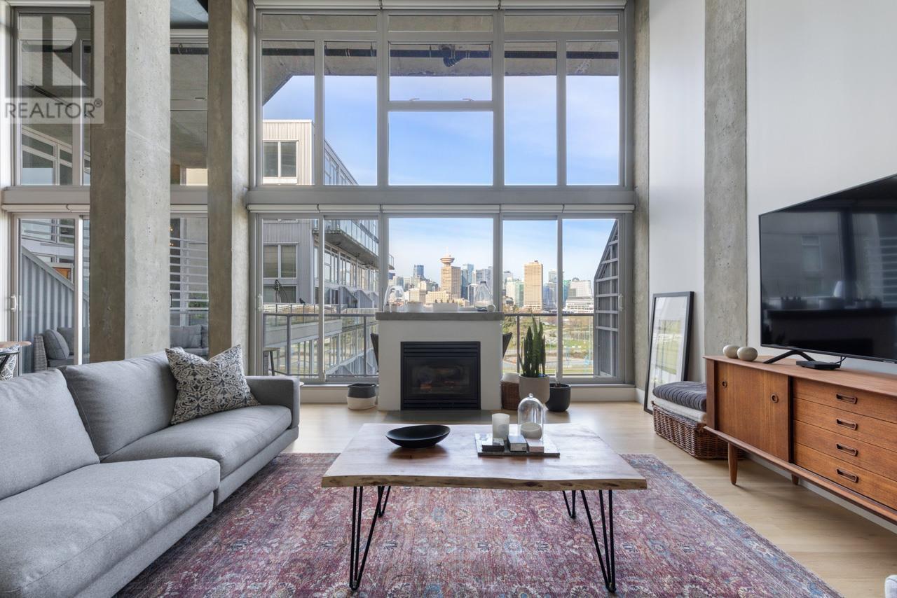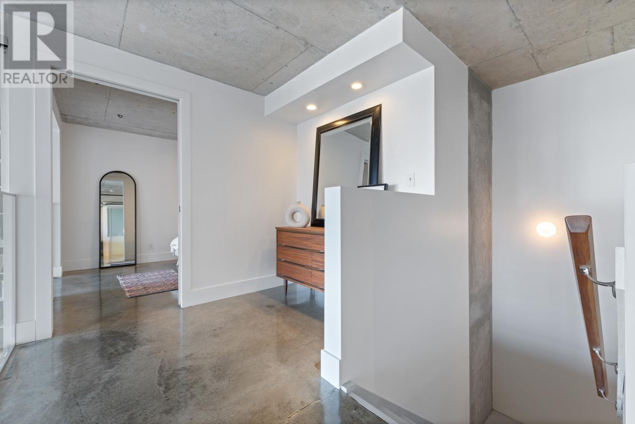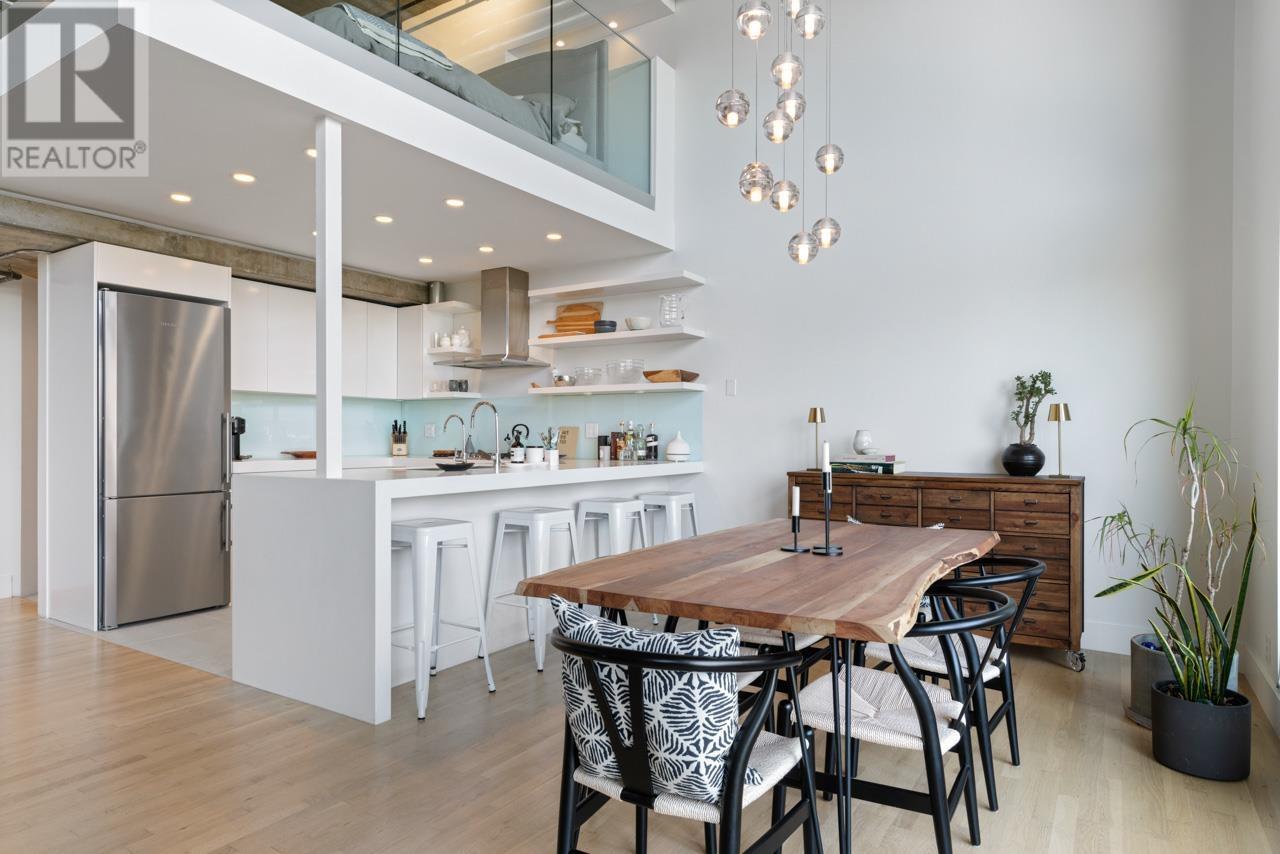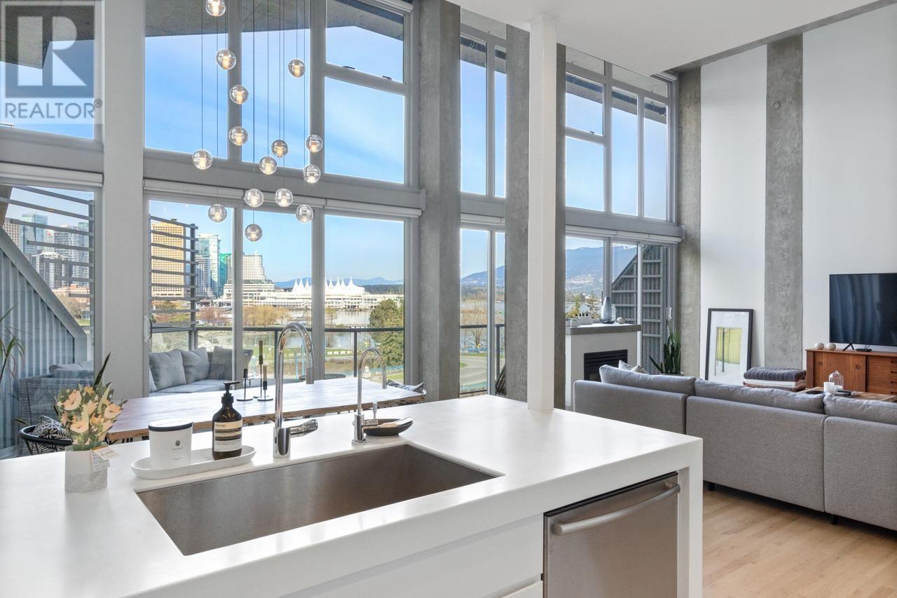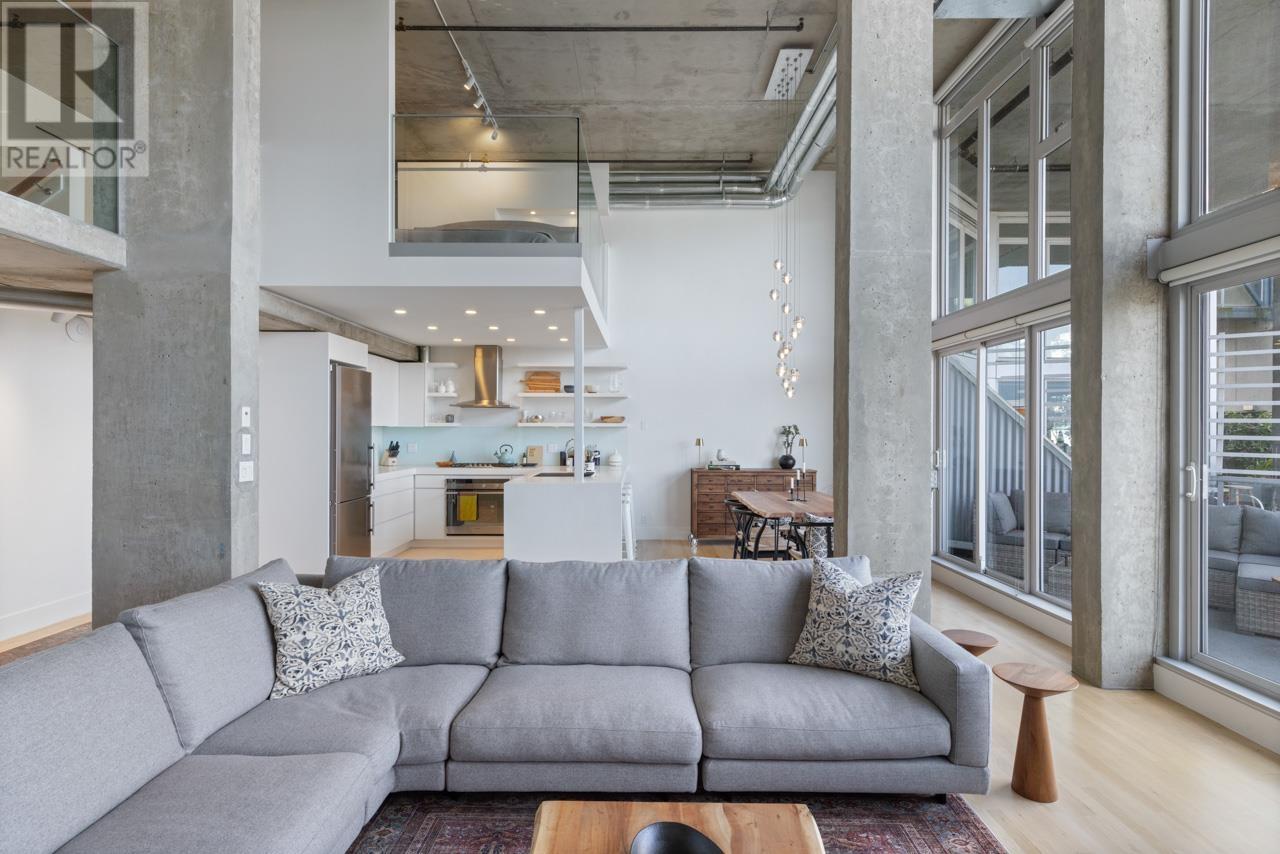 This expansive loft features nearly 16´ ceilings, floor-to-ceiling windows, stunning west-facing views of the city, harbour, Canada Place, and mountains. Renovated kitchen features Corian countertops, and high-end appliances: Liebherr fridge, Fisher & Paykel oven, Bosch stovetop & DW. Polished concrete upstairs and hardwood down, add modern contrast and warmth. Two level living with 2 bed + a flex space up and a den/bedroom on the main. Both baths are tastefully updated. Extras include: gas fireplace, automated blinds, glass panel railings. Serenity while living on the edge of Railtown, one of the most culturally diverse neighbourhoods in Vancouver. Wander through Gastown's furniture/design shops, and enjoy easy access to restaurants, and historical landmarks. Common area includes a gym, multi-purpose room, metal shop, woodworking shop, pottery studio with kiln, photography lab & music room. EV parking in personal parking spot. Call to view. (id:48970) Show More