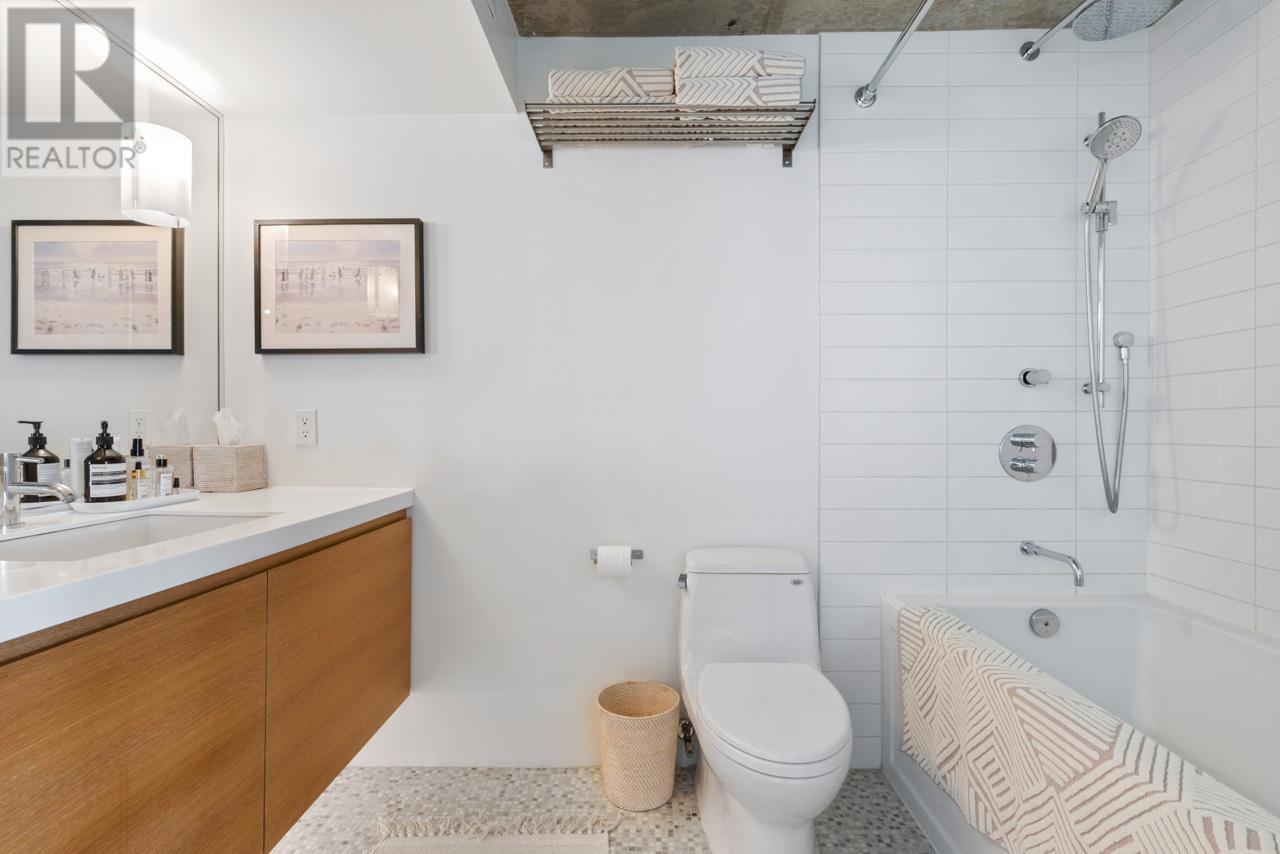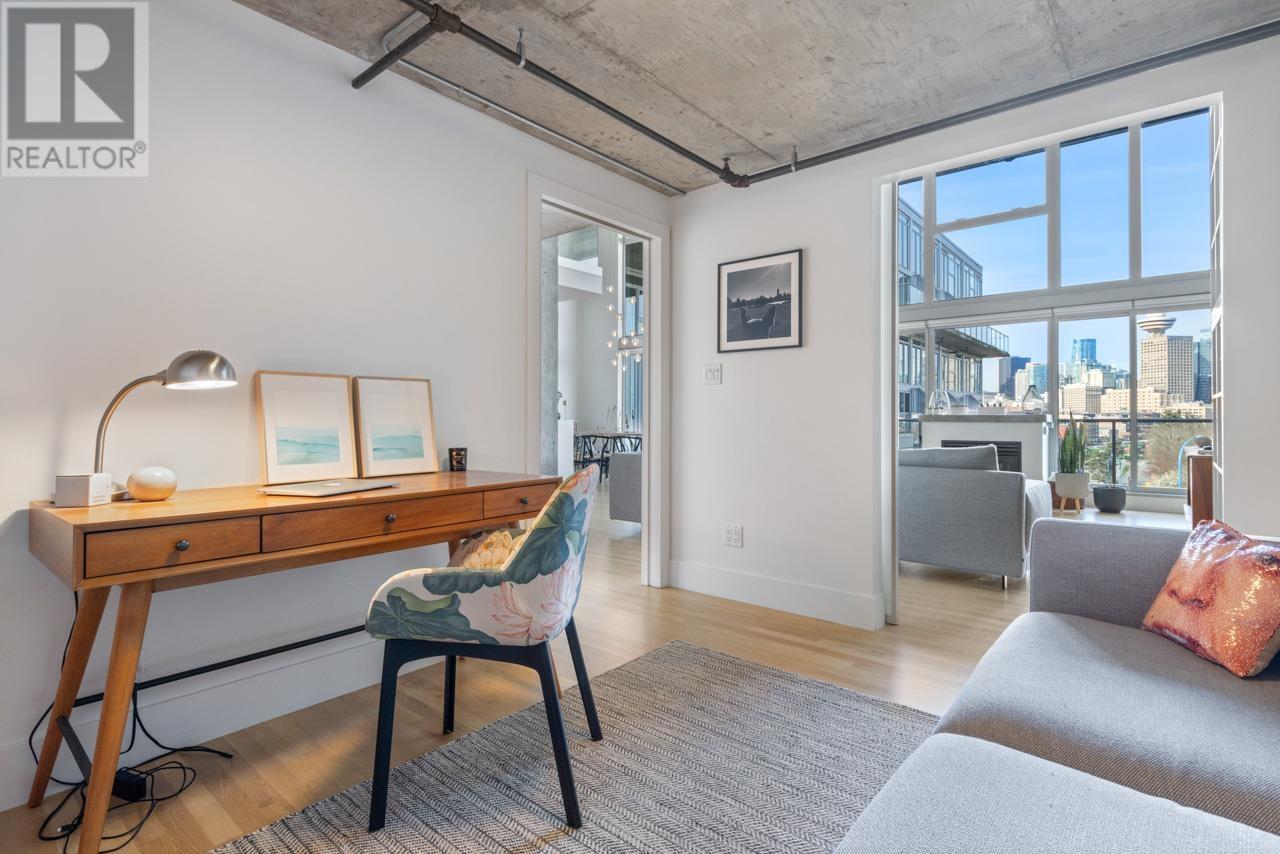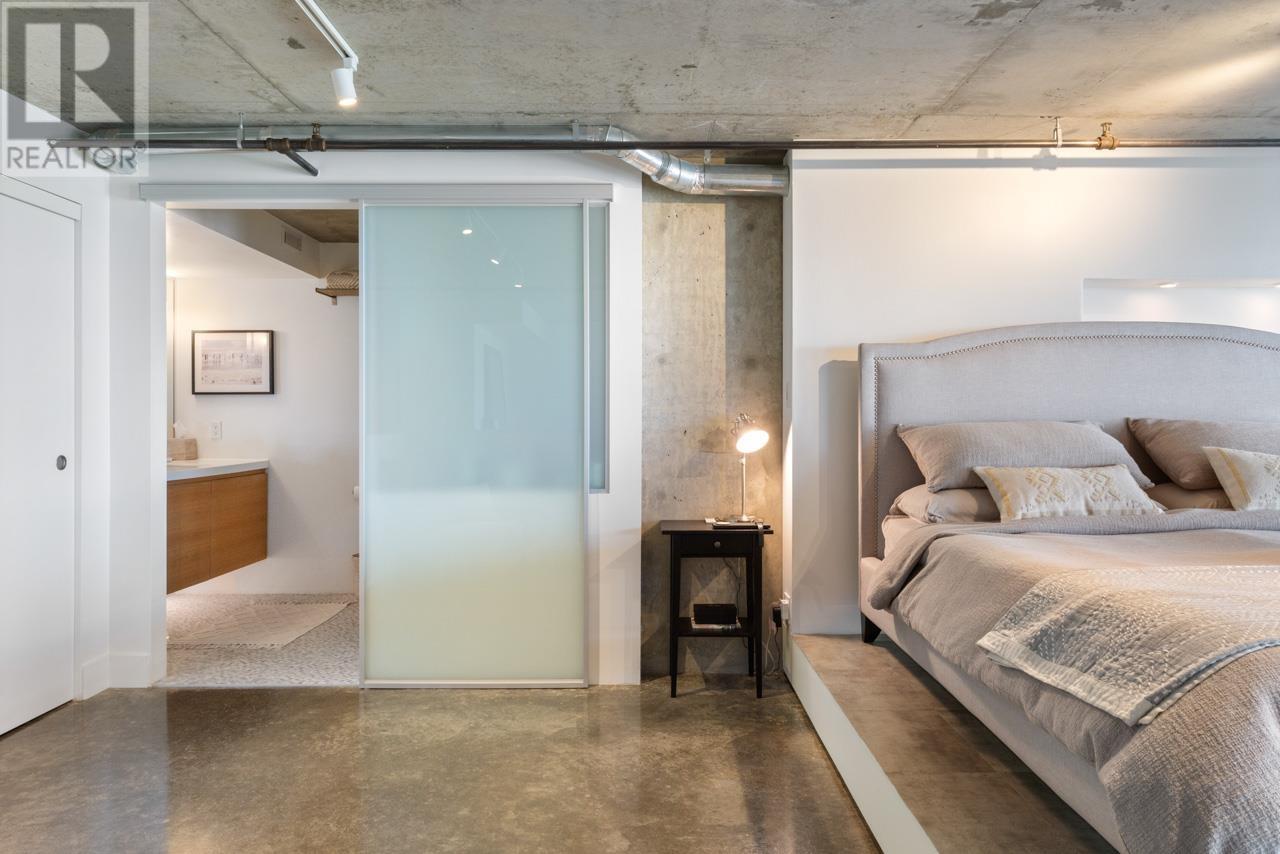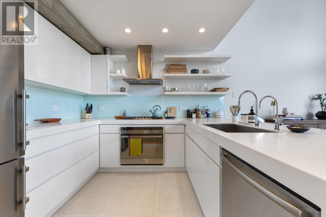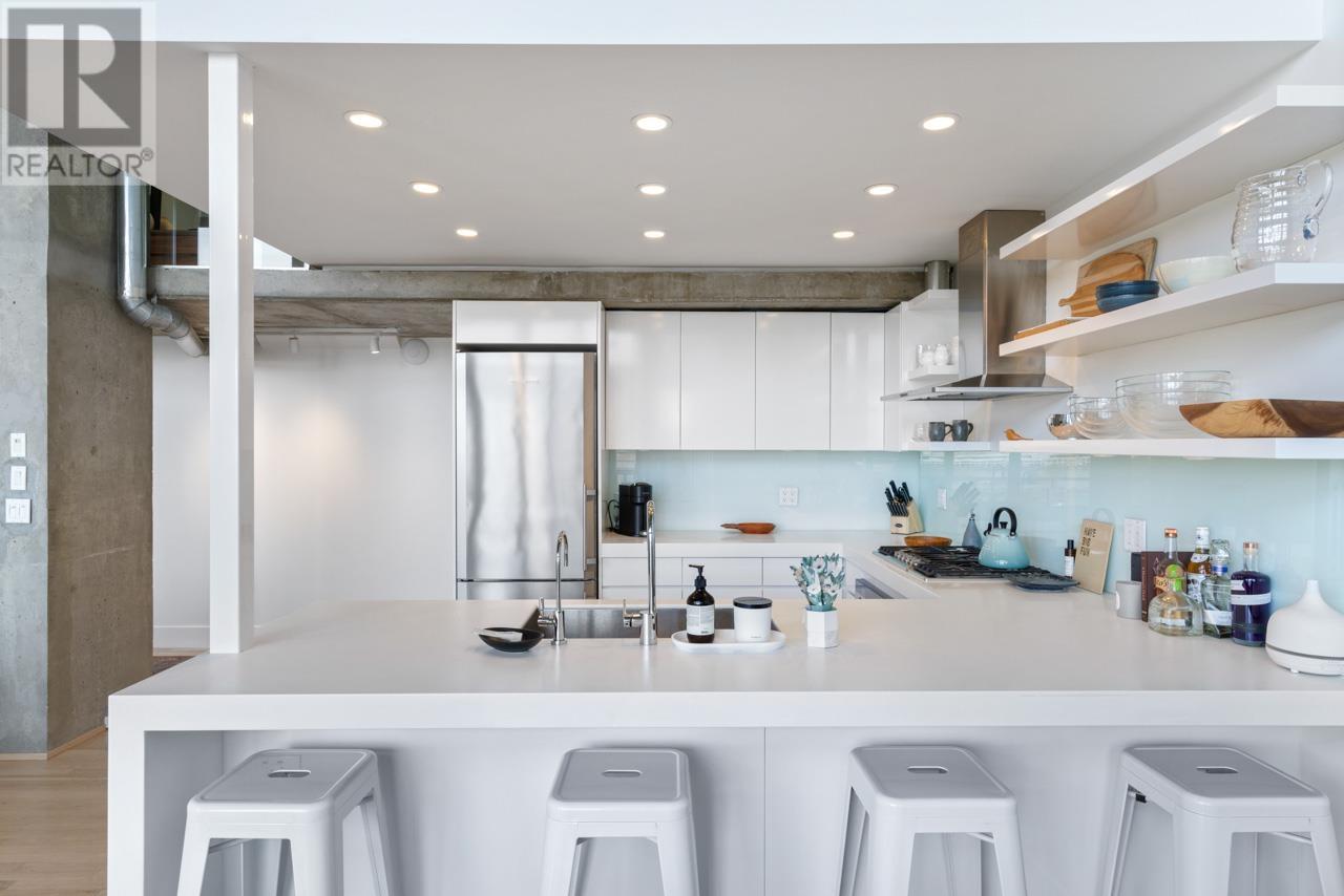 This expansive loft features nearly 16´ ceilings, floor-to-ceiling windows, stunning west-facing views of the city, harbour, Canada Place, and mountains. Renovated kitchen features Corian countertops, and high-end appliances: Liebherr fridge, Fisher & Paykel oven, Bosch stovetop & DW. Polished concrete upstairs and hardwood down, add modern contrast and warmth. Two level living with 2 bed + a flex space up and a den/bedroom on the main. Both baths are tastefully updated. Extras include: gas fireplace, automated blinds, glass panel railings. Serenity while living on the edge of Railtown, one of the most culturally diverse neighbourhoods in Vancouver. Wander through Gastown's furniture/design shops, and enjoy easy access to restaurants, and historical landmarks. Common area includes a gym, multi-purpose room, metal shop, woodworking shop, pottery studio with kiln, photography lab & music room. EV parking in personal parking spot. Call to view. (id:48970) Show More