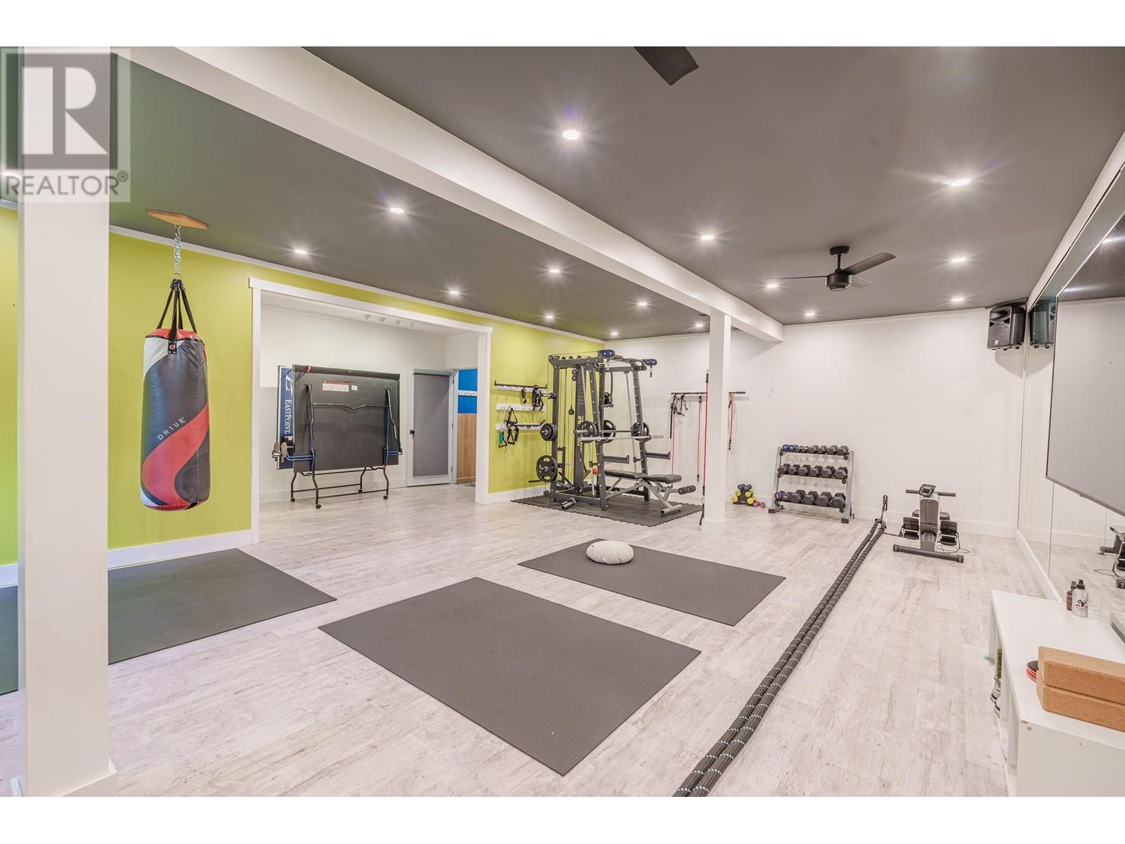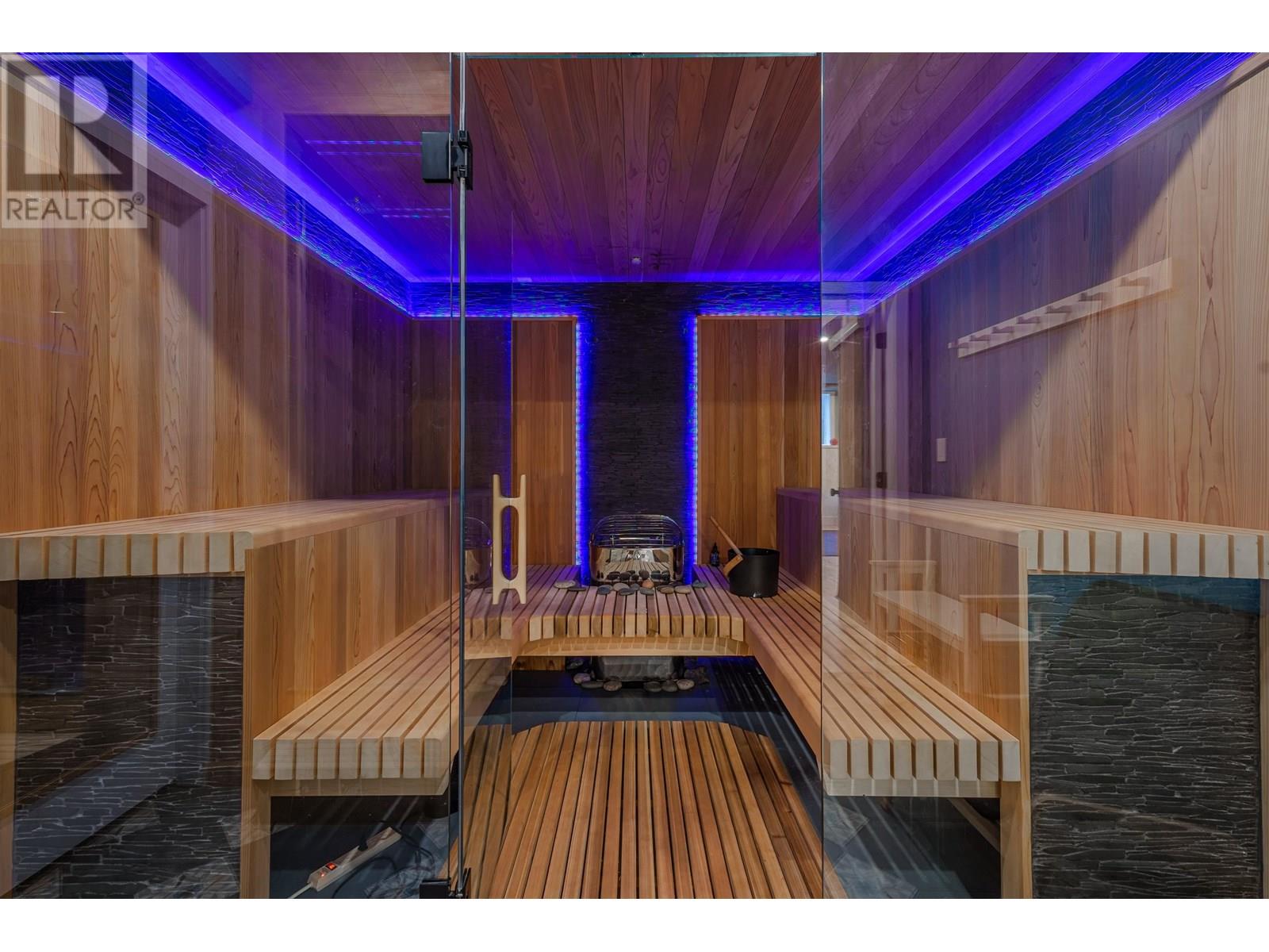 Lifestyle & comfort in this sprawling 5-bed home with 3-bay garage. Main floor: rancher living with vaulted ceilings, open great room with see through fireplace, sunlit kitchen with large island, walk in pantry & seating for 12 around live edge dining table (included). Master wing has private sitting area (or family room) & sliding doors to new sun deck, other wing has 2 bedroom & full bath. Lower level: 13-seat theatre room, 660 sqft gym, LED lit 'Finnish' 8 person sauna with shower, 2 bed, 2 den/office, 1 1/2 bath & stand up storage. Convert the garage into a suite, already plumbed & 1 bay turned into office with wood fireplace. Low-maintenance yard. Live edge custom benches/desk in home, heat pump, 3 fireplaces, high quality carpeting, freshly painted, a treat to view. (id:48970) Show More