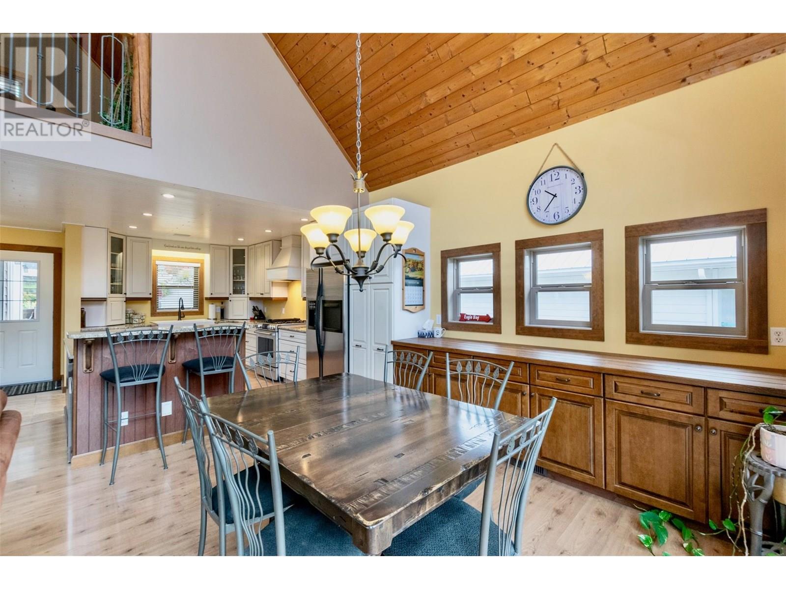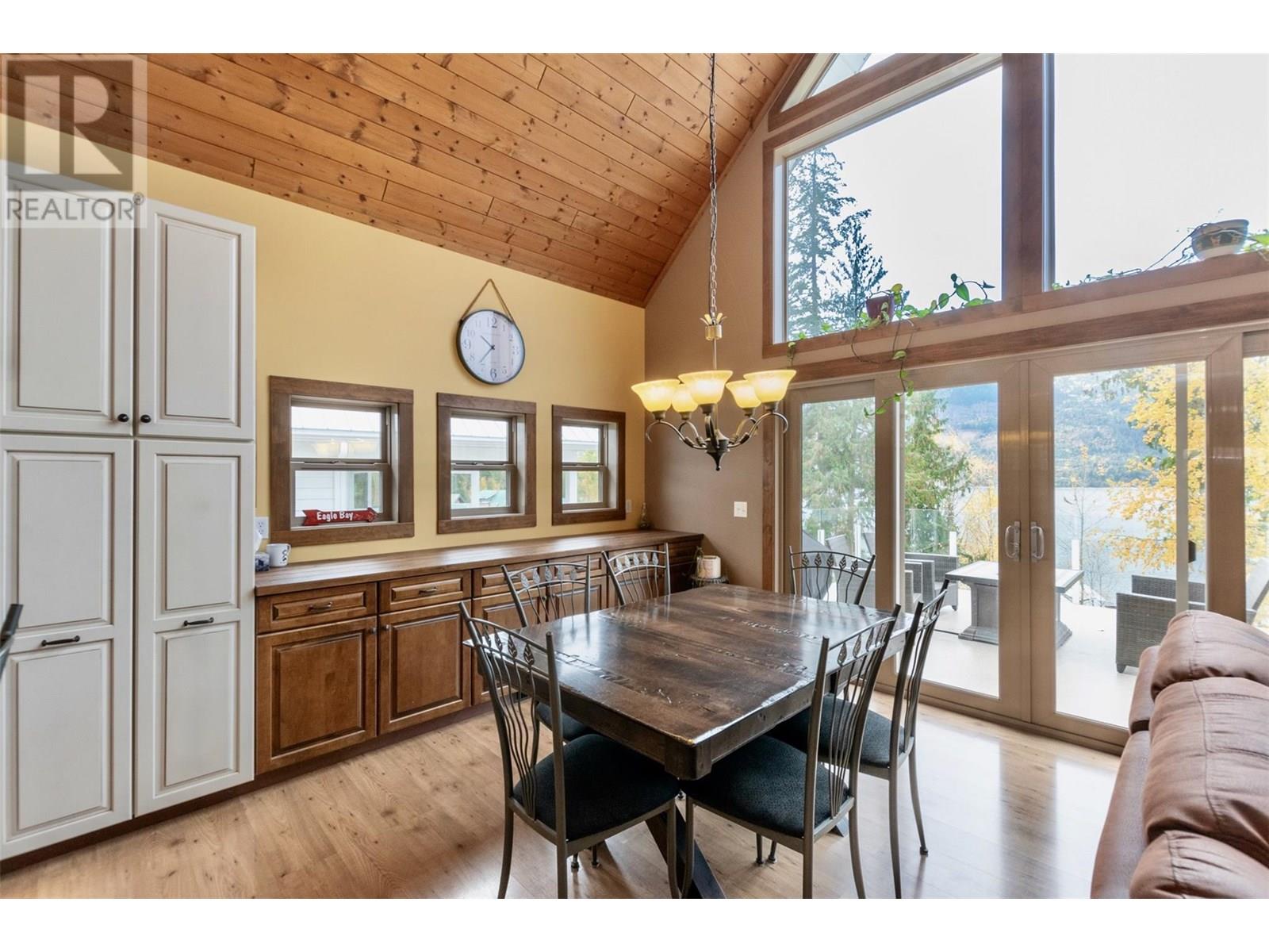 Welcome to your dream home in the picturesque lakefront community of Wild Rose Bay in Eagle Bay, BC. This stunning 3-bedroom, 2.5 bath residence offers the perfect blend of tranquility and recreation, featuring direct access to a private marina with your very own boat slip. As you enter this inviting home you’re greeted by an open-concept living space bathed in natural light, with large vaulted ceilings and windows that showcase breathtaking views of Shuswap lake. The spacious living room flows seamlessly into the modern kitchen, complete with stainless steel appliances, granite countertops, and ample storage. Perfect for entertaining, the dining area opens onto a spacious deck that takes in all the lake views, and is ideal for al fresco dining or morning coffees. You'll find a peaceful master suite in the loft with an en-suite bathroom with heated floors, walk-in closet and more views of the lake. Downstairs you'll find another large family room with direct access to the covered patio and hot tub, two more spacious bedrooms, another full bath with heated floors, and plenty of storage. This property also has an attached workshop, RV hookups for power, water and propane for guests, an RV/Boat common storage area, and a playground for kids to enjoy. This lakefront gem is more than just a home; it’s a lifestyle. Experience the perfect combination of relaxation and adventure in this sought-after community. Don’t miss your chance to make this beautiful property your own! (id:48970) Show More