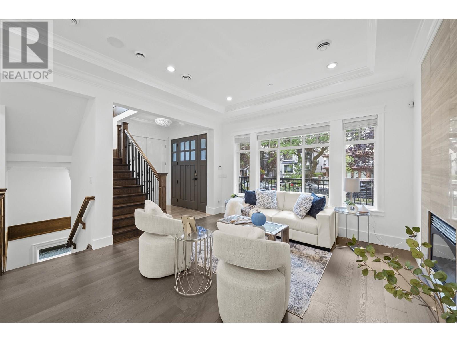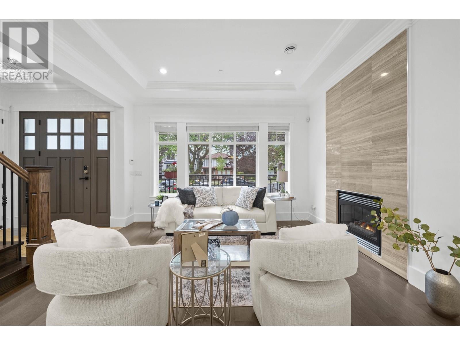Welcome to this beautifully crafted family home in the heart of sought-after Killarney! This charming and meticulously maintained residence features timeless curb appeal, a thoughtfully designed layout, and high-end finishes throughout. The spacious main floor offers an elegant living room with a cozy fireplace, oversized windows for an abundance of natural light, and a seamless flow into the formal dining area perfect for entertaining. The master bedroom features a serene primary bedroom retreat features a spa-like ensuite complete with a jacuzzi tub and a rejuvenating steam shower, your own private oasis after a long day. Enjoy easy access to Killarney Community Centre, transit, all levels of schools and a 6 minute drive to Metrotown! (id:48970) Show More