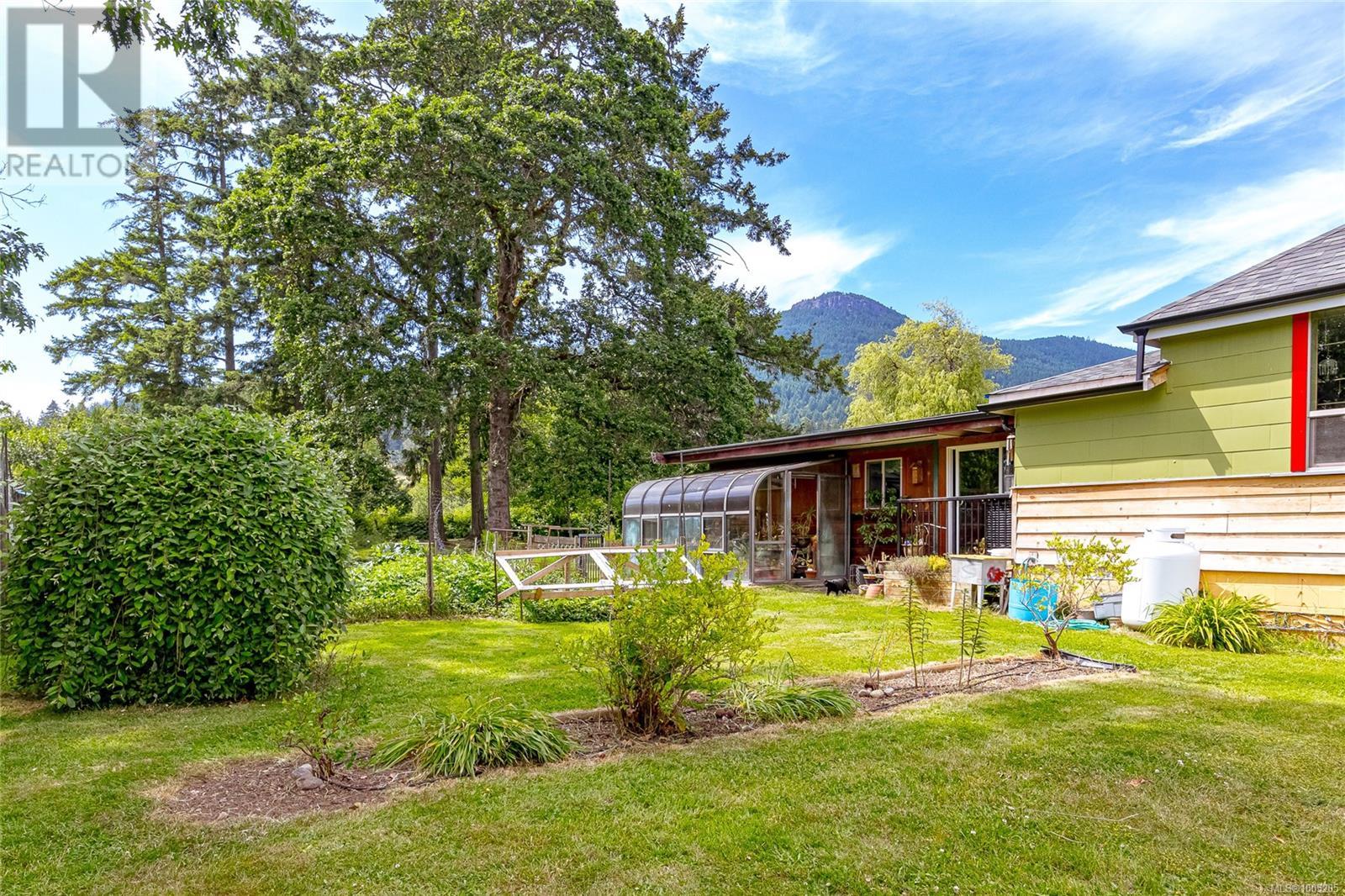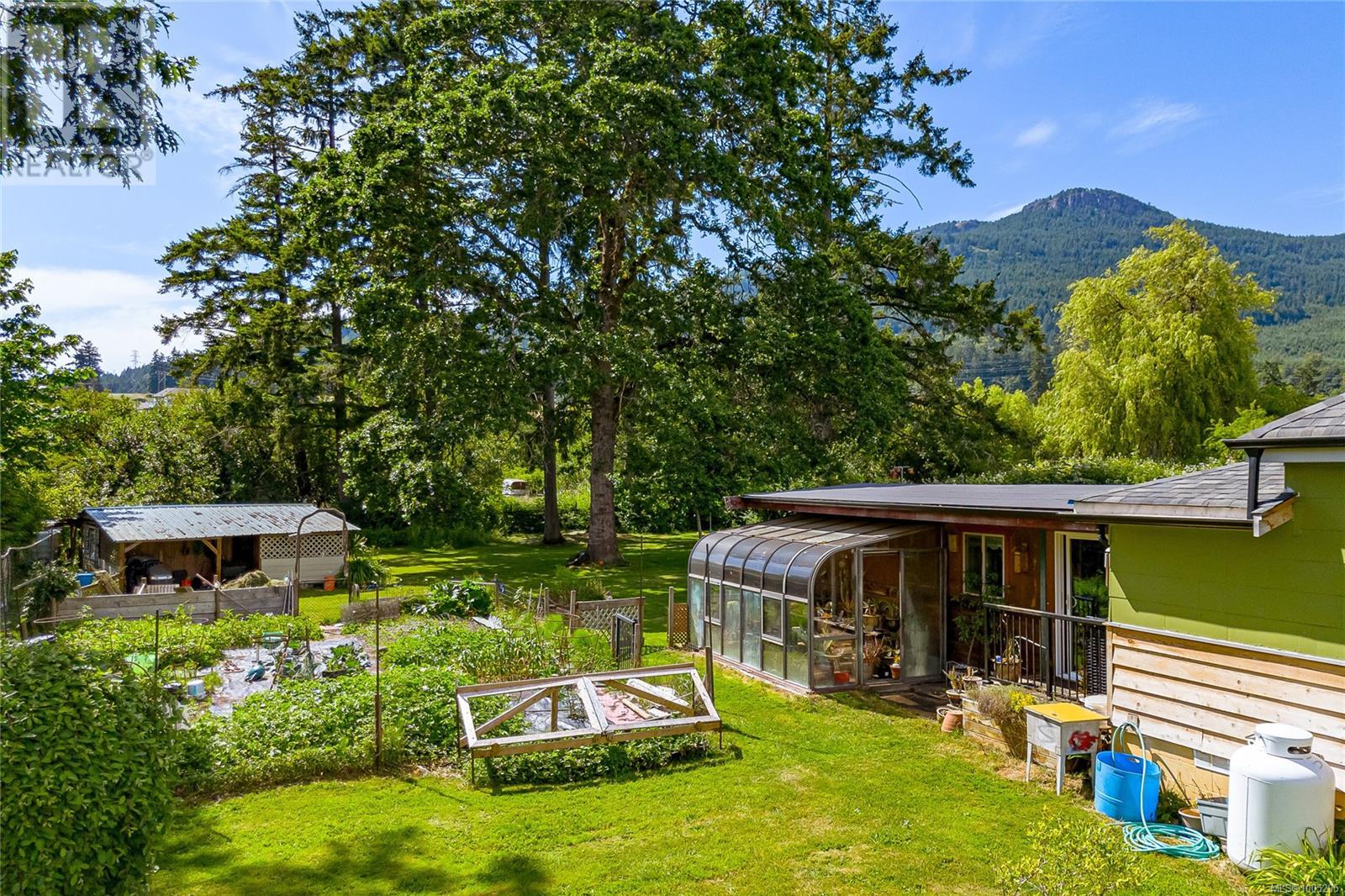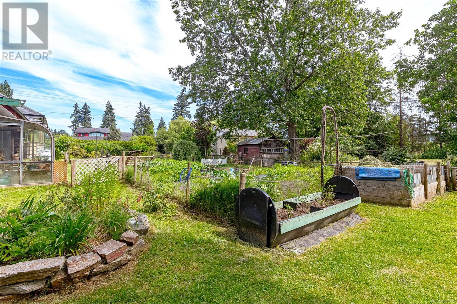 Welcome to your own slice of paradise. This charming 3-bed home is nestled in a lush, fully fenced yard bursting with fruit trees, flowers, Veggies, and more in the established gardens. Relax on the beautifully crafted front patio—perfect for morning coffee or winding down at dusk. A detached workshop, garden shed, firewood storage, and stunning Garry oak tree add both function and natural beauty. Inside, enjoy the tastefully updated kitchen with wood counters, and a spacious bath with a large soaker tub and stand up shower. The new roof and hot water tank in 2021 offer peace of mind. A gardener’s dream and a nature lover’s retreat—all that’s missing is you. (id:48970) Show More