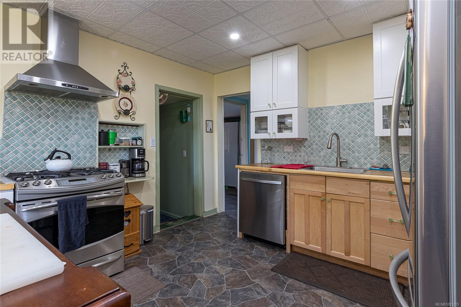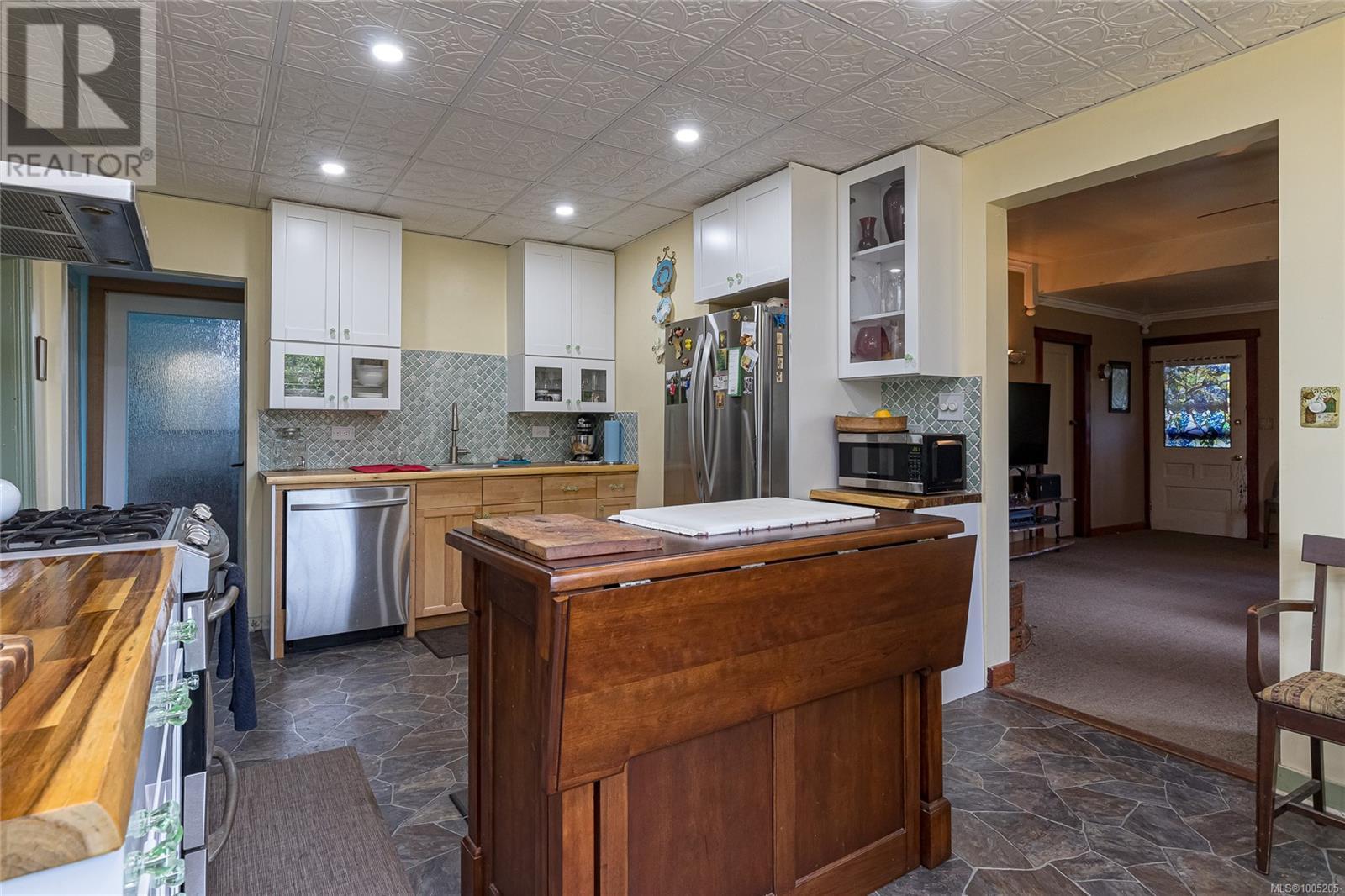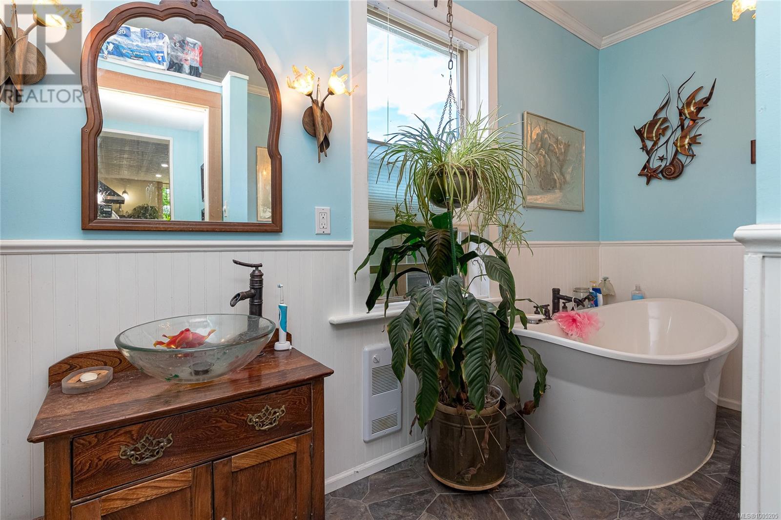 Welcome to your own slice of paradise. This charming 3-bed home is nestled in a lush, fully fenced yard bursting with fruit trees, flowers, Veggies, and more in the established gardens. Relax on the beautifully crafted front patio—perfect for morning coffee or winding down at dusk. A detached workshop, garden shed, firewood storage, and stunning Garry oak tree add both function and natural beauty. Inside, enjoy the tastefully updated kitchen with wood counters, and a spacious bath with a large soaker tub and stand up shower. The new roof and hot water tank in 2021 offer peace of mind. A gardener’s dream and a nature lover’s retreat—all that’s missing is you. (id:48970) Show More
