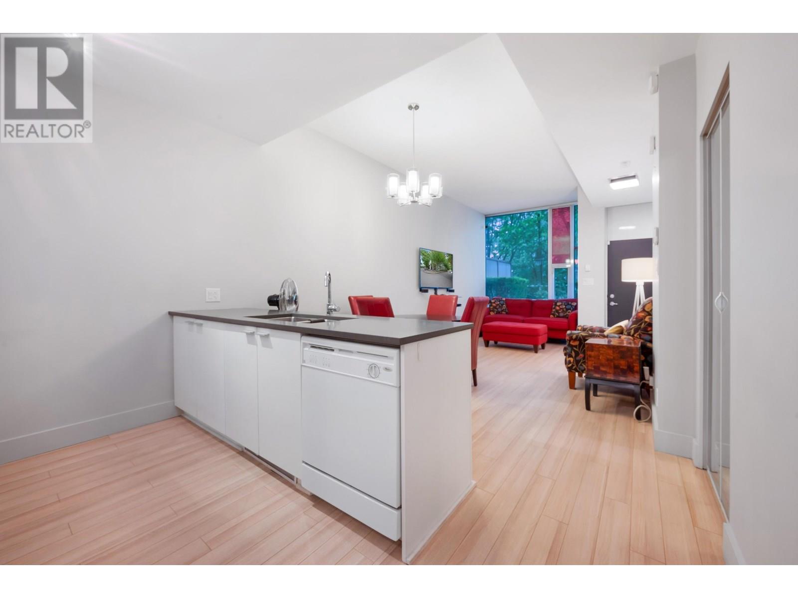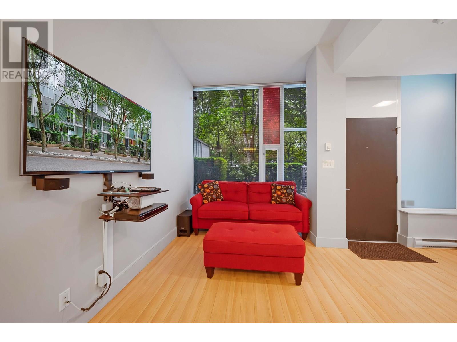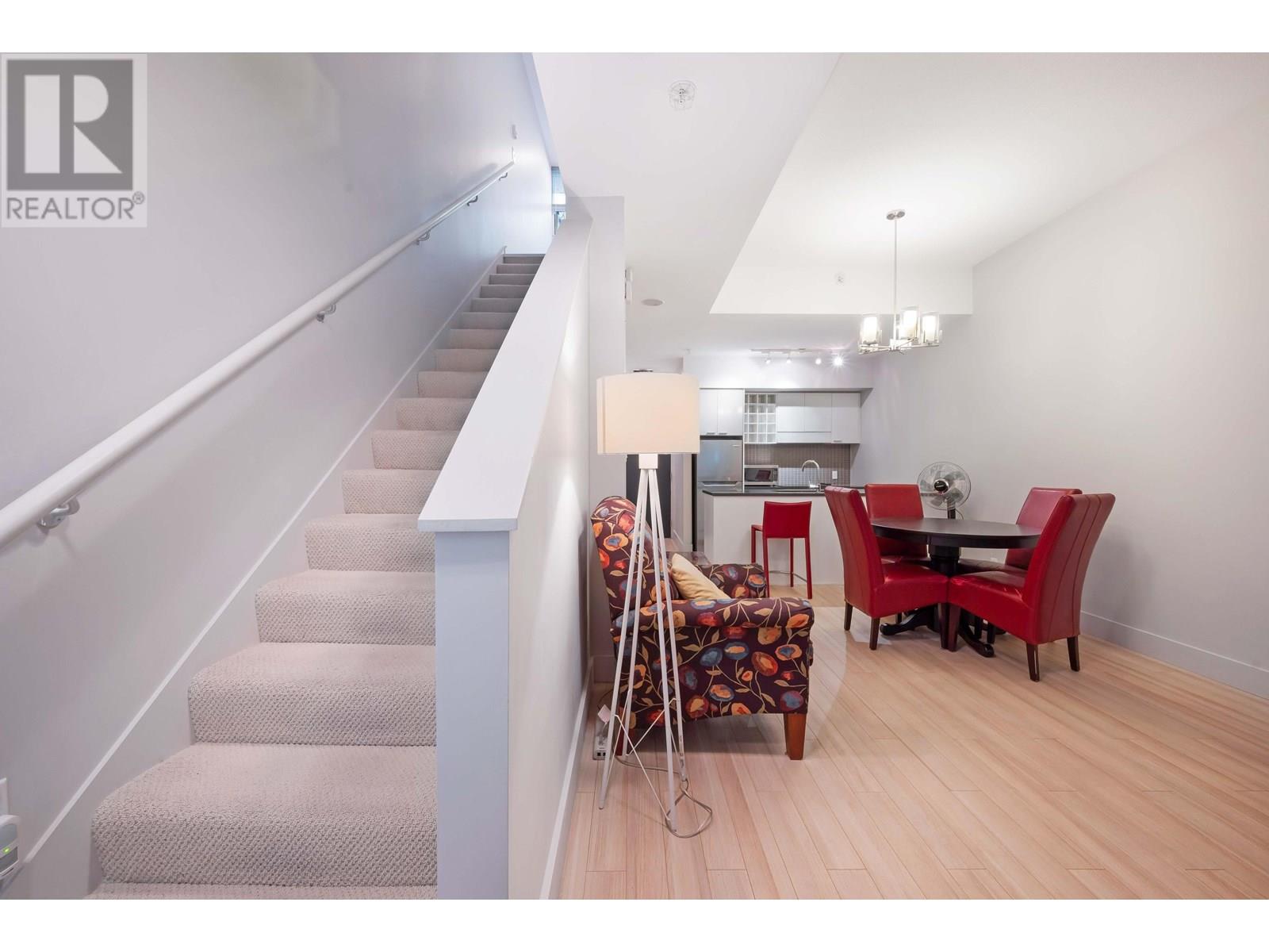 Welcome to this bright and contemporary townhome in the sought-after Spectrum community. This spacious home offers 2 well-appointed bedrooms, a versatile den ideal for a home office or nursery, and 2 bathrooms, including a main floor powder room and a sleek 3-piece upstairs. The open-concept living and dining area flows into a modern kitchen, perfect for everyday living and entertaining. Step out to your private rooftop patio, ideal for relaxing or hosting. Solid concrete construction ensures long-term durability and quiet comfort. Enjoy premium amenities including an indoor pool, fitness centre, hot tub, sauna, and concierge, all just steps from SkyTrain, shopping, dining, and the energy of downtown Vancouver. (id:48970) Show More