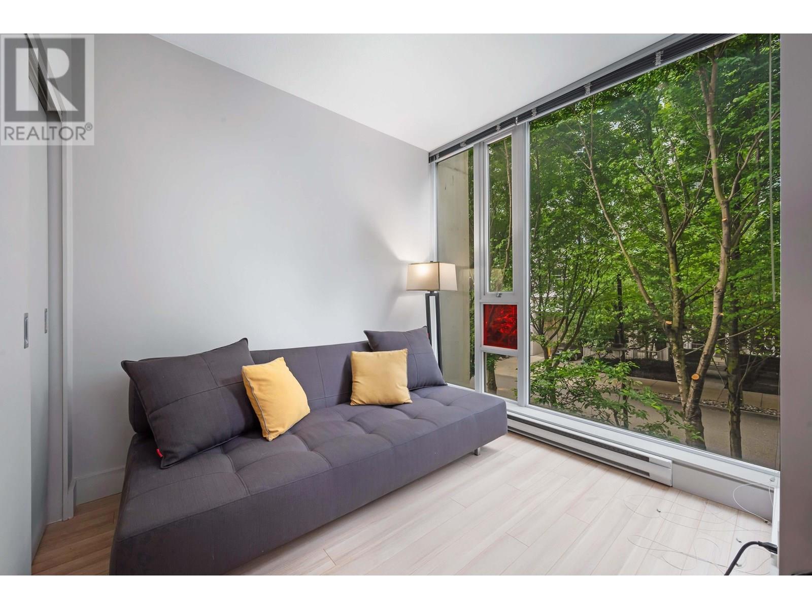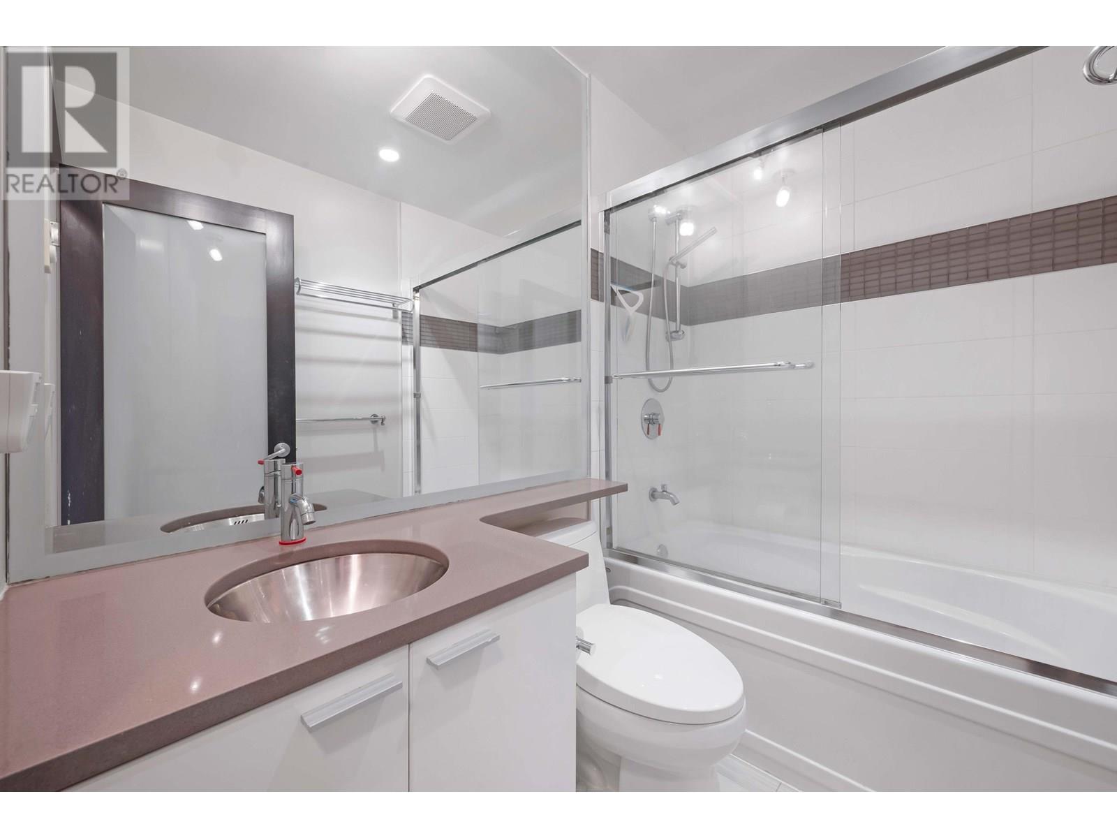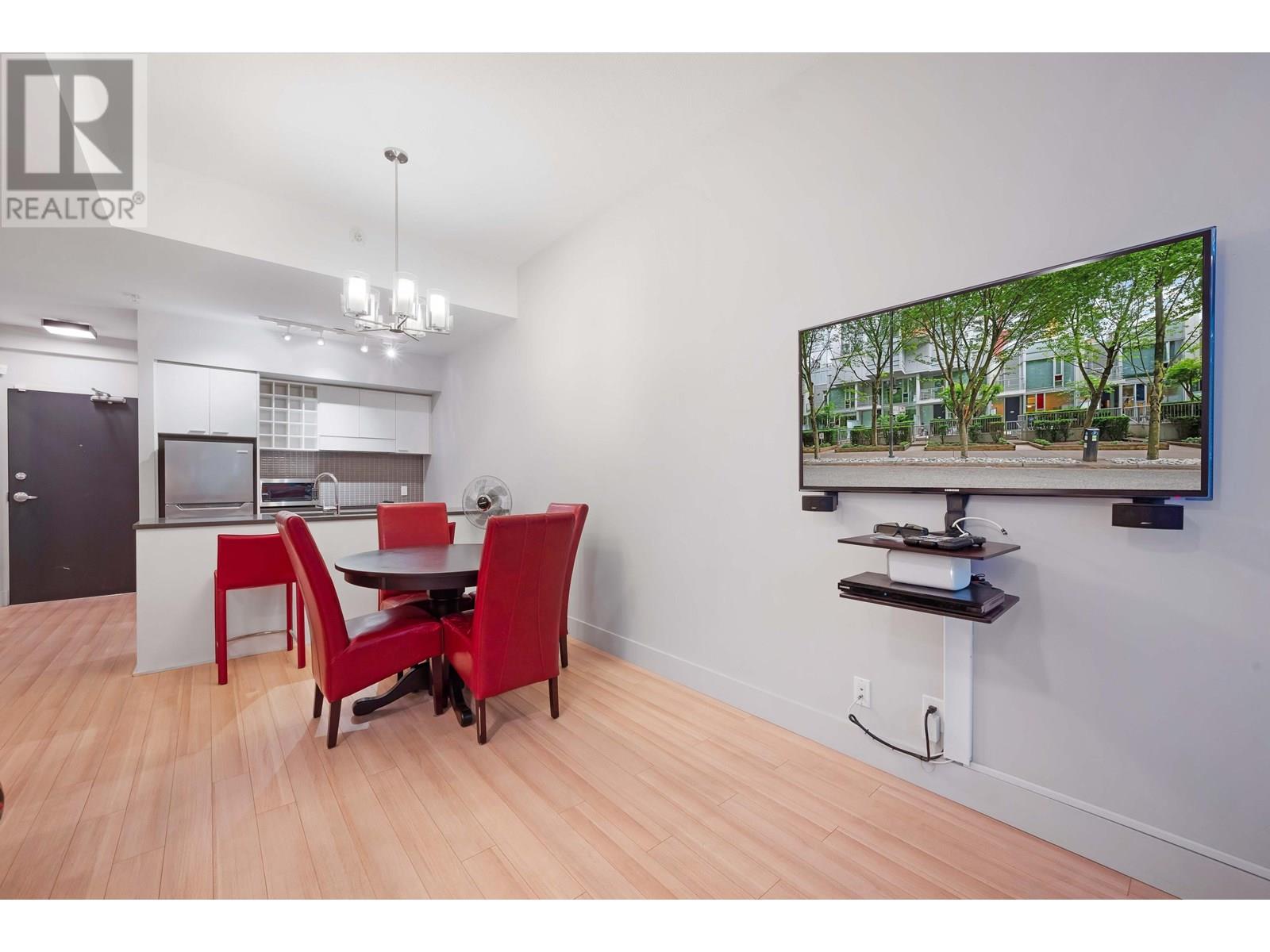 Welcome to this bright and contemporary townhome in the sought-after Spectrum community. This spacious home offers 2 well-appointed bedrooms, a versatile den ideal for a home office or nursery, and 2 bathrooms, including a main floor powder room and a sleek 3-piece upstairs. The open-concept living and dining area flows into a modern kitchen, perfect for everyday living and entertaining. Step out to your private rooftop patio, ideal for relaxing or hosting. Solid concrete construction ensures long-term durability and quiet comfort. Enjoy premium amenities including an indoor pool, fitness centre, hot tub, sauna, and concierge, all just steps from SkyTrain, shopping, dining, and the energy of downtown Vancouver. (id:48970) Show More