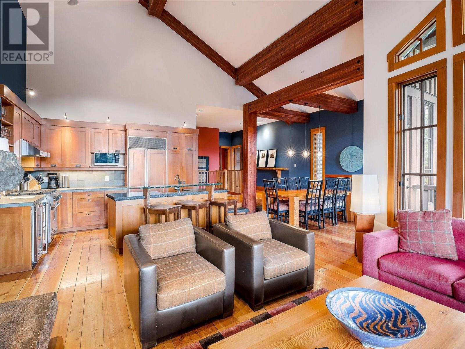 At Nature´s Door offers an unparalleled shared ownership opportunity, featuring homes inspired by Pacific Northwest architecture. Crafted with care using materials indigenous to the mountains, each residence blends refined craftsmanship with the warmth of alpine living. Home 6 stands out with stunning views, direct ski-in/ski-out access, & a desirable layout offering one of two primary suites, living, dining, & kitchen areas, all on the main level. Beautifully appointed with custom furnishings & artwork, this home invites you to relax in comfort. Take in breathtaking mountain views from your large covered deck, complete with BBQ, or unwind in your private hot tub or cozy great room. The 4,500 square ft Owners' Lodge & Spa, fully equipped gym, sauna & steam room, outdoor pool & hot tubs. (id:48970) Show More